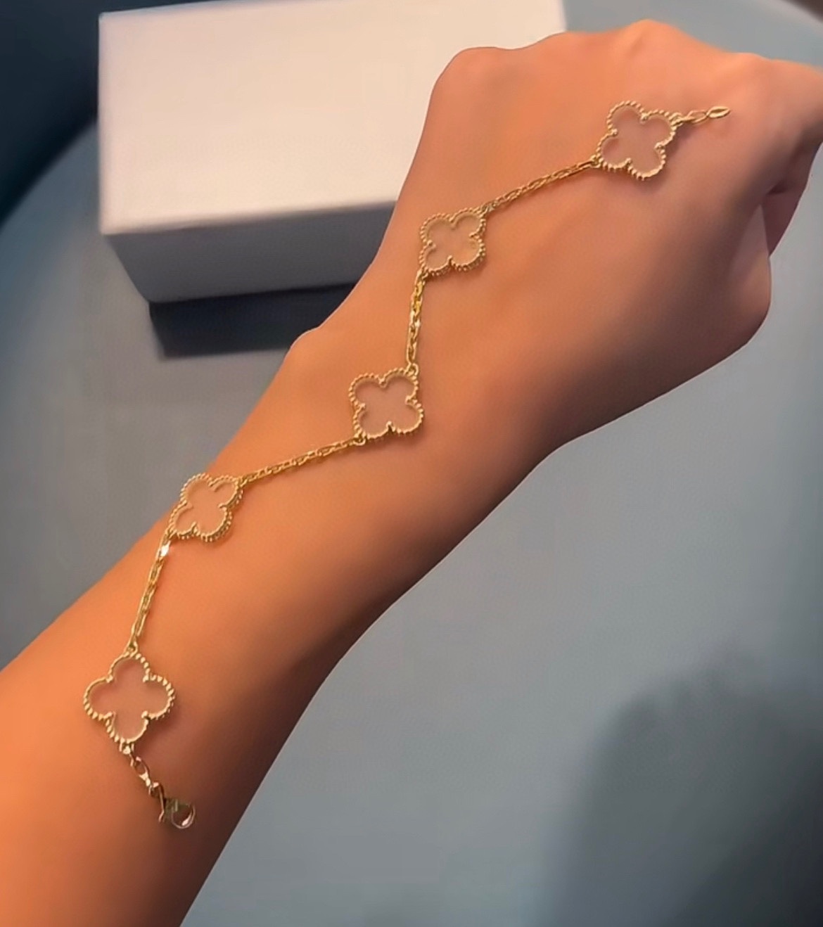 这款首饰是AAAAA 1:1 质量 (非常棒). 使用了和原版一模一样的材料. 商标部分也保持了和梵克雅宝/Van Cleef & Arpels一样. 图片拍摄是实物首饰拍摄, 您所收到的实物保证和我们图片一模一样.