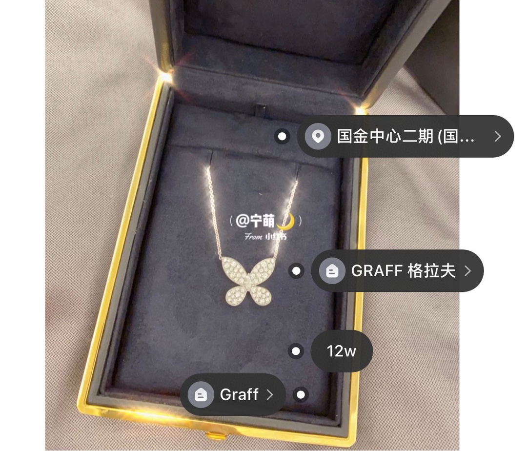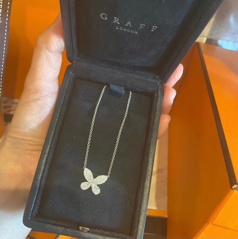 这款首饰是AAAAA 1:1 质量 (非常棒). 使用了和原版一模一样的材料. 商标部分也保持了和GRAFF一样. 图片拍摄是实物首饰拍摄, 您所收到的实物保证和我们图片一模一样.