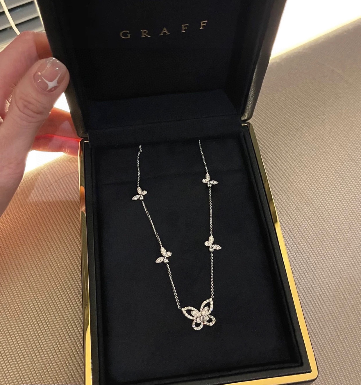 这款首饰是AAAAA 1:1 质量 (非常棒). 使用了和原版一模一样的材料. 商标部分也保持了和GRAFF一样. 图片拍摄是实物首饰拍摄, 您所收到的实物保证和我们图片一模一样.