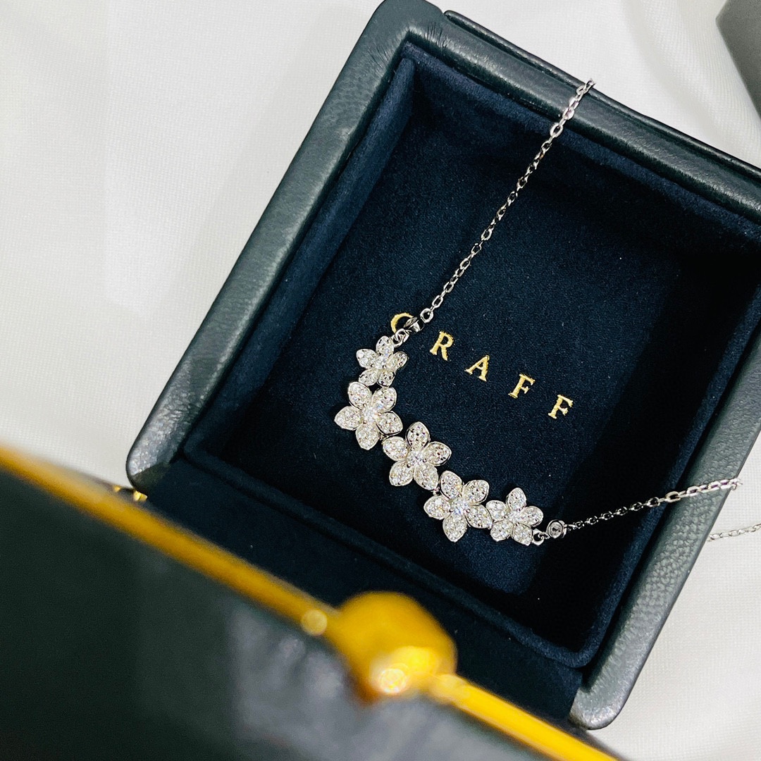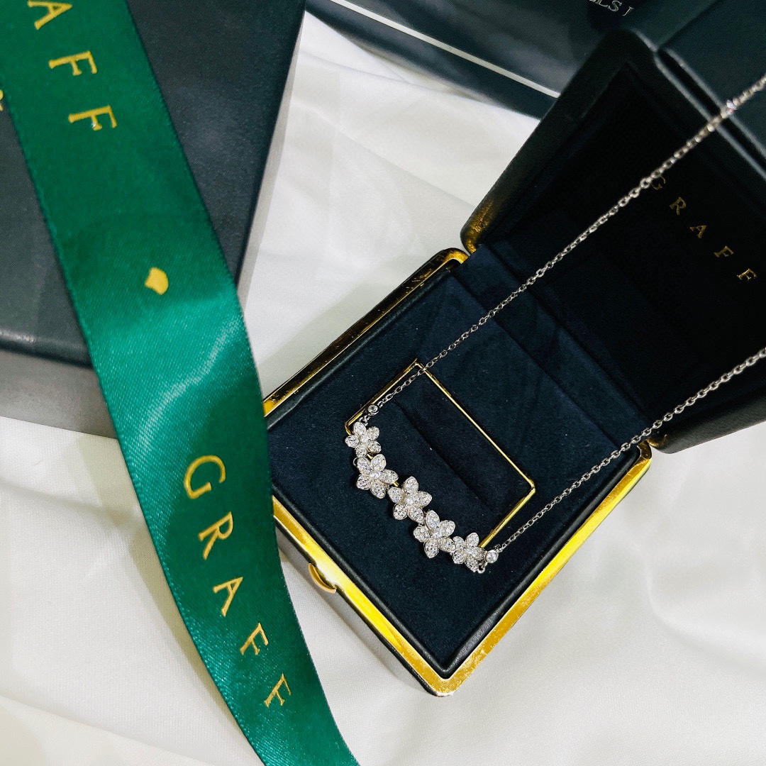 这款首饰是AAAAA 1:1 质量 (非常棒). 使用了和原版一模一样的材料. 商标部分也保持了和GRAFF一样. 图片拍摄是实物首饰拍摄, 您所收到的实物保证和我们图片一模一样.