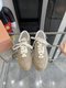 这款鞋子是AAAAA 1:1 质量 (非常棒). 使用了和原版一模一样的材料. 商标部分也保持了和缪缪/Miu Miu一样. 图片拍摄是实物鞋子拍摄, 您所收到的实物保证和我们图片一模一样.