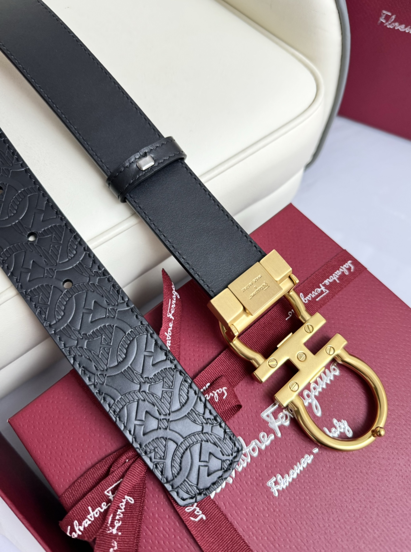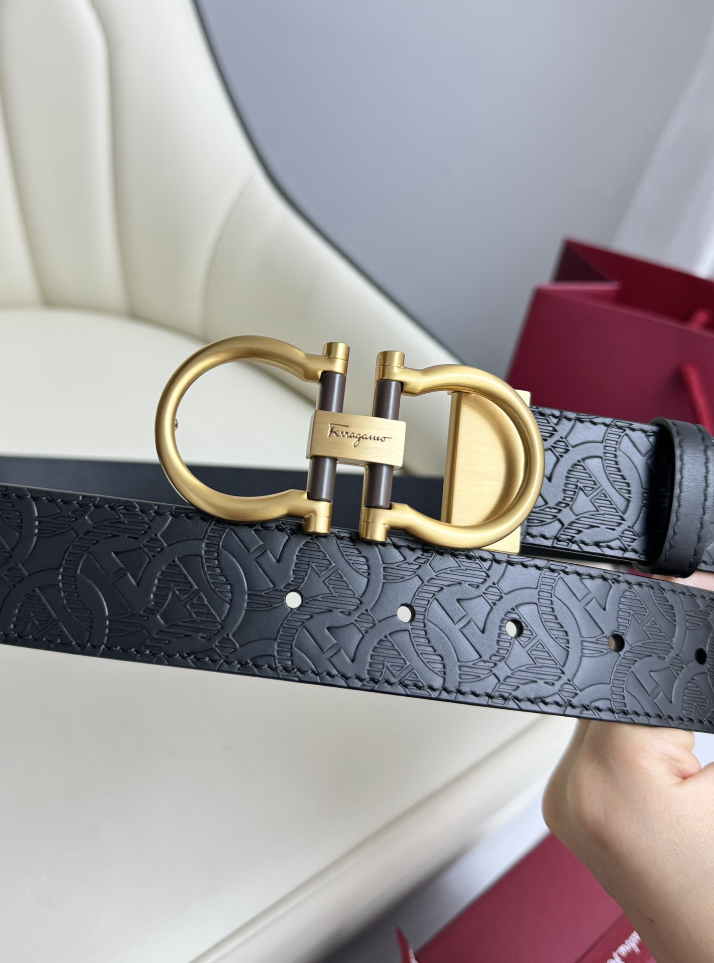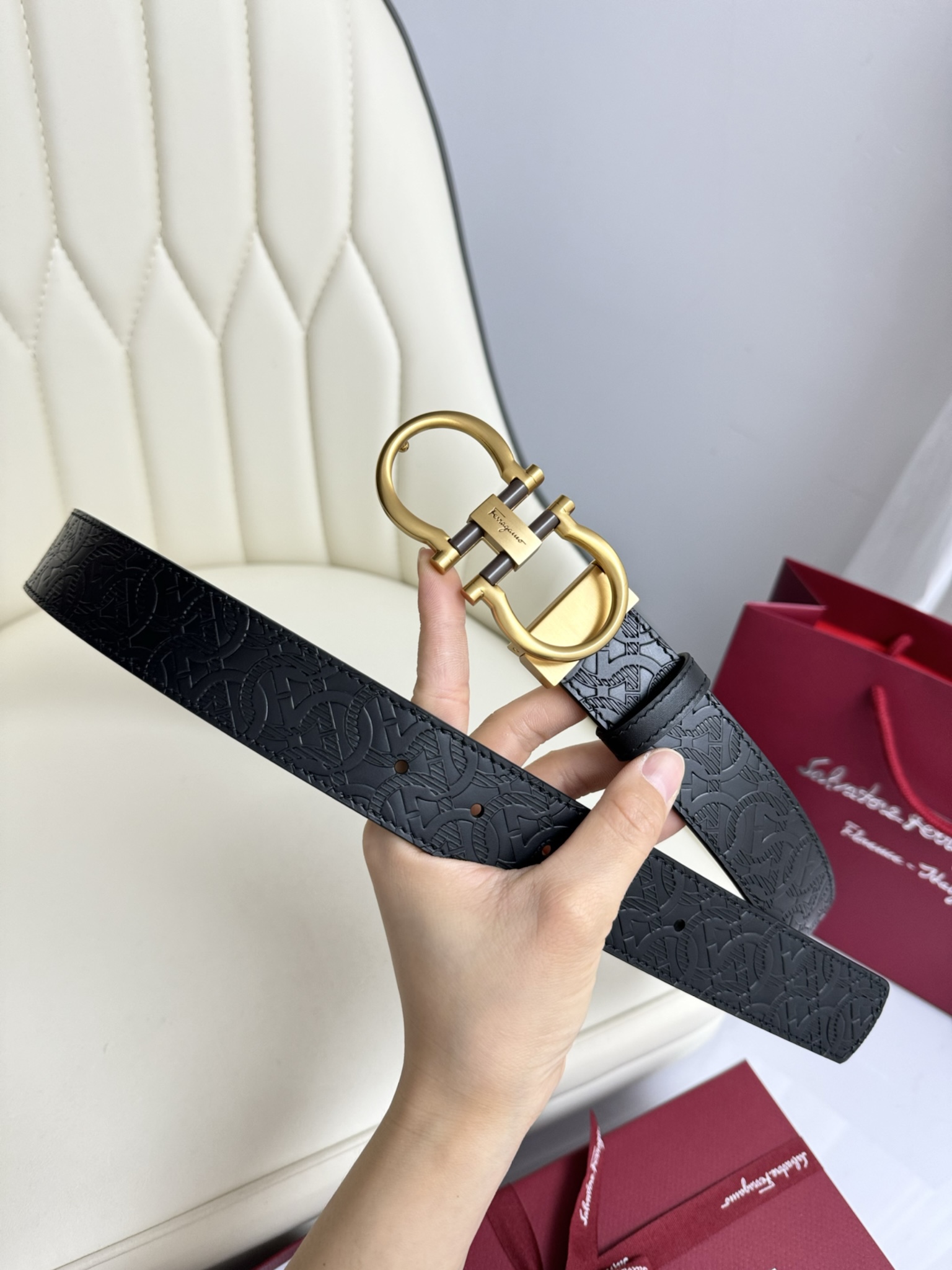 这款皮带是AAAAA 1:1 质量 (非常棒). 使用了和原版一模一样的材料. 商标部分也保持了和菲拉格慕/Salvatore Ferragamo一样. 图片拍摄是实物皮带拍摄, 您所收到的实物保证和我们图片一模一样.