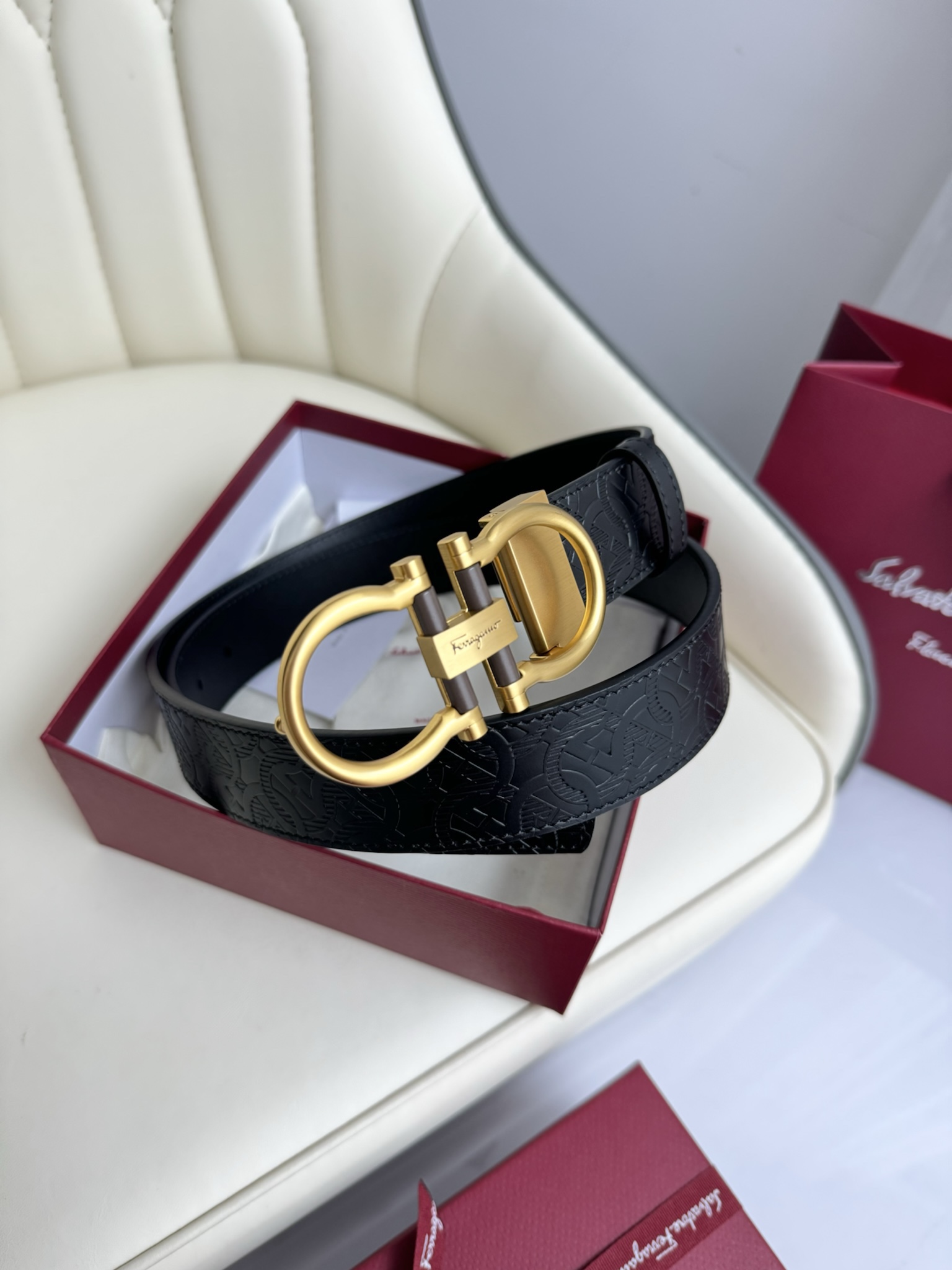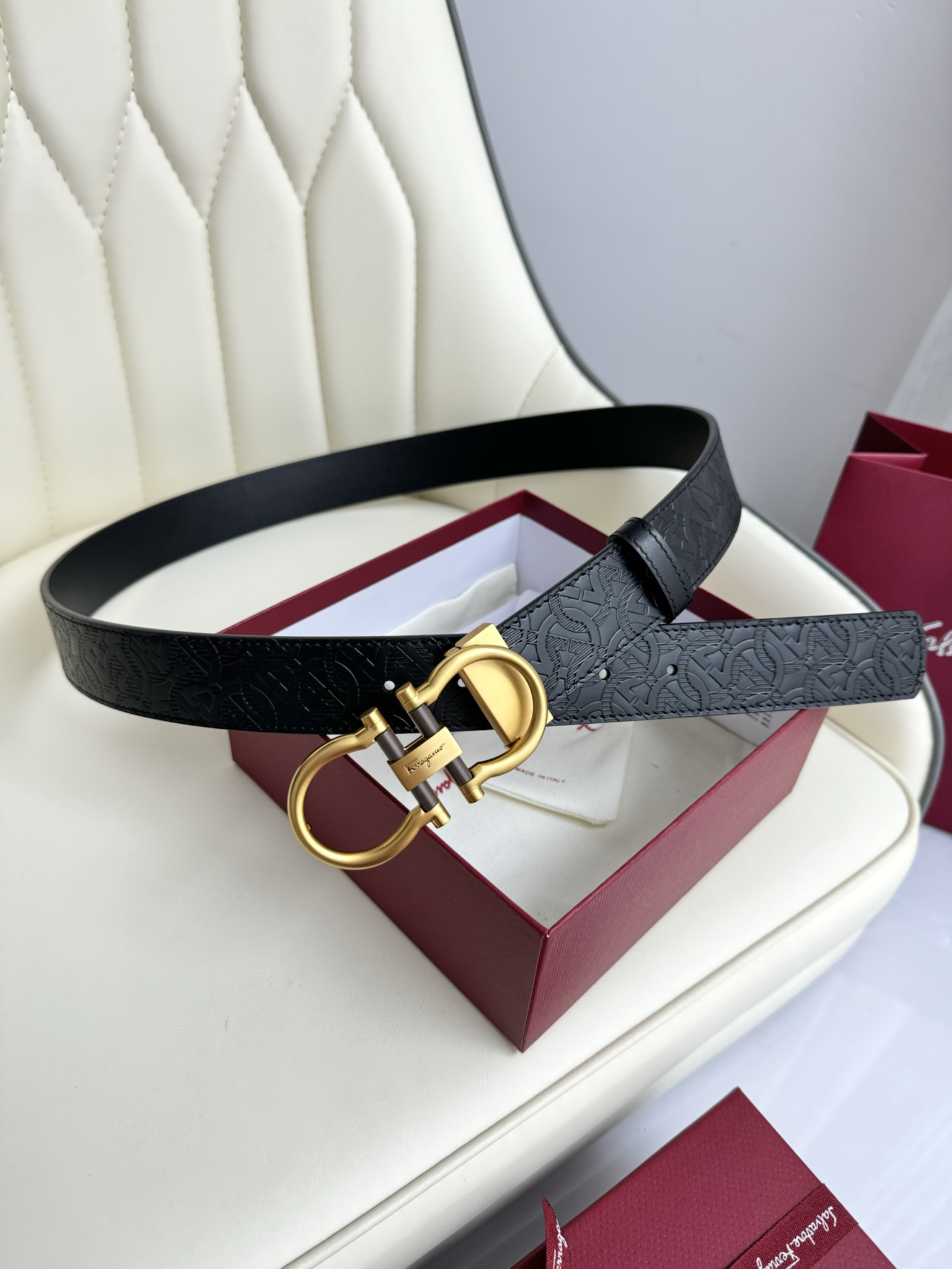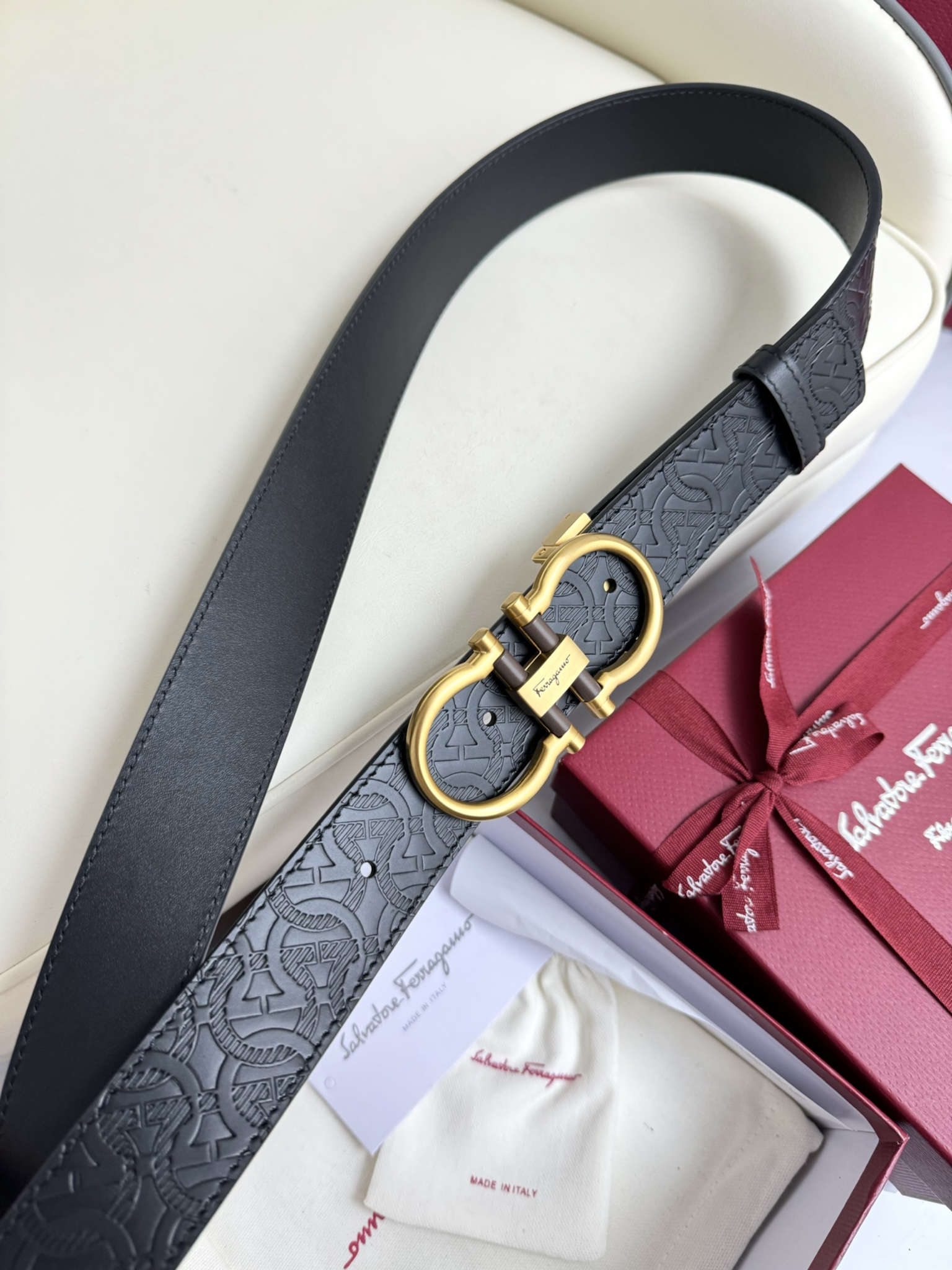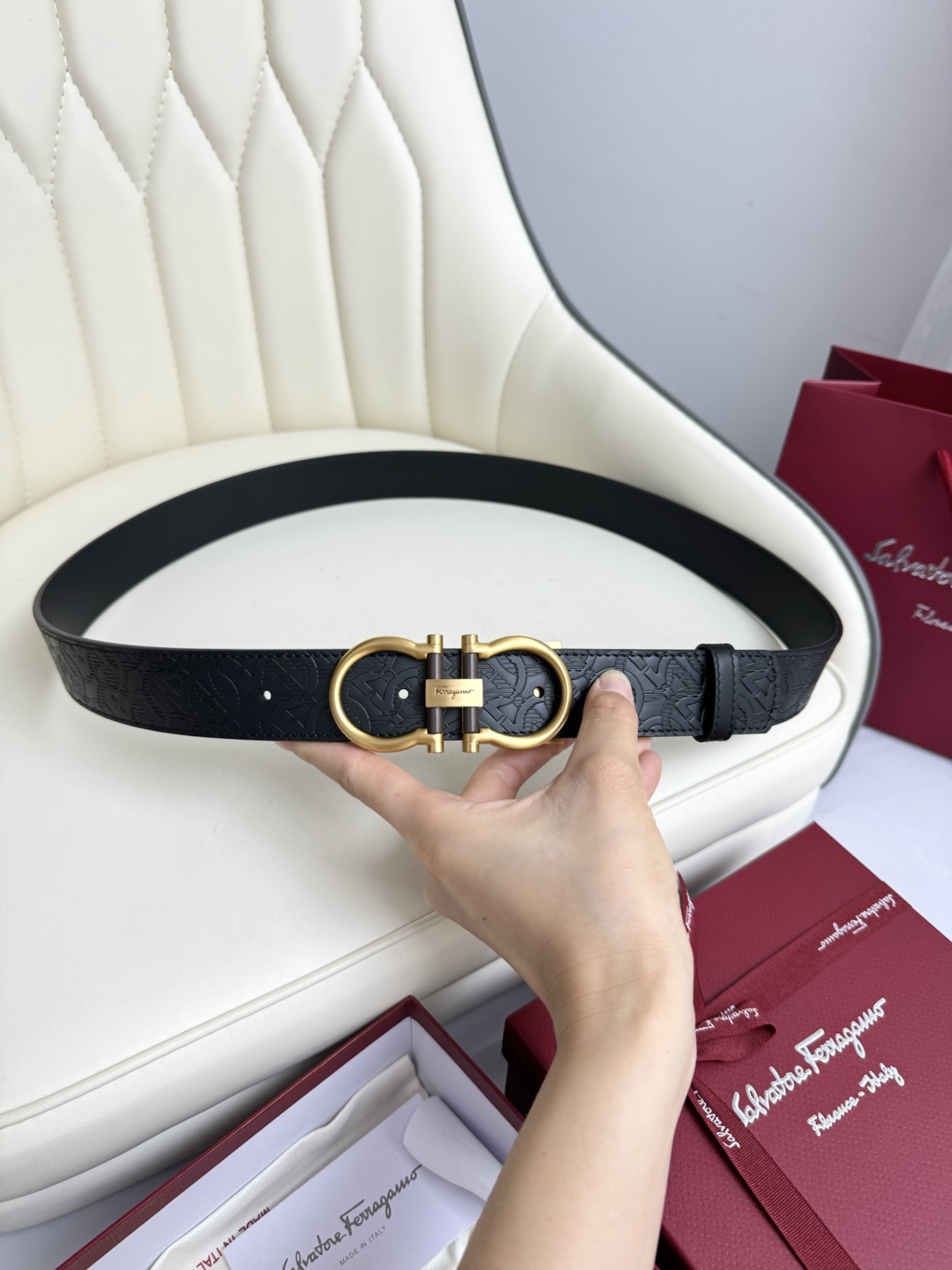 这款皮带是AAAAA 1:1 质量 (非常棒). 使用了和原版一模一样的材料. 商标部分也保持了和菲拉格慕/Salvatore Ferragamo一样. 图片拍摄是实物皮带拍摄, 您所收到的实物保证和我们图片一模一样.