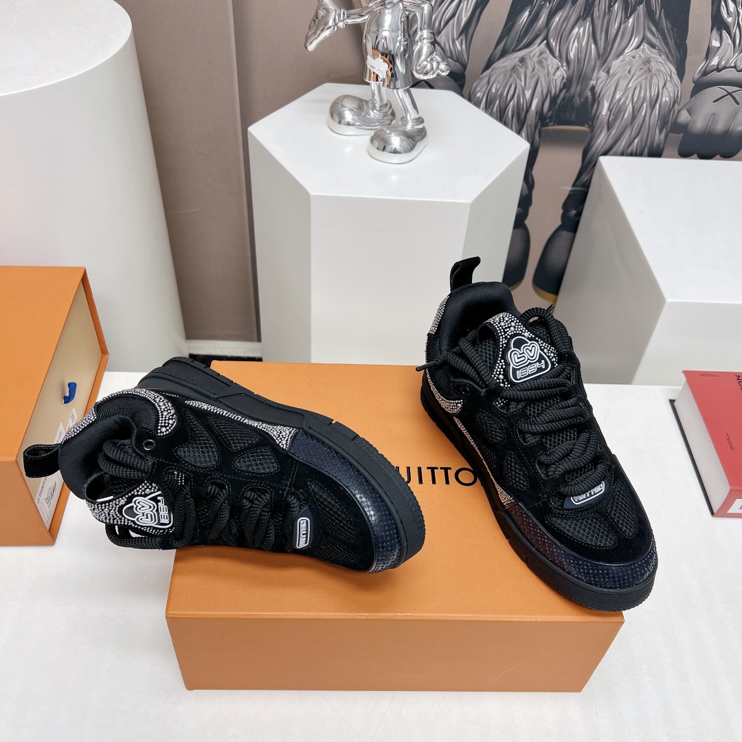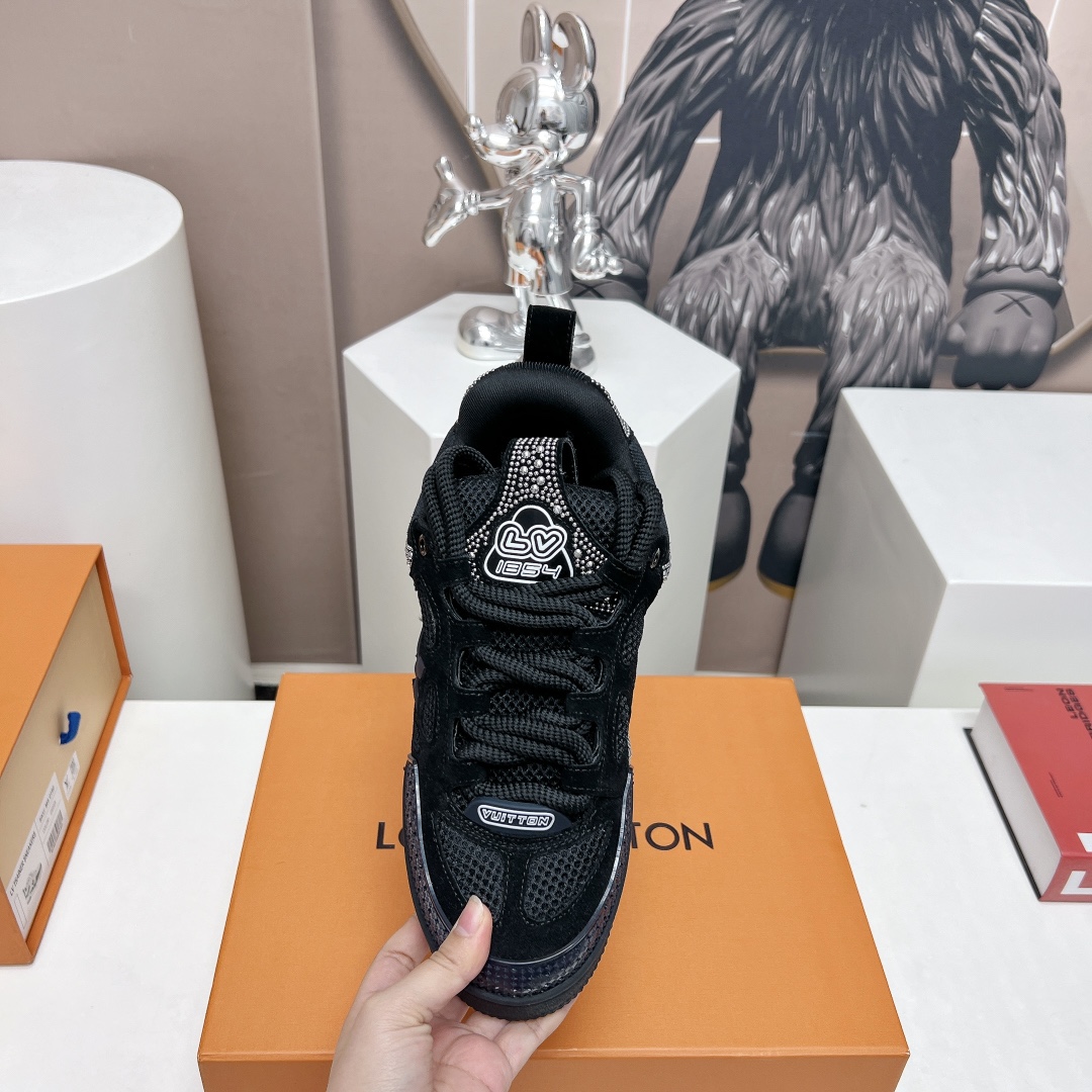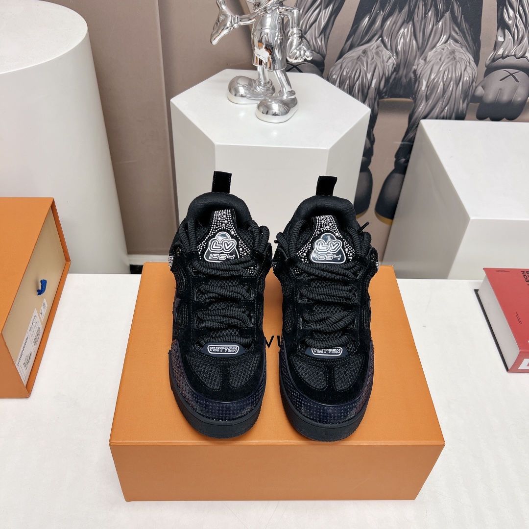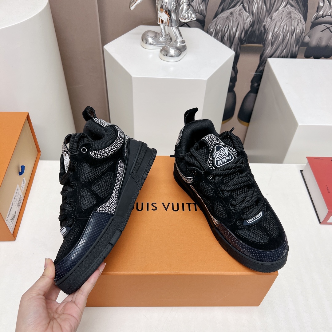 这款鞋子是AAAAA 1:1 质量 (非常棒). 使用了和原版一模一样的材料. 商标部分也保持了和路易威登/Louis Vuitton一样. 图片拍摄是实物鞋子拍摄, 您所收到的实物保证和我们图片一模一样.