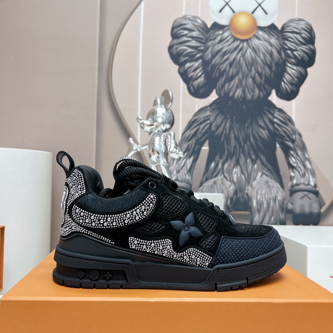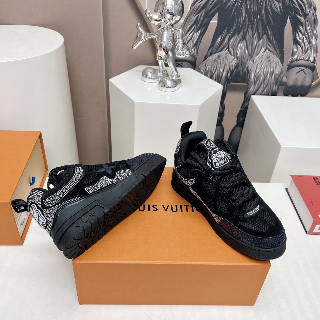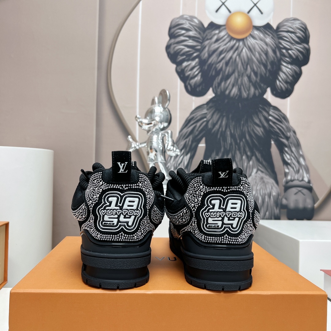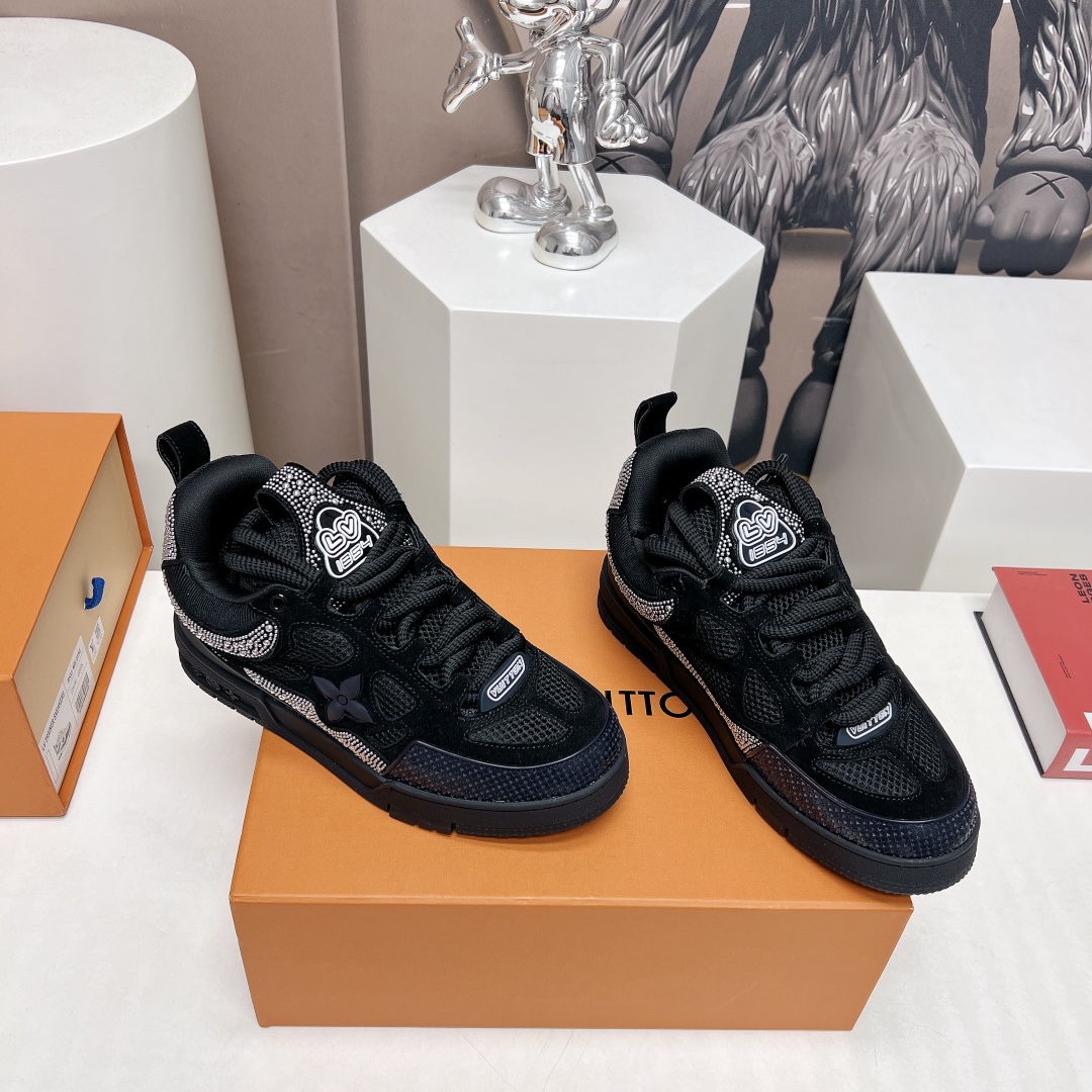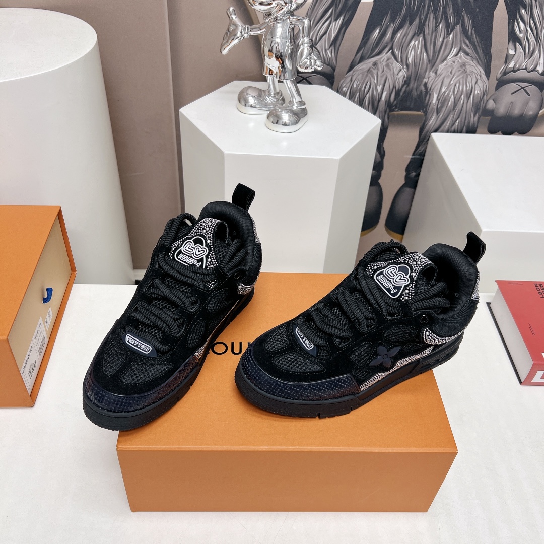这款鞋子是AAAAA 1:1 质量 (非常棒). 使用了和原版一模一样的材料. 商标部分也保持了和路易威登/Louis Vuitton一样. 图片拍摄是实物鞋子拍摄, 您所收到的实物保证和我们图片一模一样.