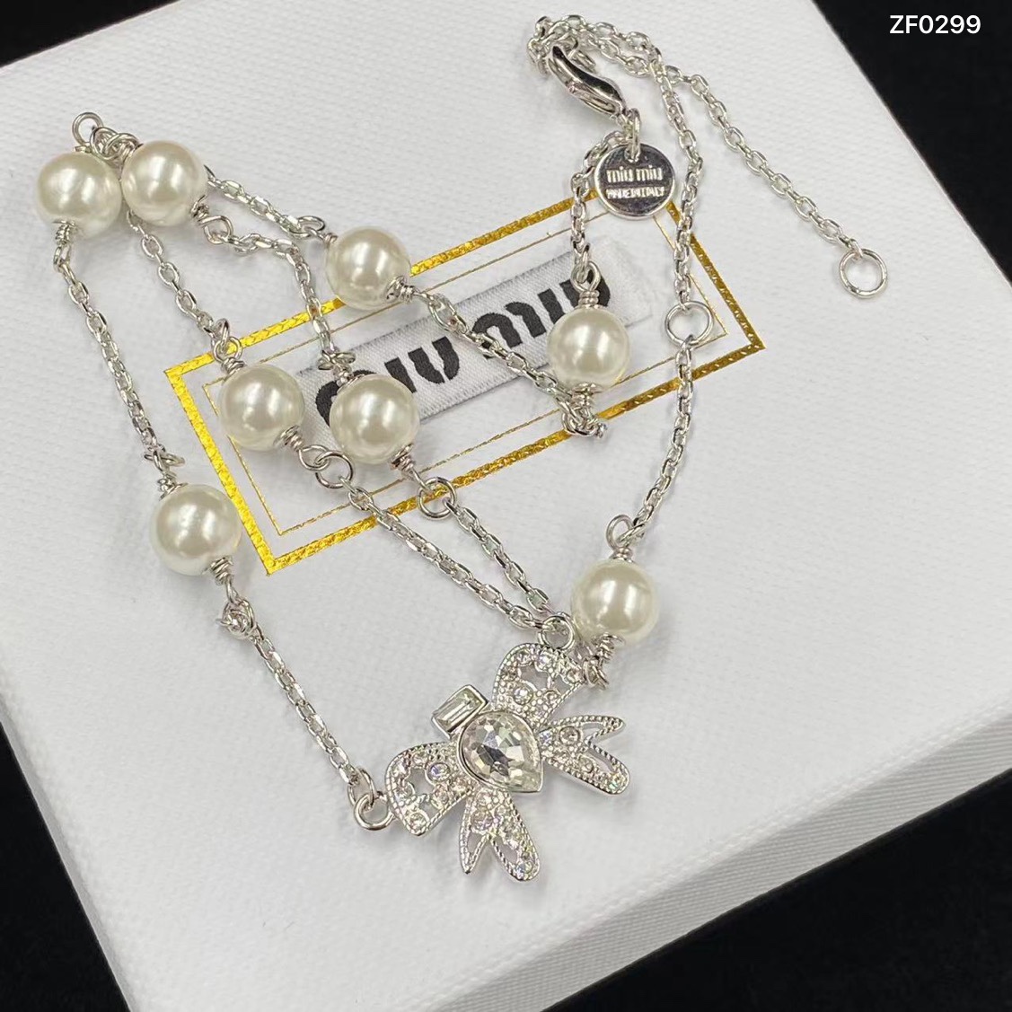 这款首饰是AAAAA 1:1 质量 (非常棒). 使用了和原版一模一样的材料. 商标部分也保持了和缪缪/Miu Miu一样. 图片拍摄是实物首饰拍摄, 您所收到的实物保证和我们图片一模一样.