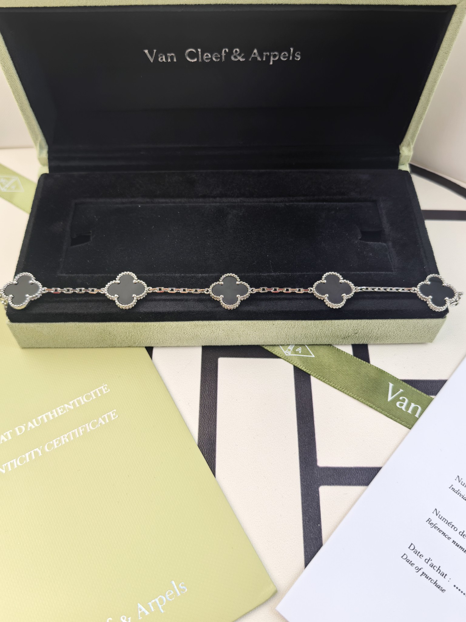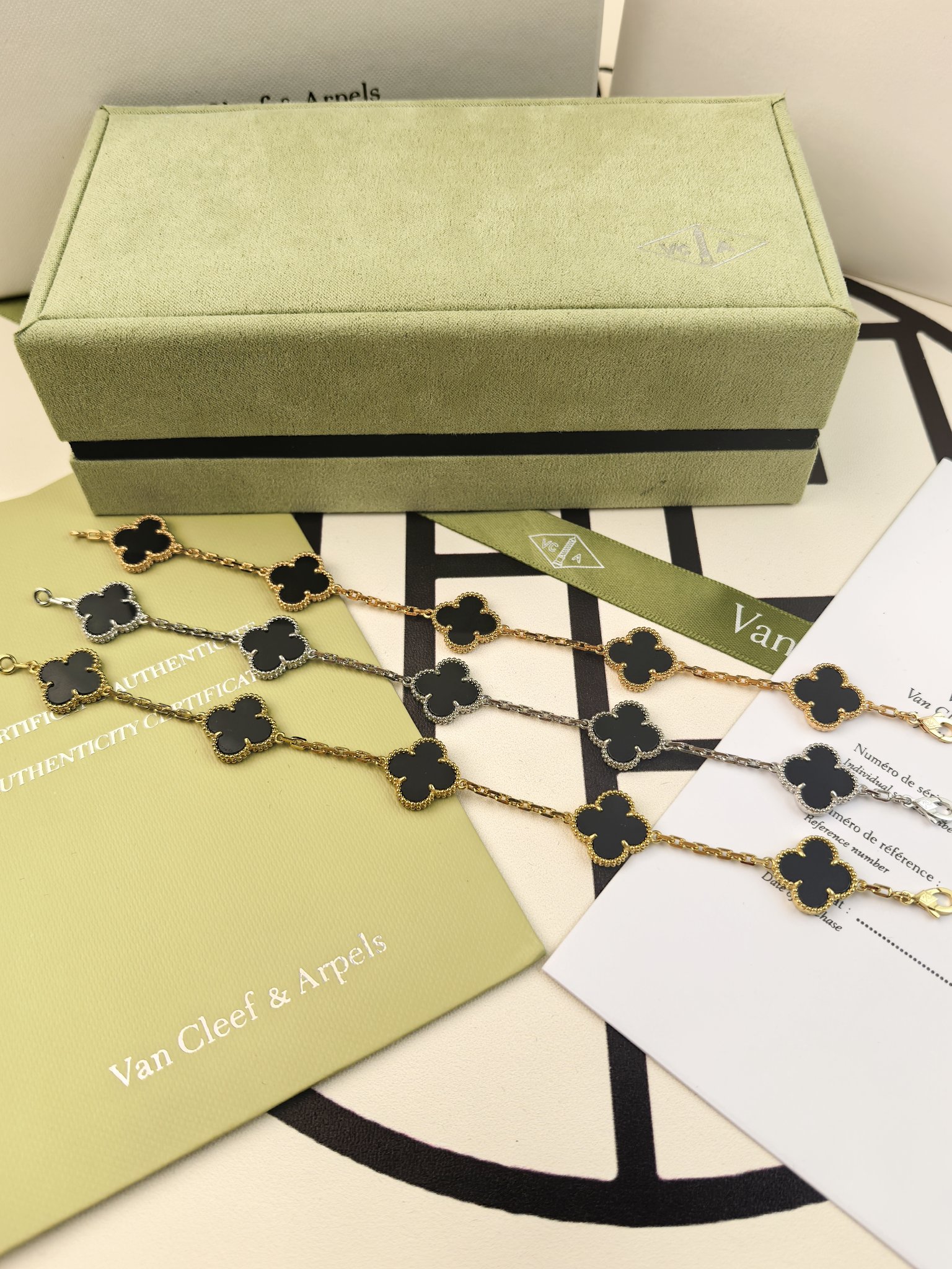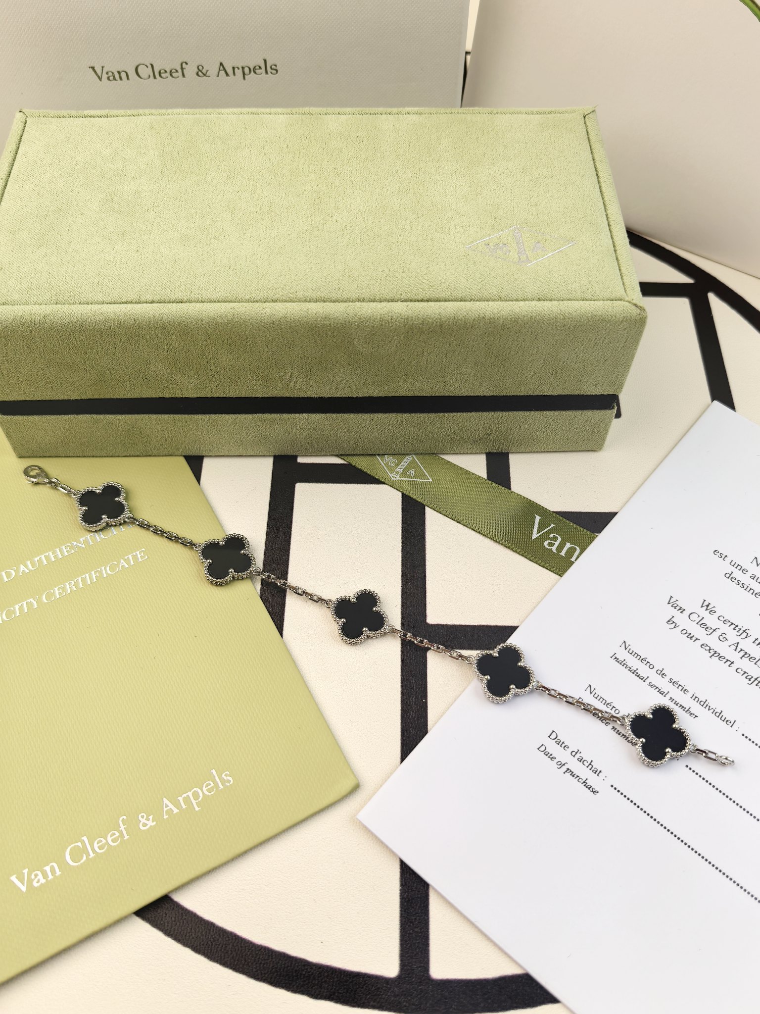 这款首饰是AAAAA 1:1 质量 (非常棒). 使用了和原版一模一样的材料. 商标部分也保持了和梵克雅宝/Van Cleef & Arpels一样. 图片拍摄是实物首饰拍摄, 您所收到的实物保证和我们图片一模一样.