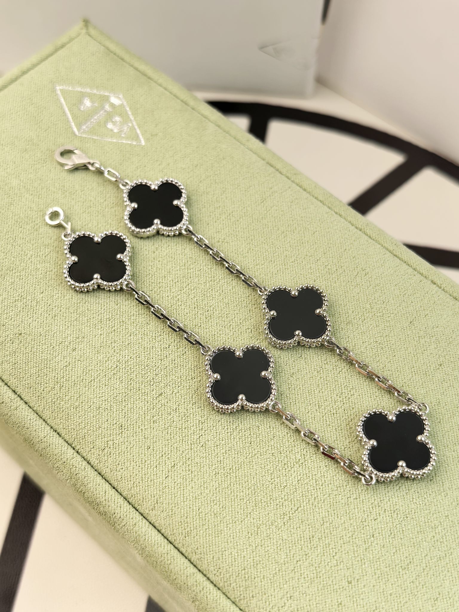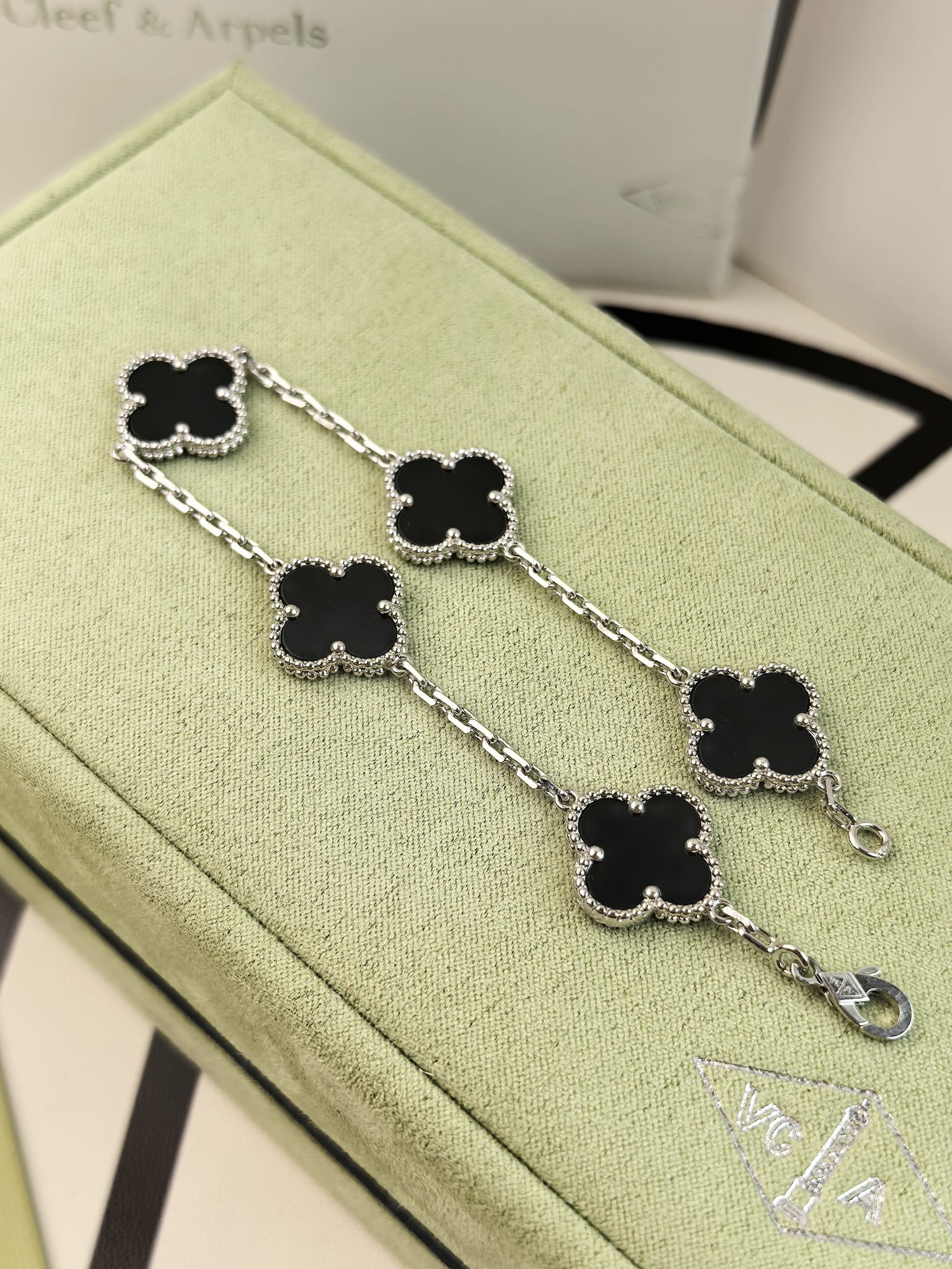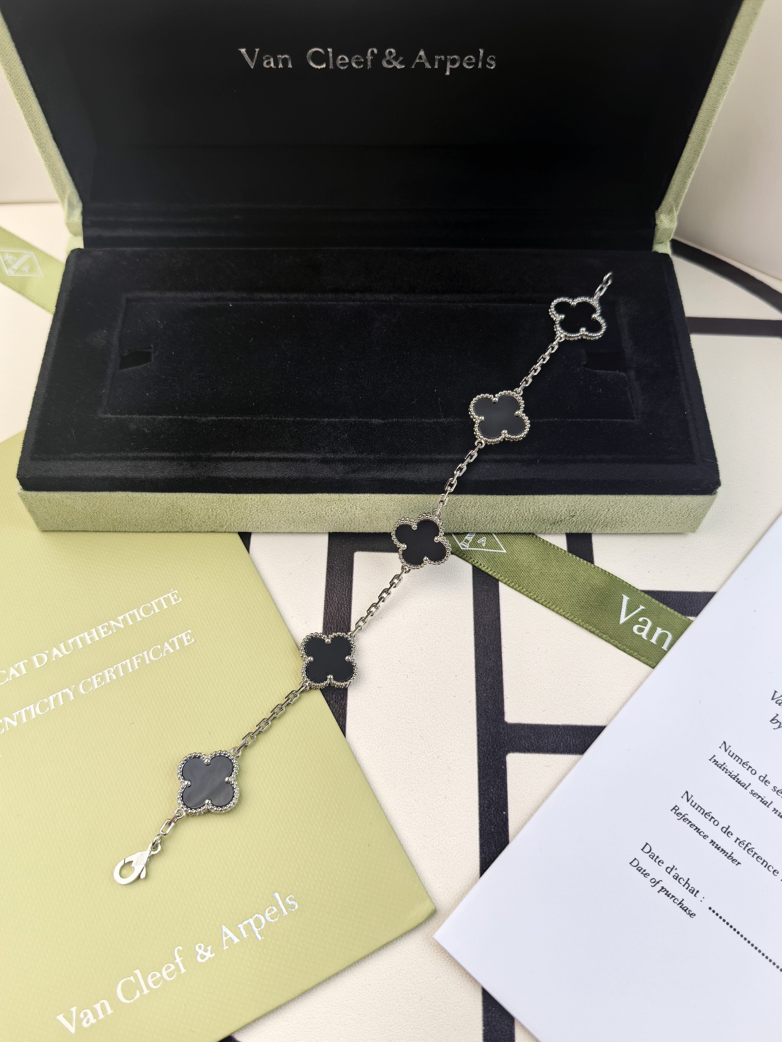 这款首饰是AAAAA 1:1 质量 (非常棒). 使用了和原版一模一样的材料. 商标部分也保持了和梵克雅宝/Van Cleef & Arpels一样. 图片拍摄是实物首饰拍摄, 您所收到的实物保证和我们图片一模一样.