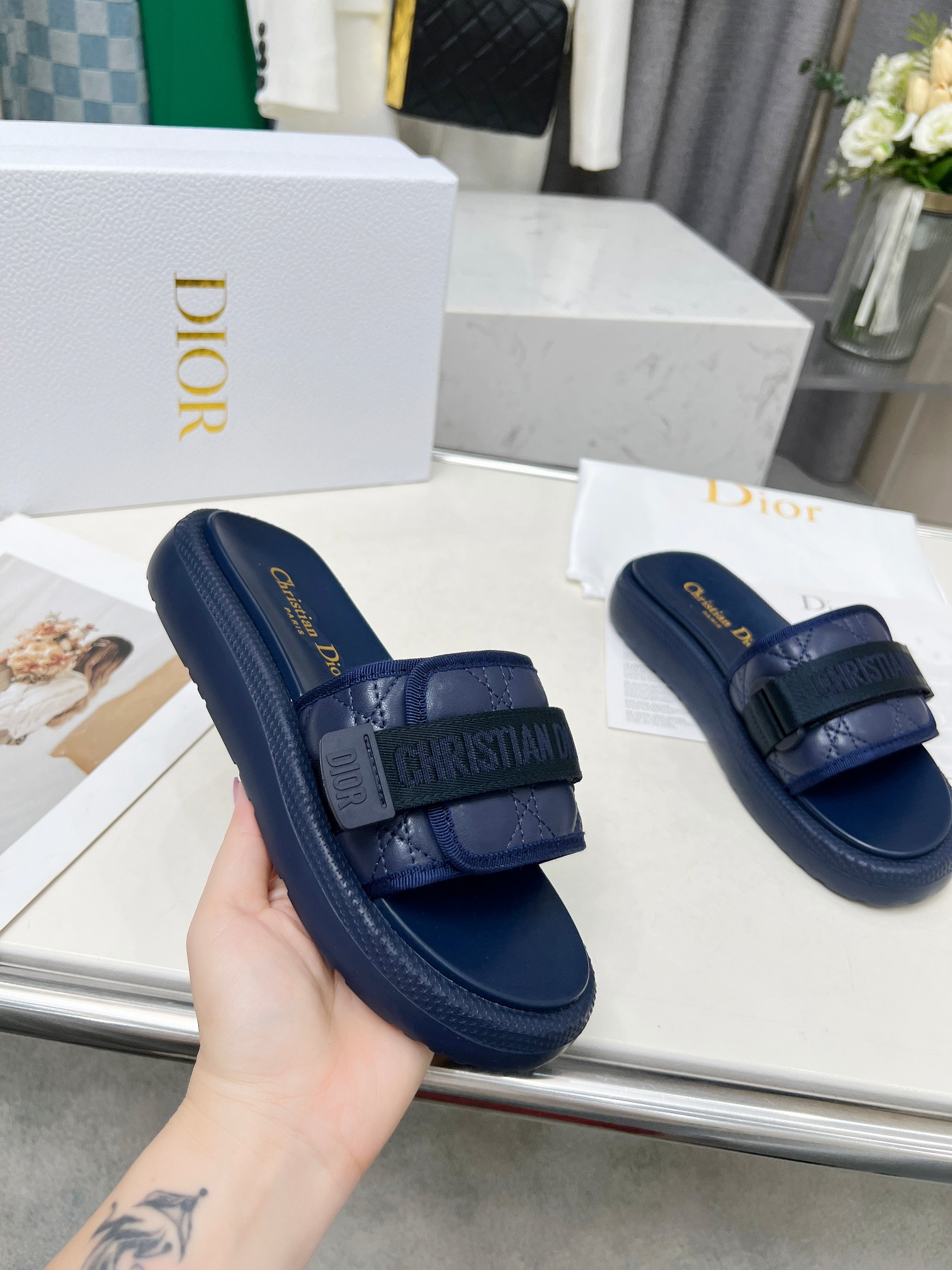这款鞋子是AAAAA 1:1 质量 (非常棒). 使用了和原版一模一样的材料. 商标部分也保持了和迪奥/Dior一样. 图片拍摄是实物鞋子拍摄, 您所收到的实物保证和我们图片一模一样.