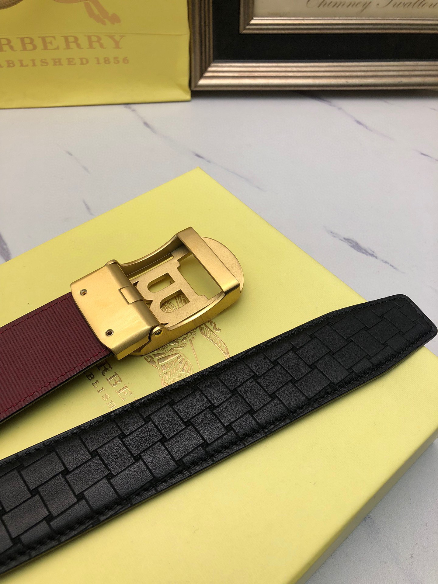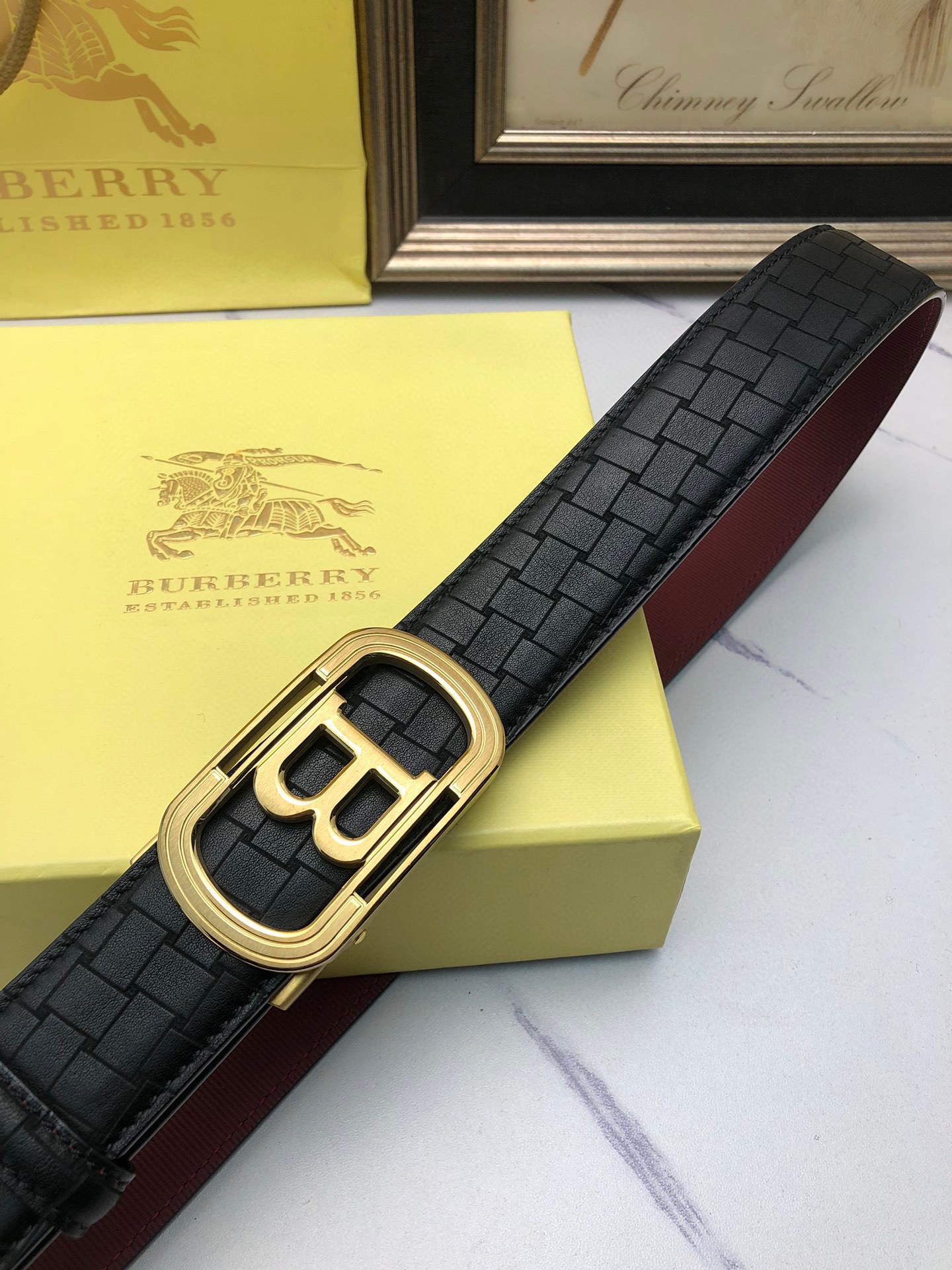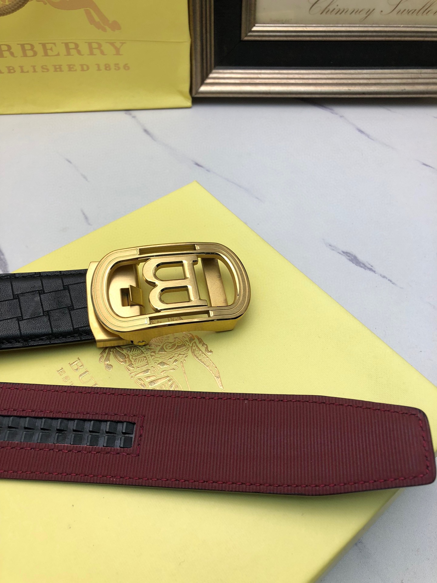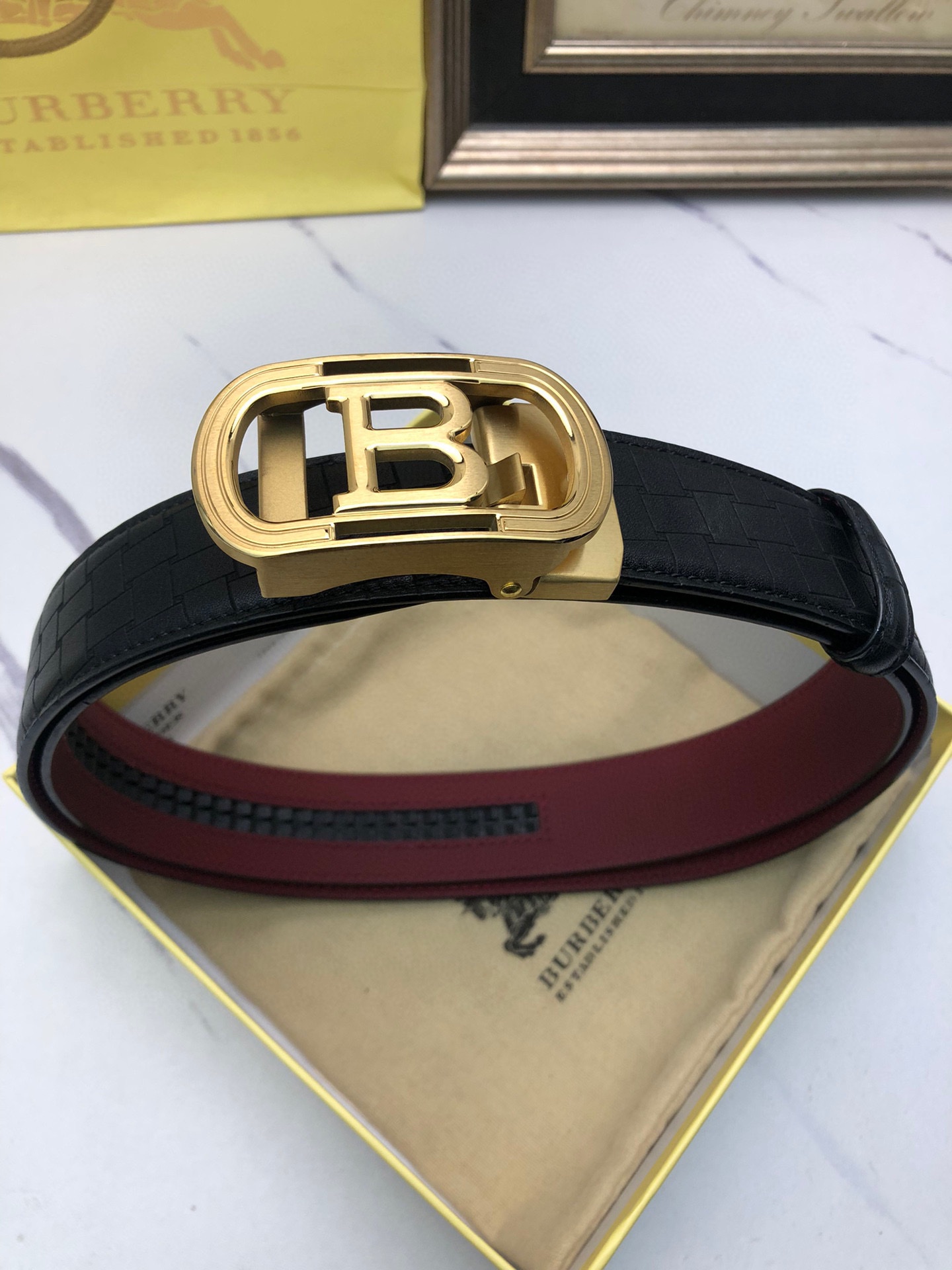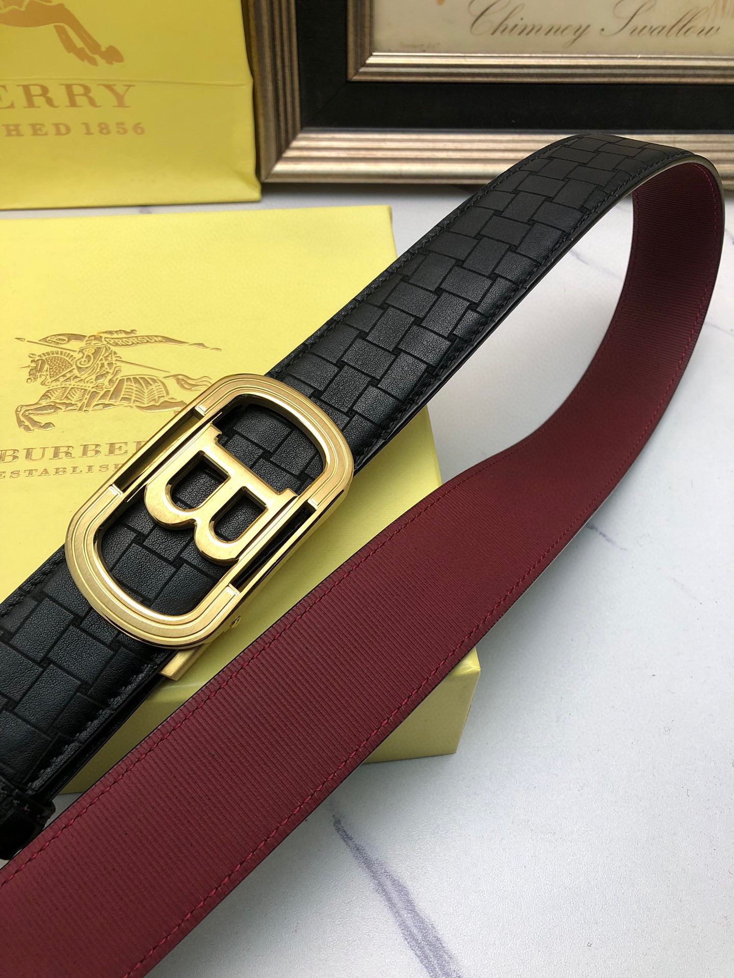 这款皮带是AAAAA 1:1 质量 (非常棒). 使用了和原版一模一样的材料. 商标部分也保持了和巴宝莉/Burberry一样. 图片拍摄是实物皮带拍摄, 您所收到的实物保证和我们图片一模一样.