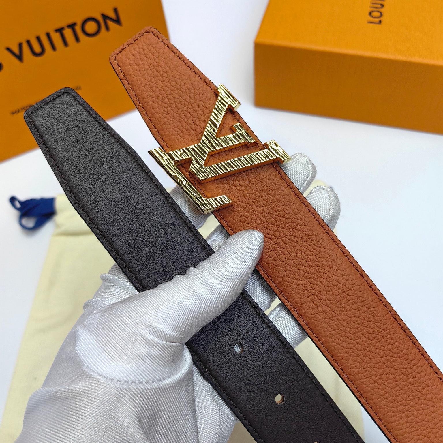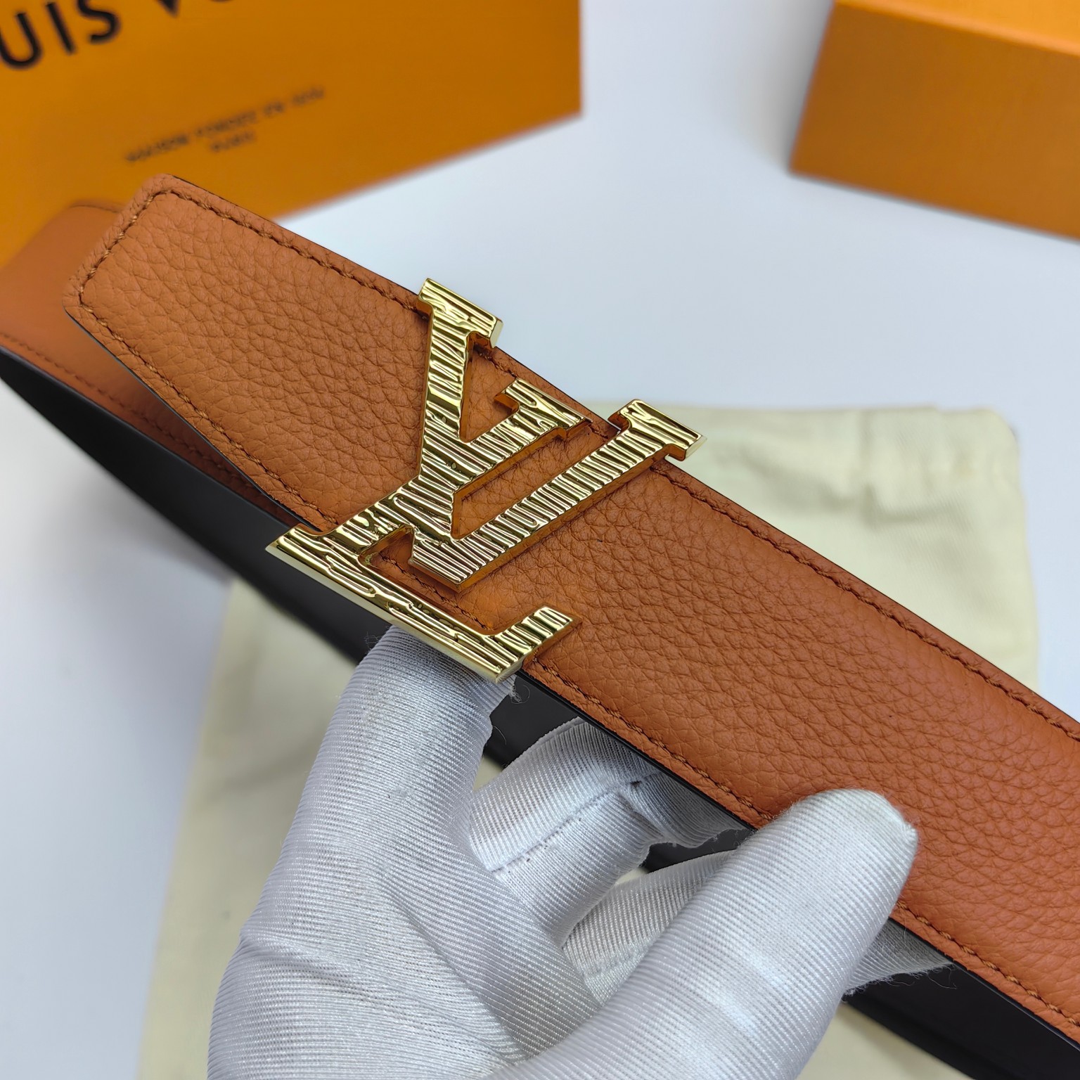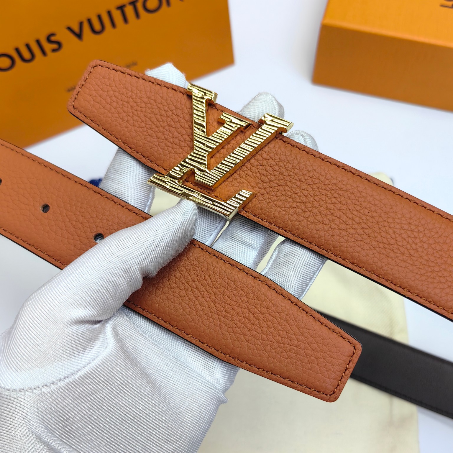 这款皮带是AAAAA 1:1 质量 (非常棒). 使用了和原版一模一样的材料. 商标部分也保持了和路易威登/Louis Vuitton一样. 图片拍摄是实物皮带拍摄, 您所收到的实物保证和我们图片一模一样.