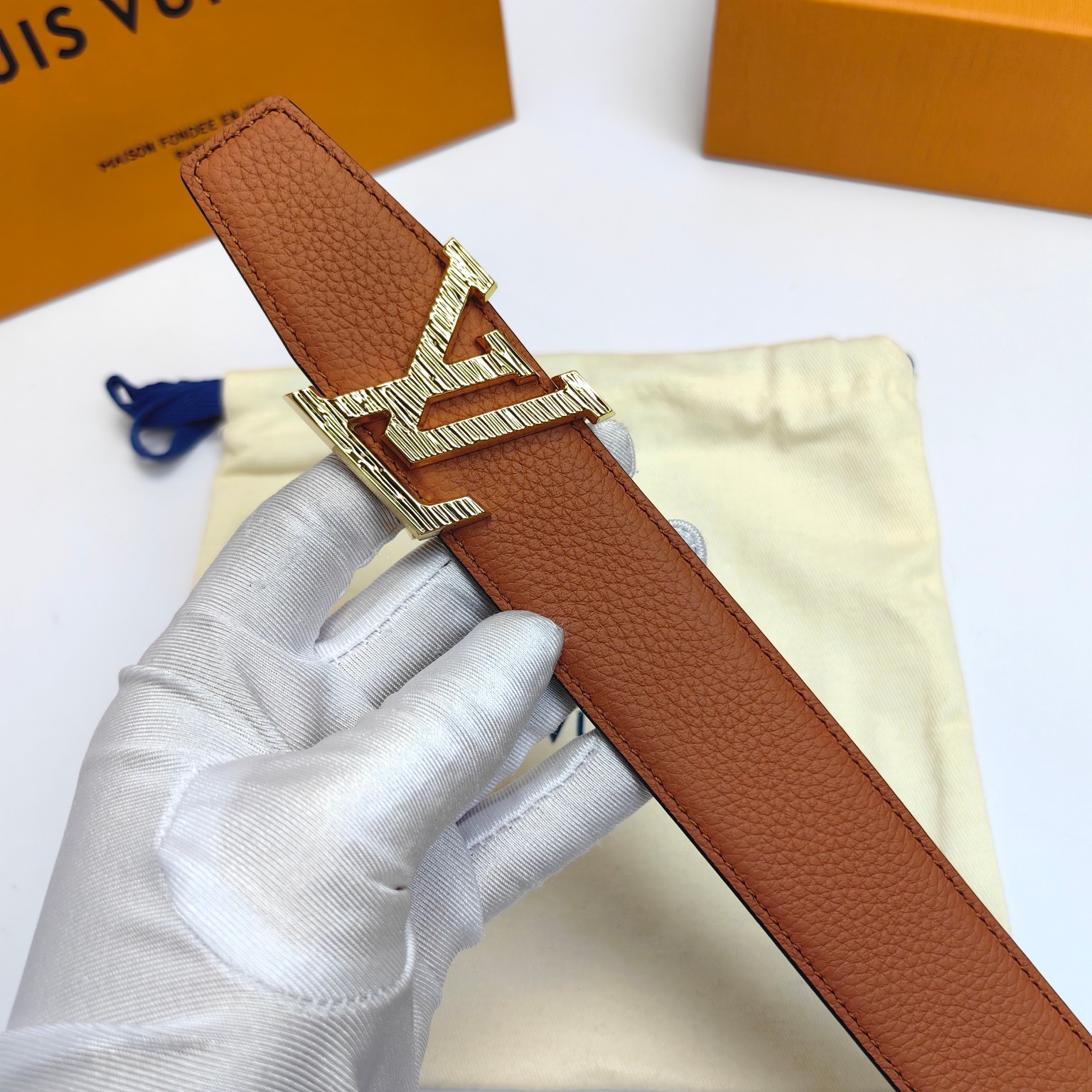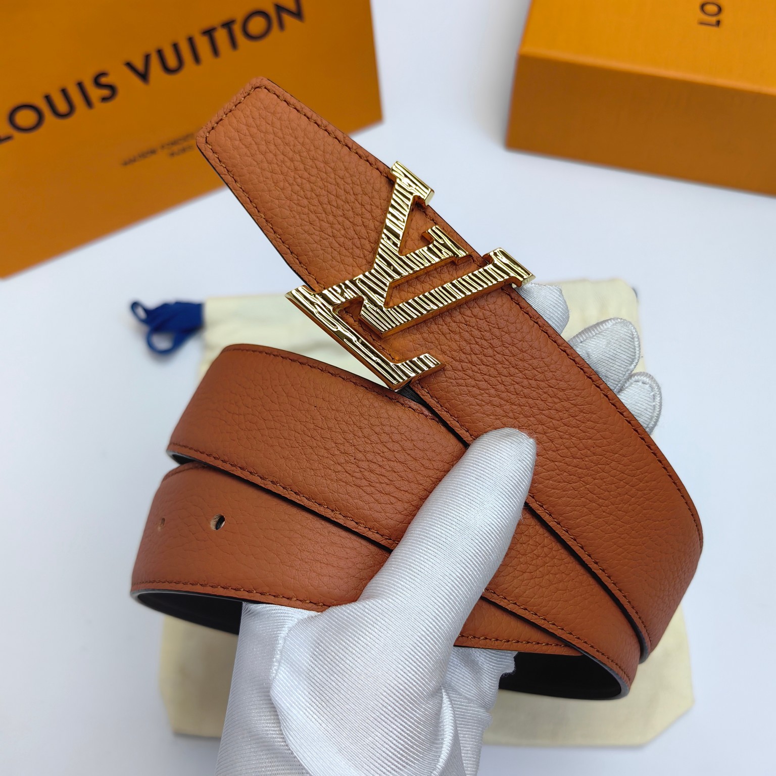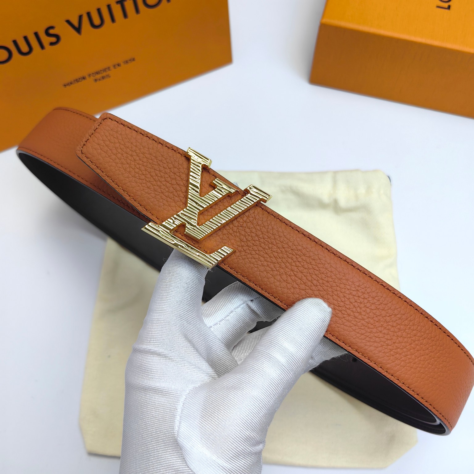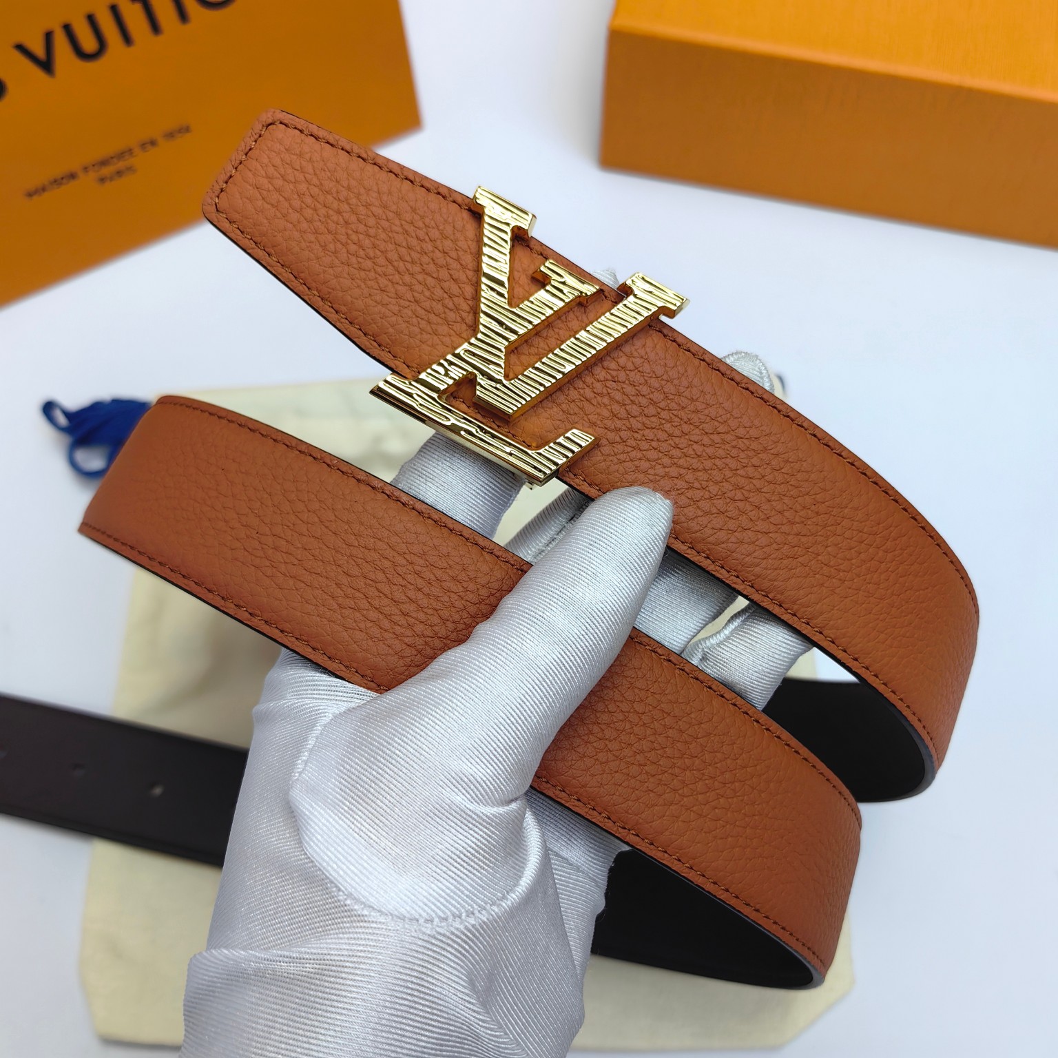 这款皮带是AAAAA 1:1 质量 (非常棒). 使用了和原版一模一样的材料. 商标部分也保持了和路易威登/Louis Vuitton一样. 图片拍摄是实物皮带拍摄, 您所收到的实物保证和我们图片一模一样.