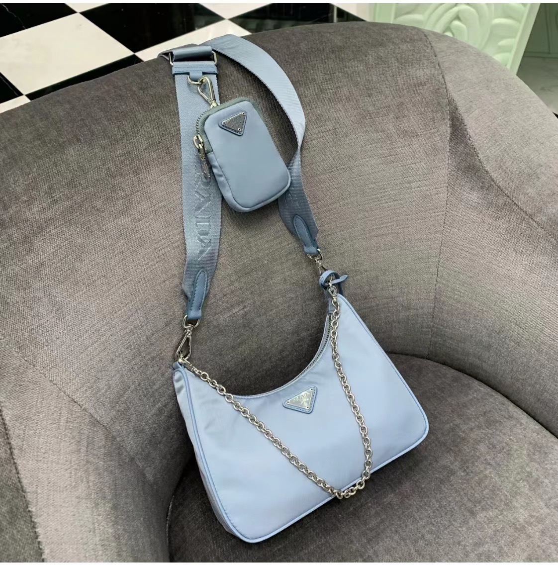 这款包包是AAAAA 1:1 质量 (非常棒). 使用了和原版一模一样的材料. 商标部分也保持了和普拉达/Prada一样. 图片拍摄是实物包包拍摄, 您所收到的实物保证和我们图片一模一样.