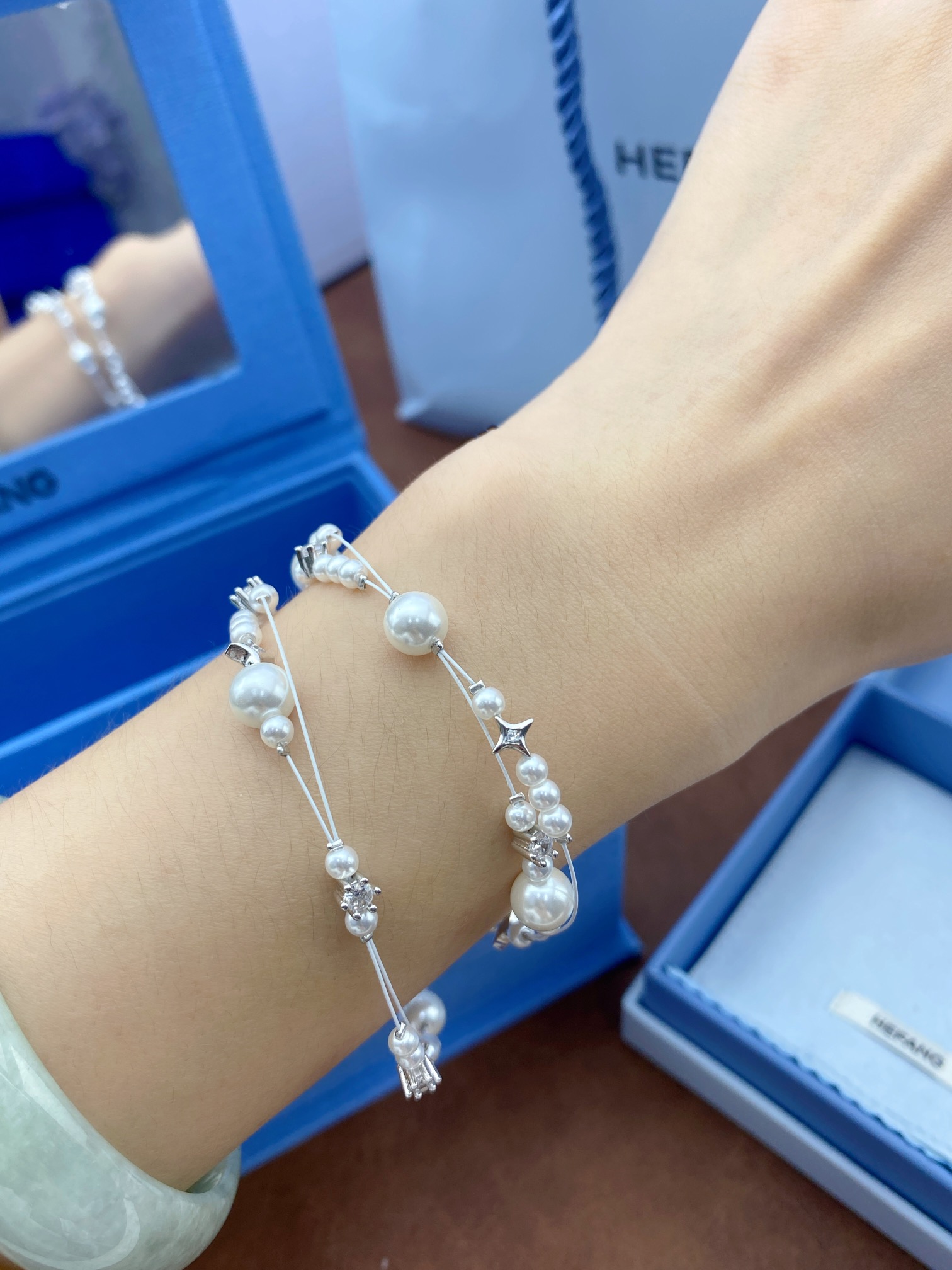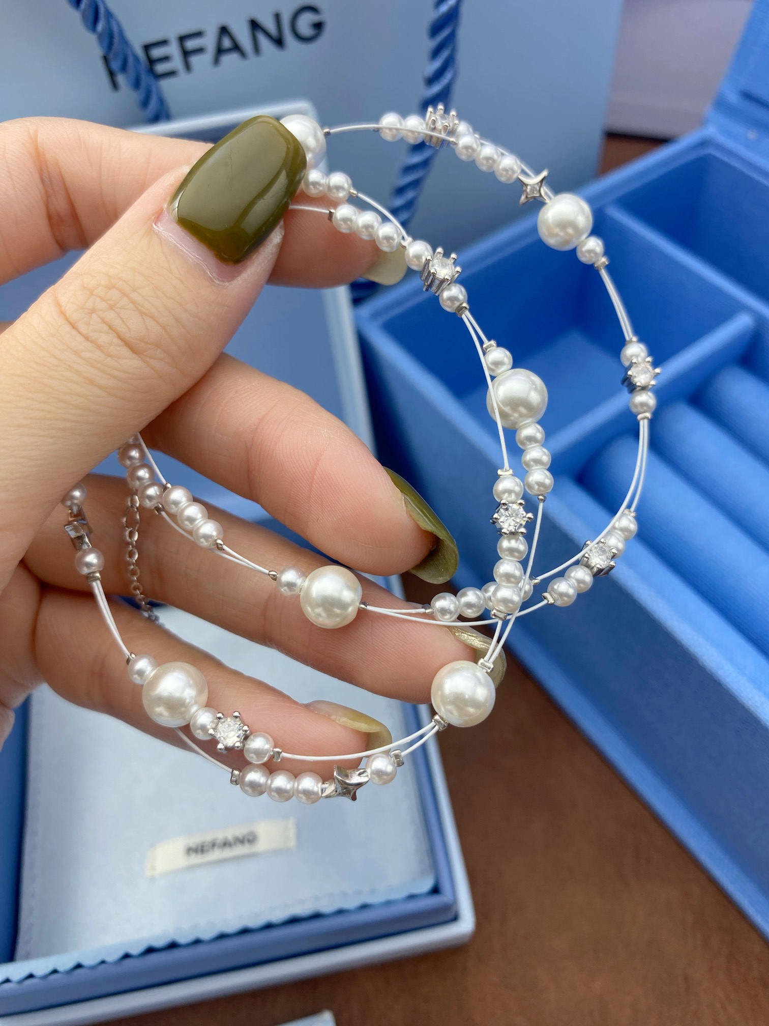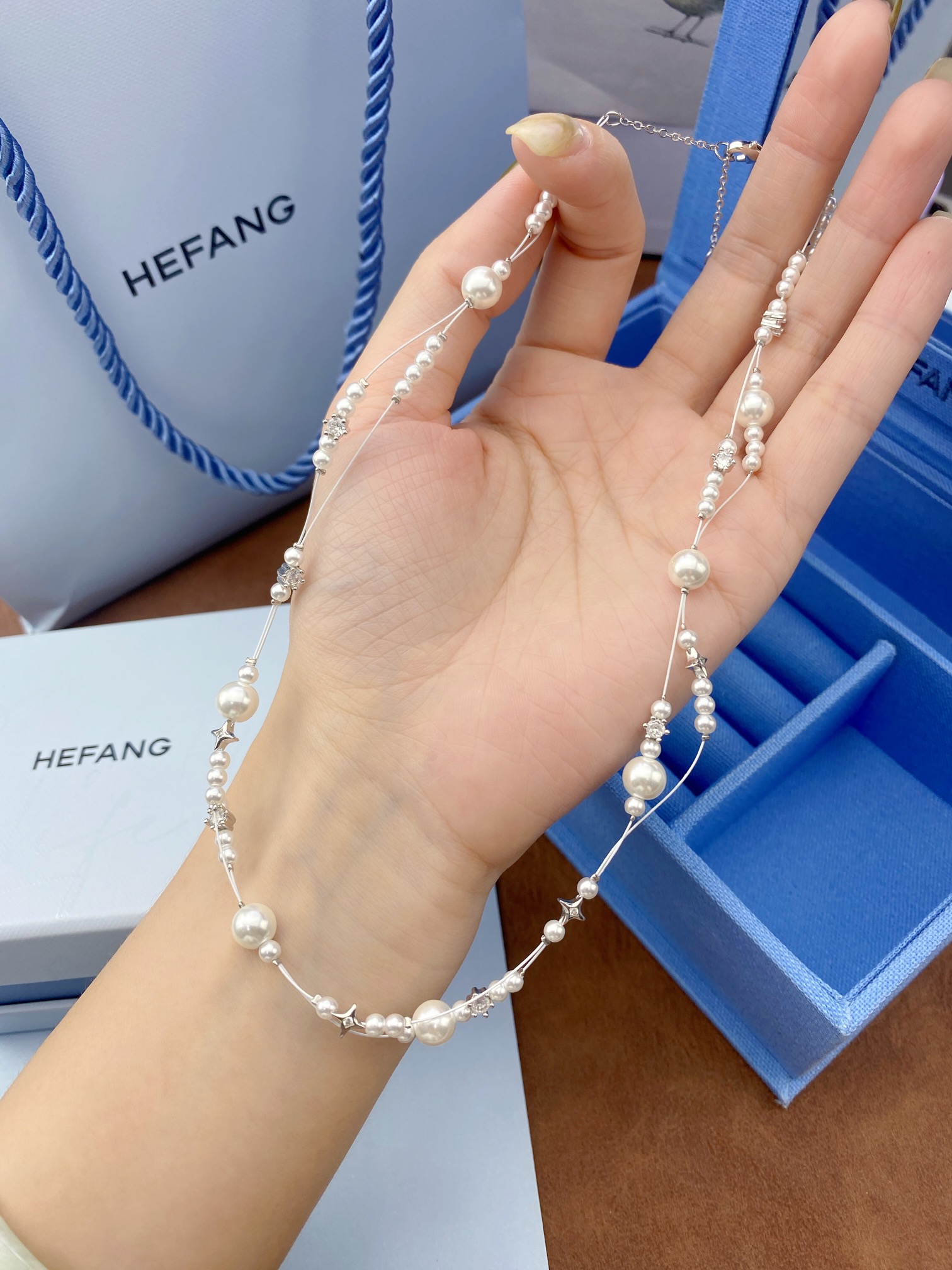 这款首饰是AAAAA 1:1 质量 (非常棒). 使用了和原版一模一样的材料. 商标部分也保持了和孙何方/HEFANG一样. 图片拍摄是实物首饰拍摄, 您所收到的实物保证和我们图片一模一样.
