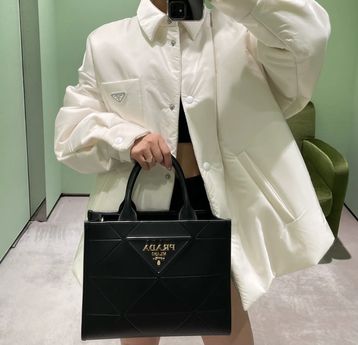 这款包包是AAAAA 1:1 质量 (非常棒). 使用了和原版一模一样的材料. 商标部分也保持了和普拉达/Prada一样. 图片拍摄是实物包包拍摄, 您所收到的实物保证和我们图片一模一样.