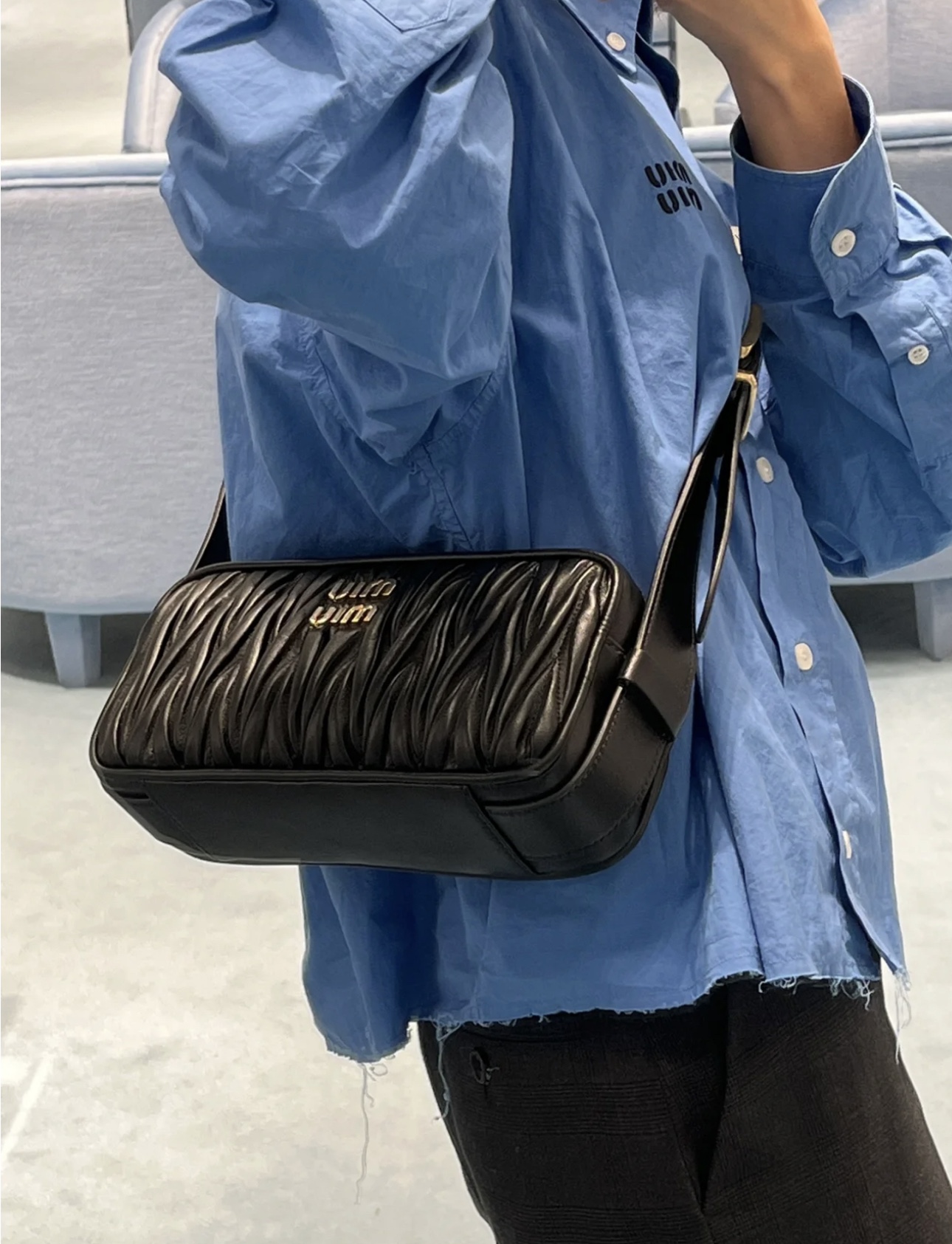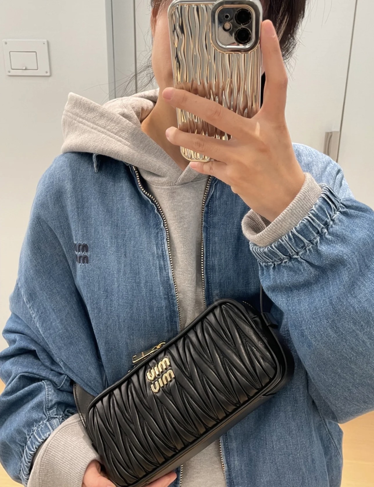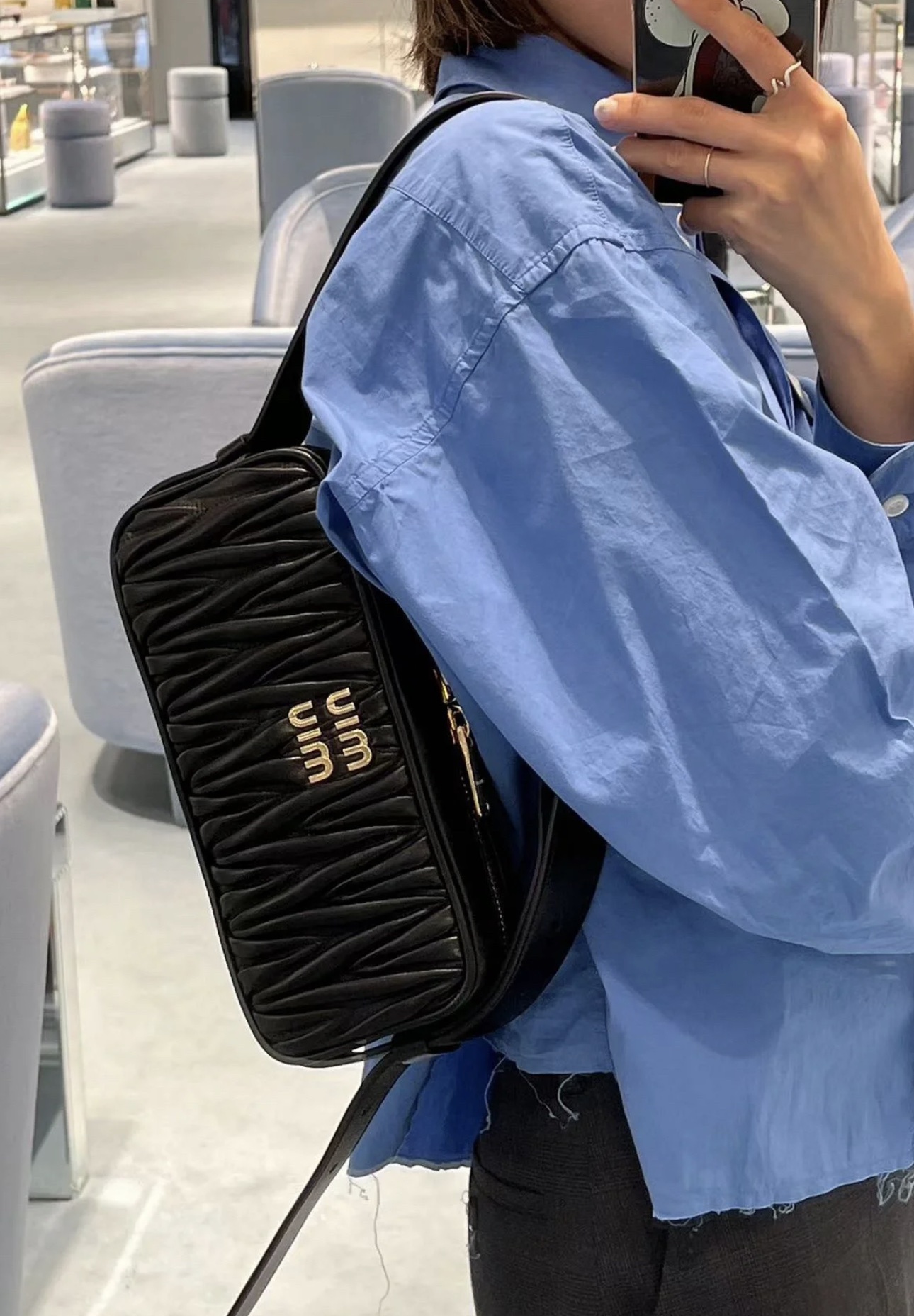 这款包包是AAAAA 1:1 质量 (非常棒). 使用了和原版一模一样的材料. 商标部分也保持了和缪缪/Miu Miu一样. 图片拍摄是实物包包拍摄, 您所收到的实物保证和我们图片一模一样.