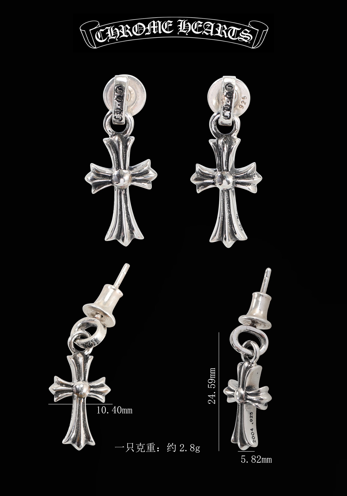 这款首饰是AAAAA 1:1 质量 (非常棒). 使用了和原版一模一样的材料. 商标部分也保持了和克罗心/Chrome Hearts一样. 图片拍摄是实物首饰拍摄, 您所收到的实物保证和我们图片一模一样.