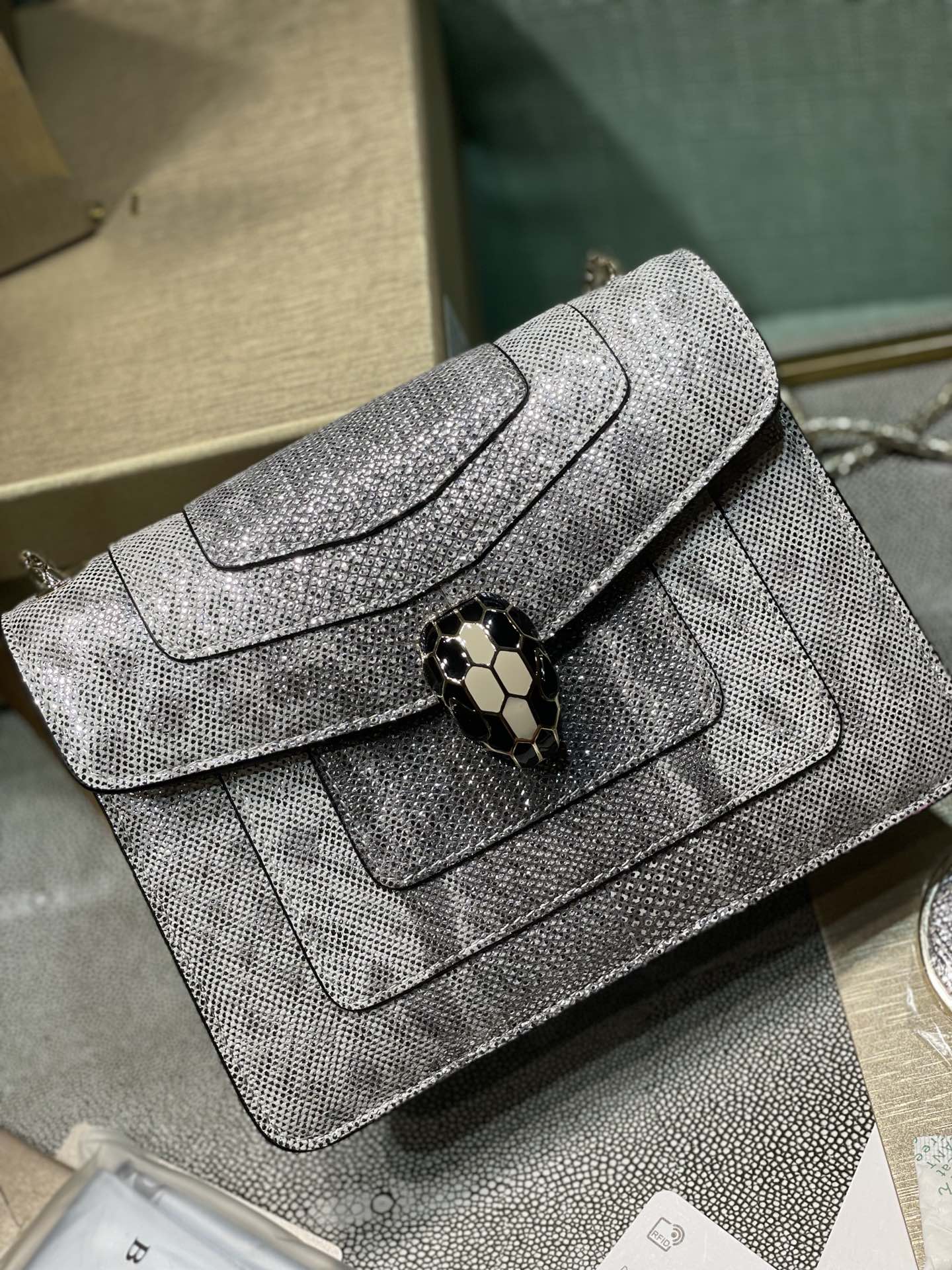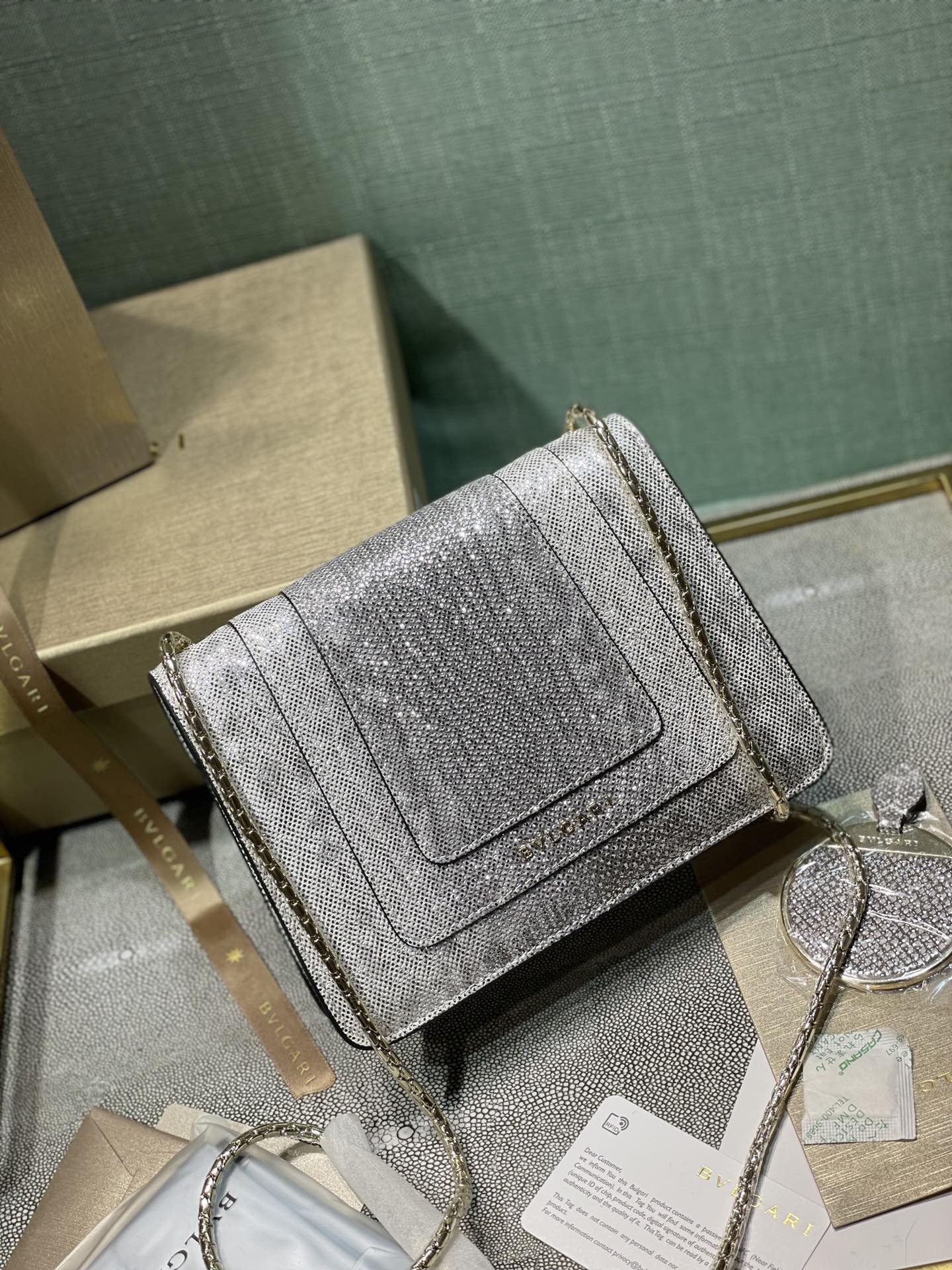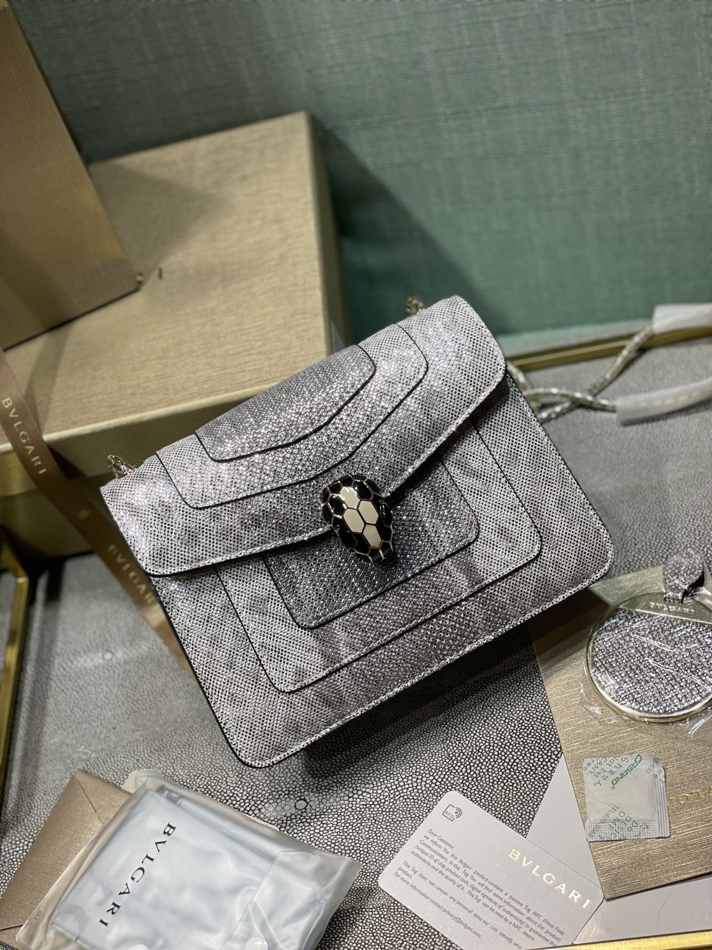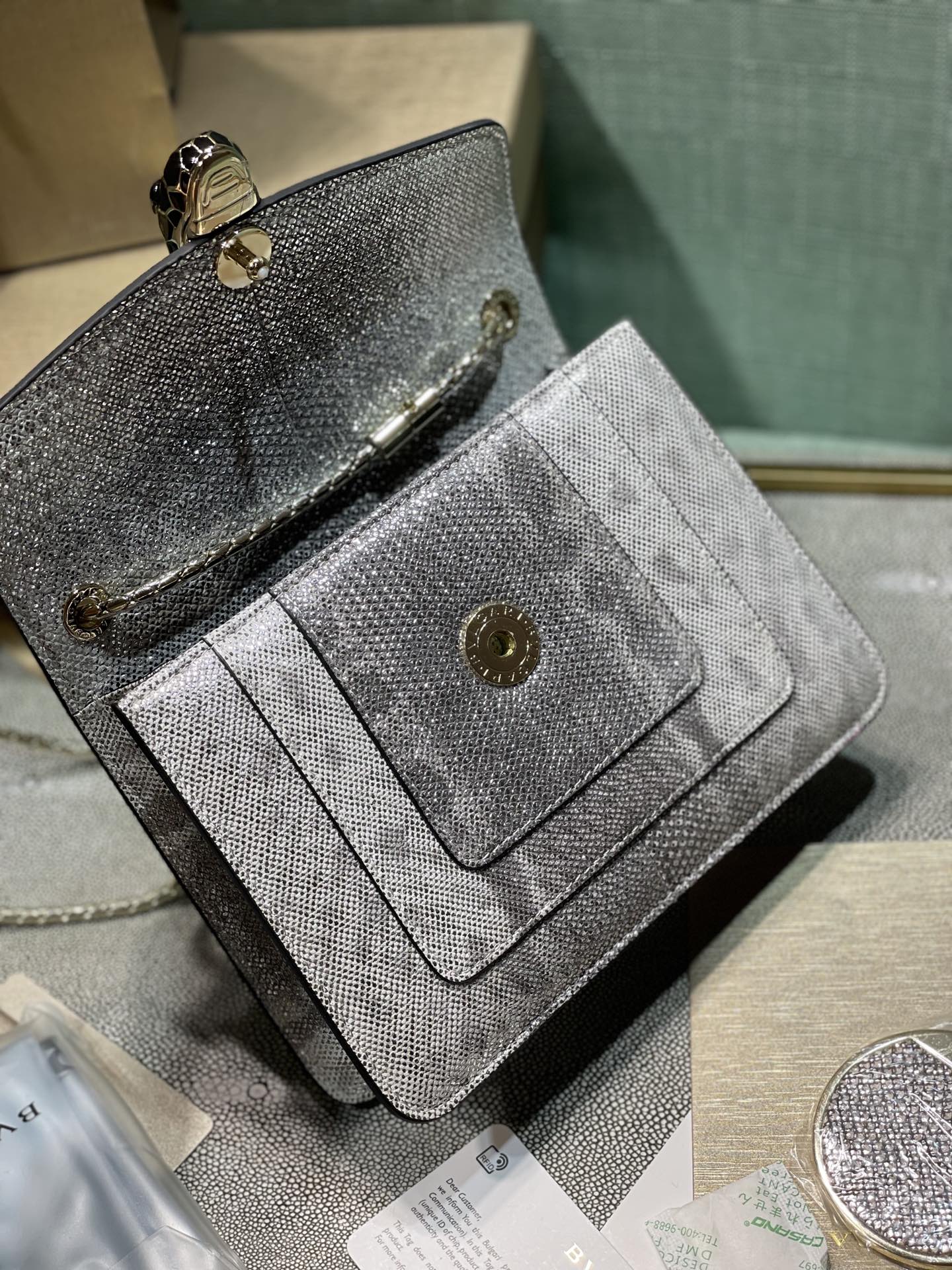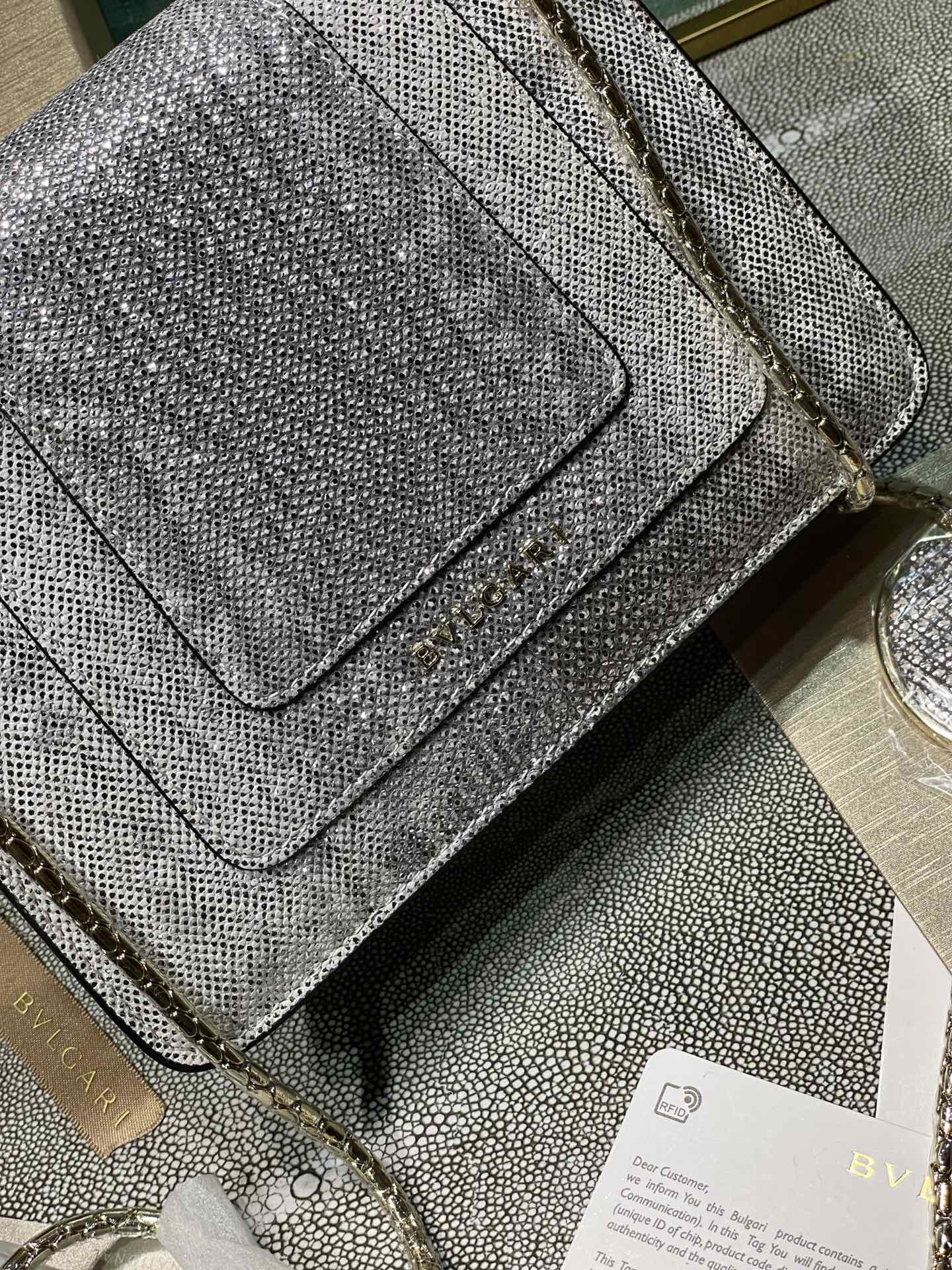 这款包包是AAAAA 1:1 质量 (非常棒). 使用了和原版一模一样的材料. 商标部分也保持了和宝格丽/Bulgari一样. 图片拍摄是实物包包拍摄, 您所收到的实物保证和我们图片一模一样.