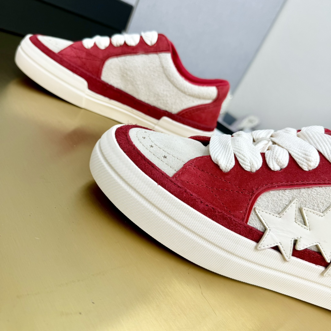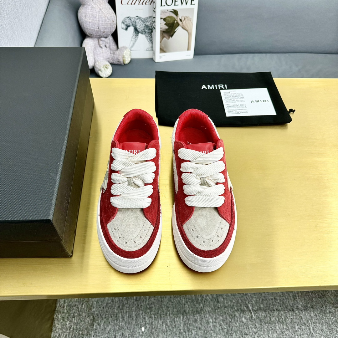 这款鞋子是AAAAA 1:1 质量 (非常棒). 使用了和原版一模一样的材料. 商标部分也保持了和AMIRI一样. 图片拍摄是实物鞋子拍摄, 您所收到的实物保证和我们图片一模一样.