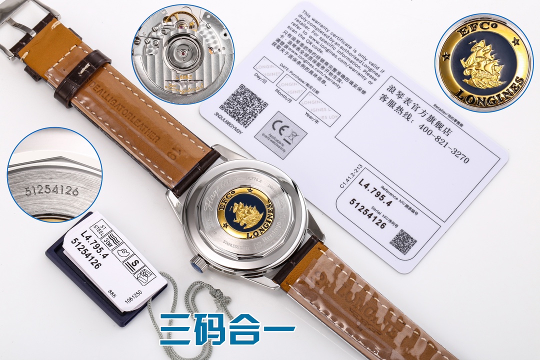 这款手表是AAAAA 1:1 质量 (非常棒). 使用了和原版一模一样的材料. 商标部分也保持了和浪琴/Longines一样. 图片拍摄是实物手表拍摄, 您所收到的实物保证和我们图片一模一样.