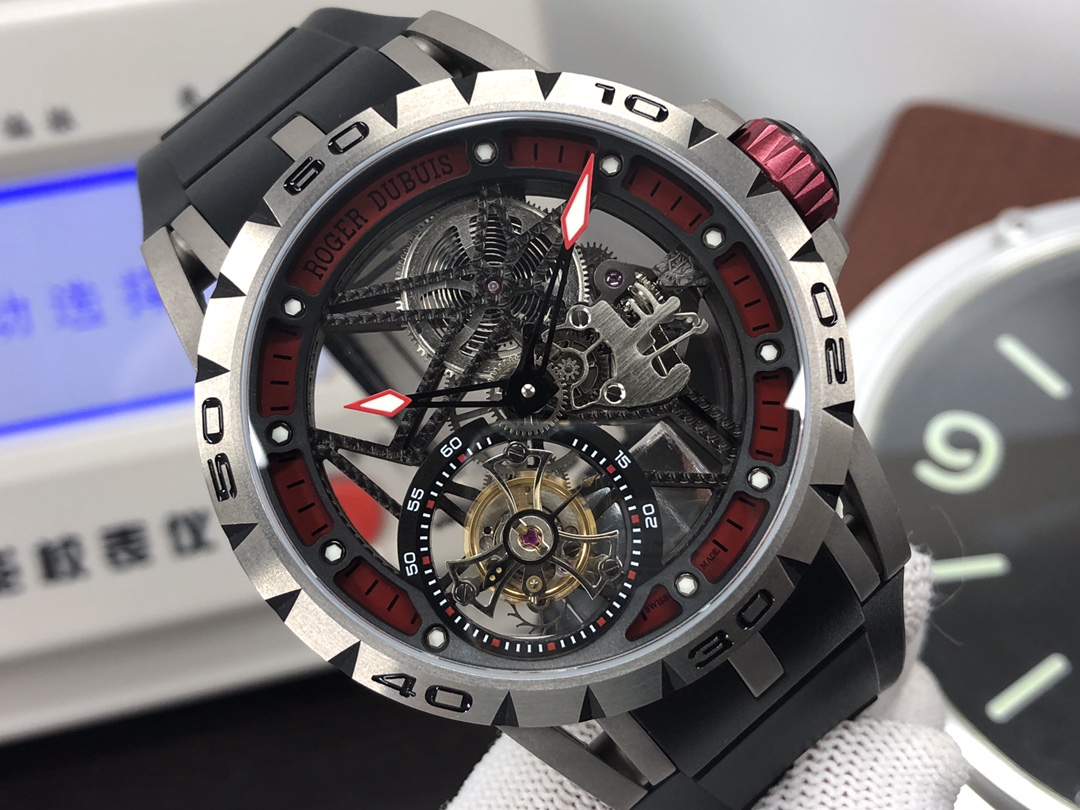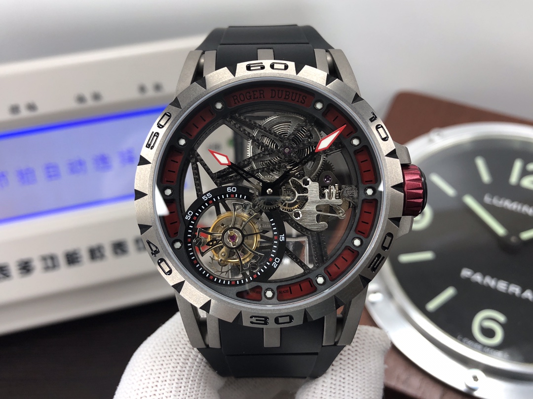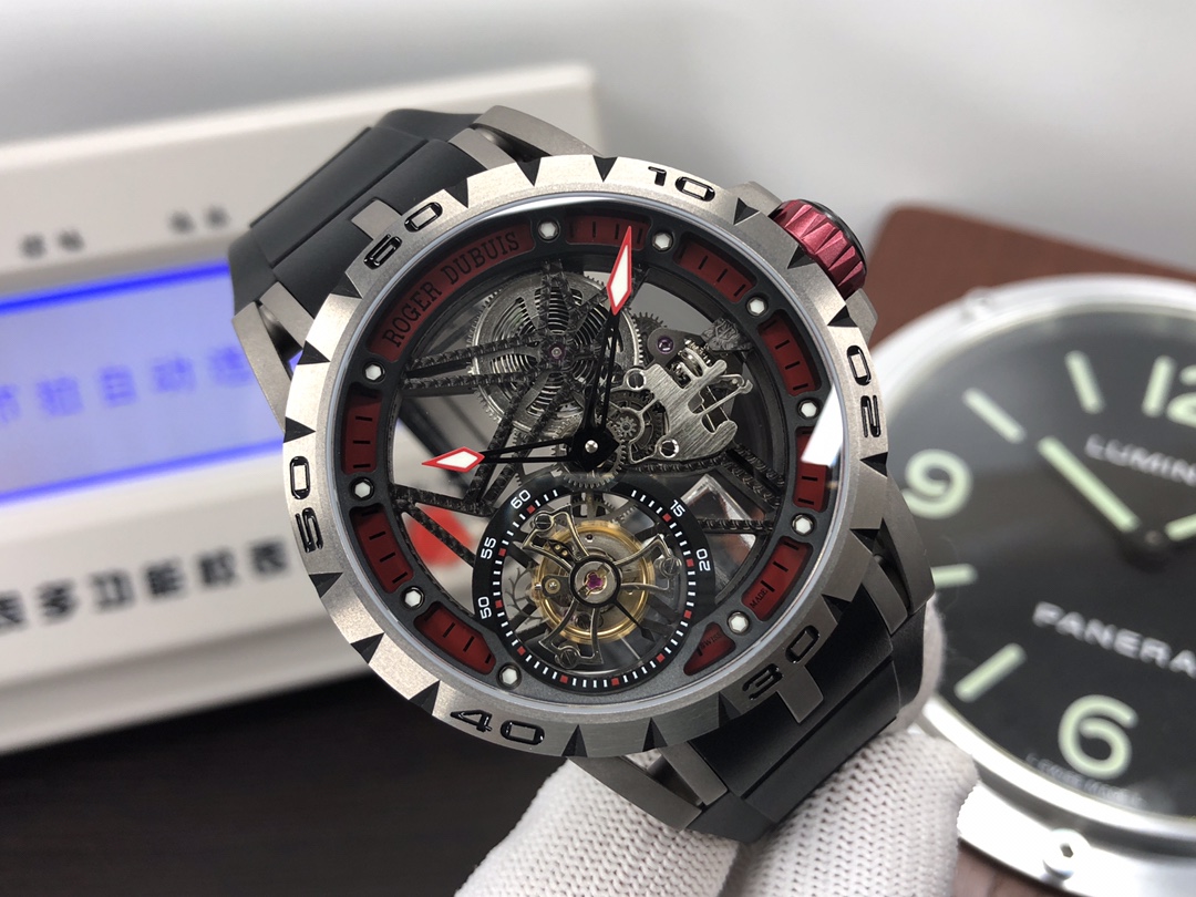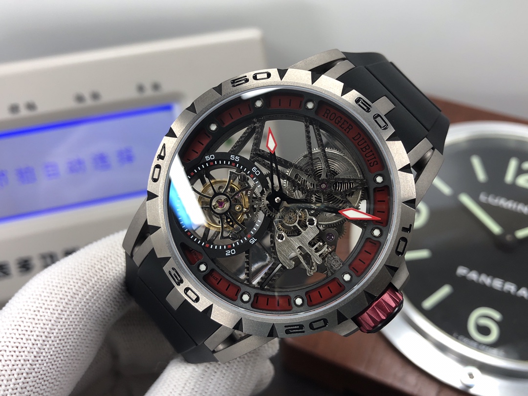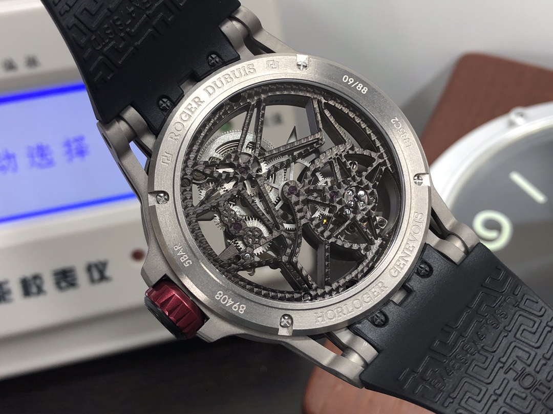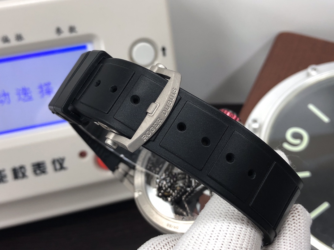 这款手表是AAAAA 1:1 质量 (非常棒). 使用了和原版一模一样的材料. 商标部分也保持了和Roger Dubuis一样. 图片拍摄是实物手表拍摄, 您所收到的实物保证和我们图片一模一样.