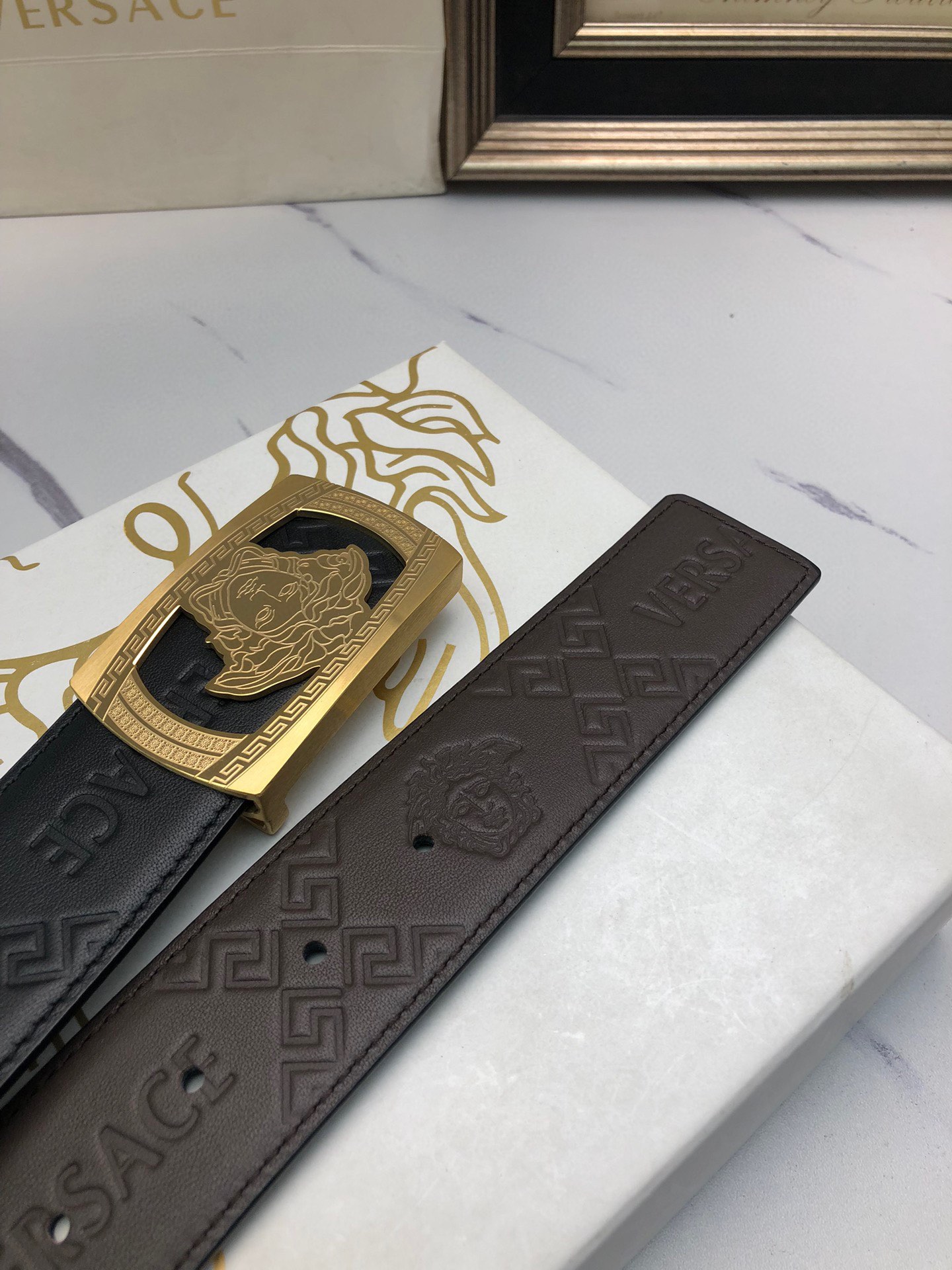 这款皮带是AAAAA 1:1 质量 (非常棒). 使用了和原版一模一样的材料. 商标部分也保持了和范思哲/Versace一样. 图片拍摄是实物皮带拍摄, 您所收到的实物保证和我们图片一模一样.