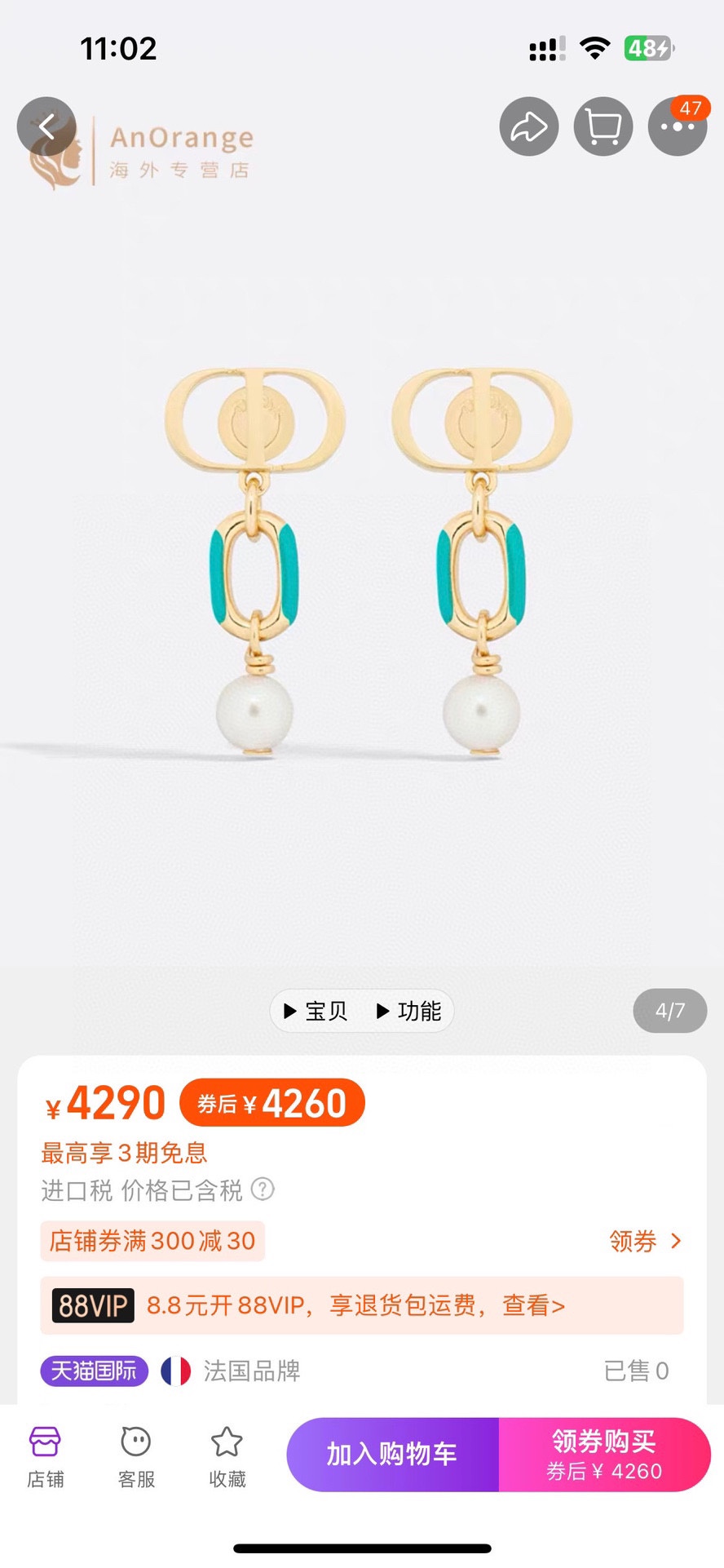 这款首饰是AAAAA 1:1 质量 (非常棒). 使用了和原版一模一样的材料. 商标部分也保持了和迪奥/Dior一样. 图片拍摄是实物首饰拍摄, 您所收到的实物保证和我们图片一模一样.