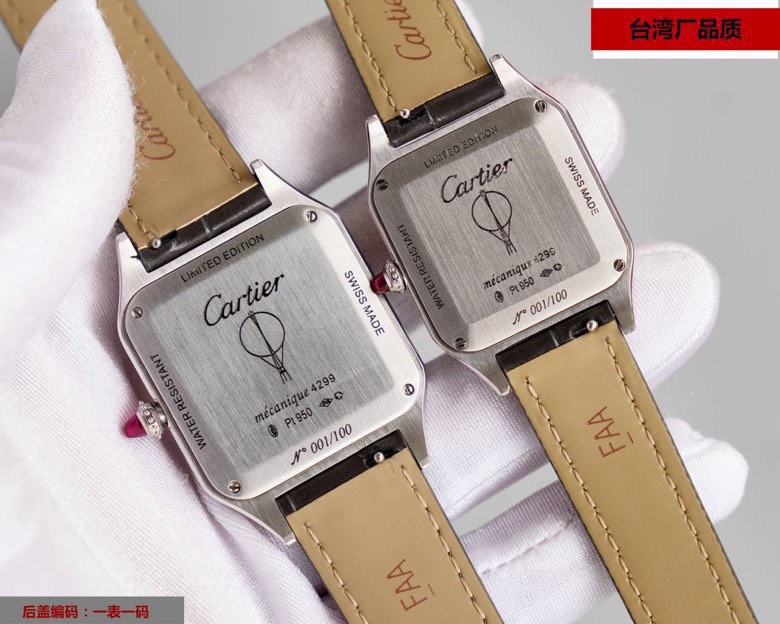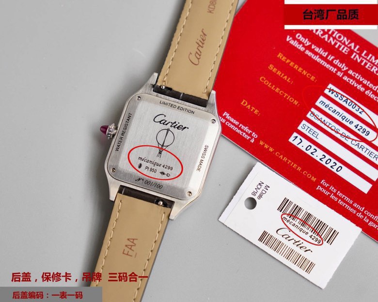 这款手表是AAAAA 1:1 质量 (非常棒). 使用了和原版一模一样的材料. 商标部分也保持了和卡地亚/Cartier一样. 图片拍摄是实物手表拍摄, 您所收到的实物保证和我们图片一模一样.