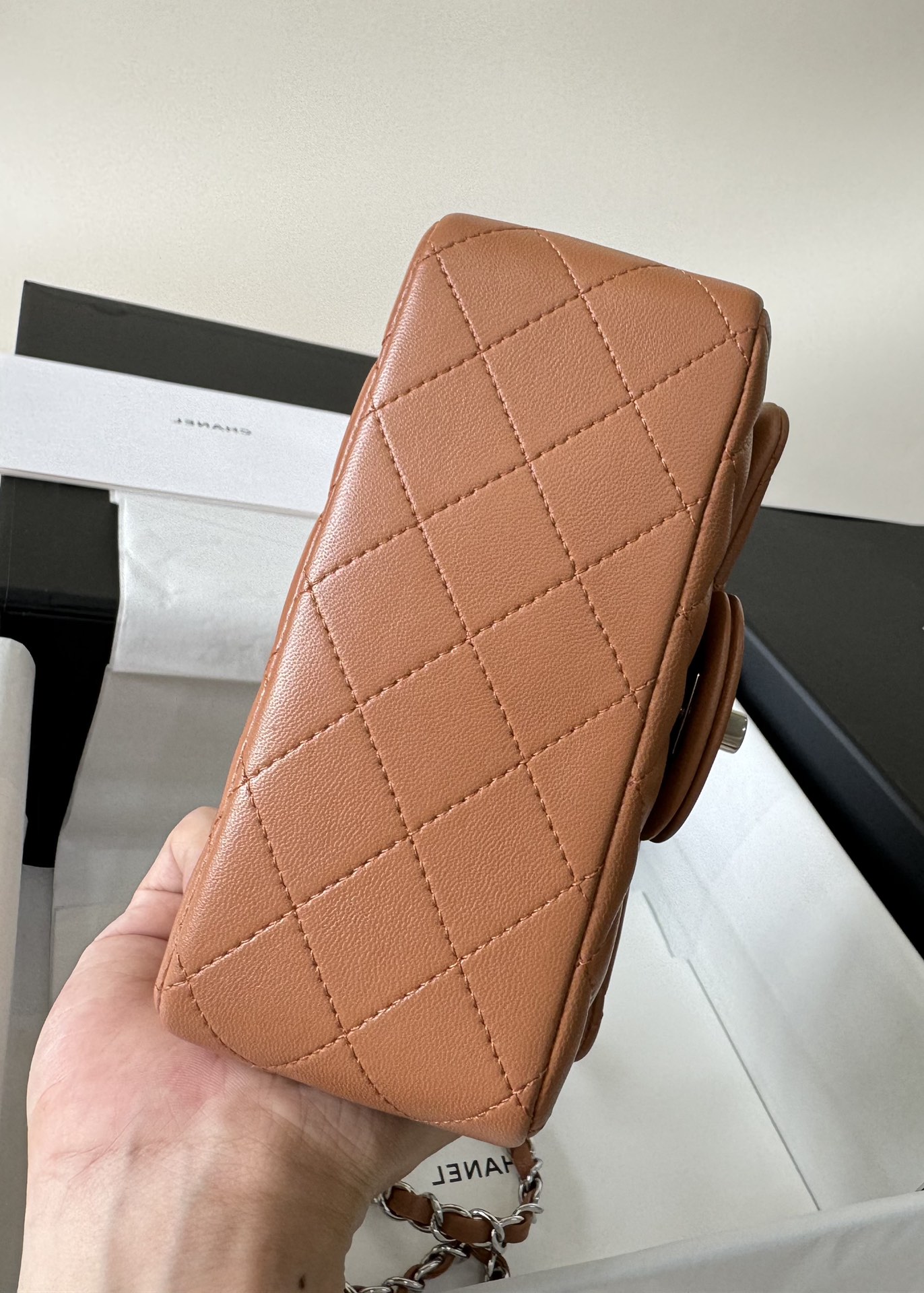 这款包包是AAAAA 1:1 质量 (非常棒). 使用了和原版一模一样的材料. 商标部分也保持了和香奈儿/Chanel一样. 图片拍摄是实物包包拍摄, 您所收到的实物保证和我们图片一模一样.