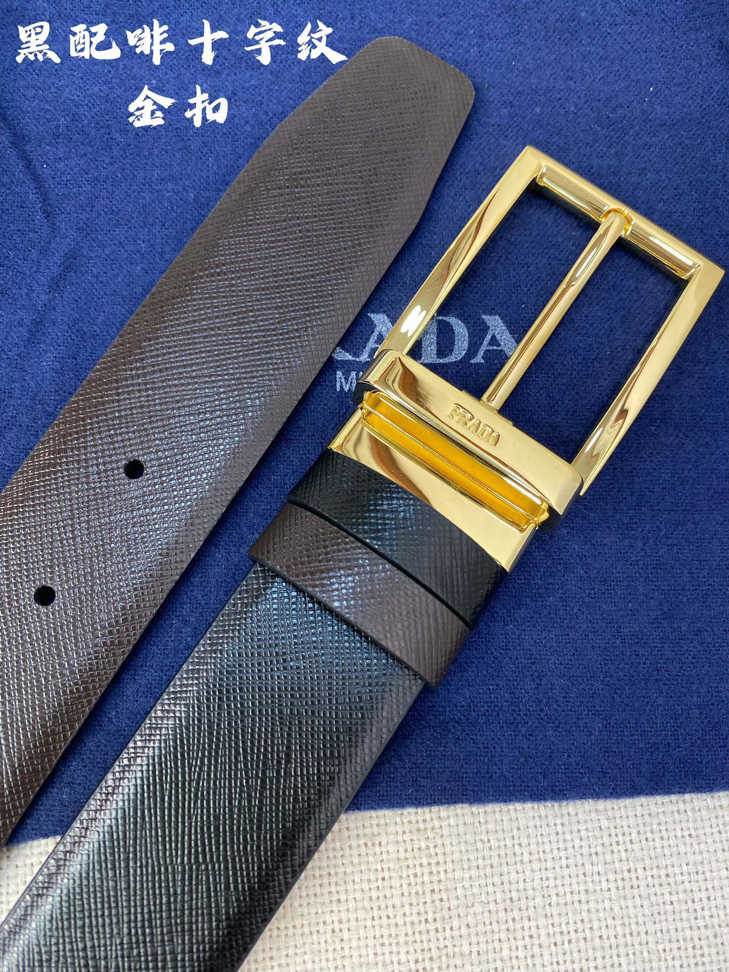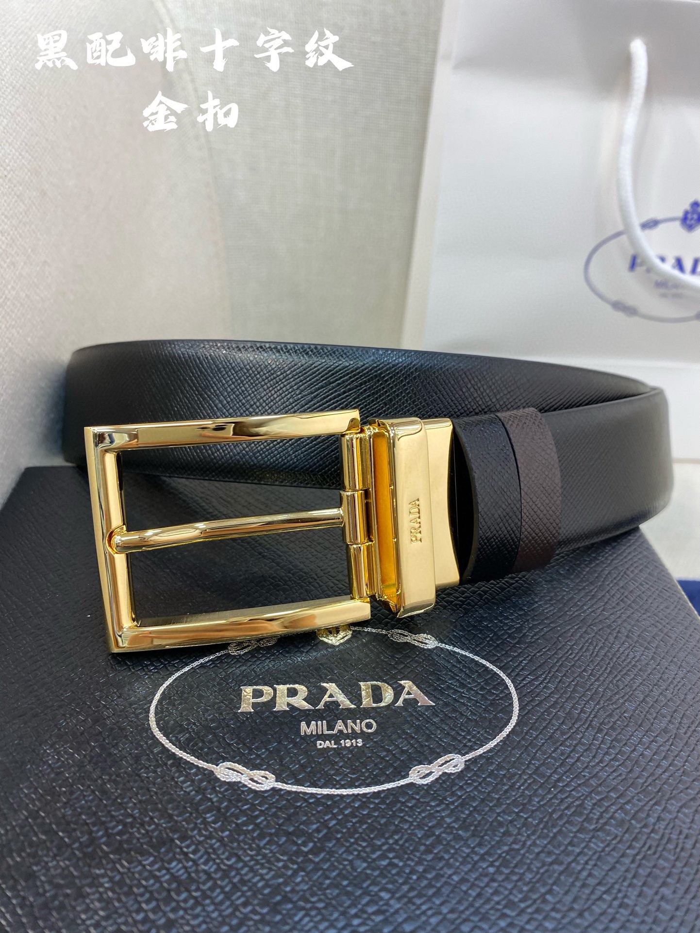 这款皮带是AAAAA 1:1 质量 (非常棒). 使用了和原版一模一样的材料. 商标部分也保持了和普拉达/Prada一样. 图片拍摄是实物皮带拍摄, 您所收到的实物保证和我们图片一模一样.