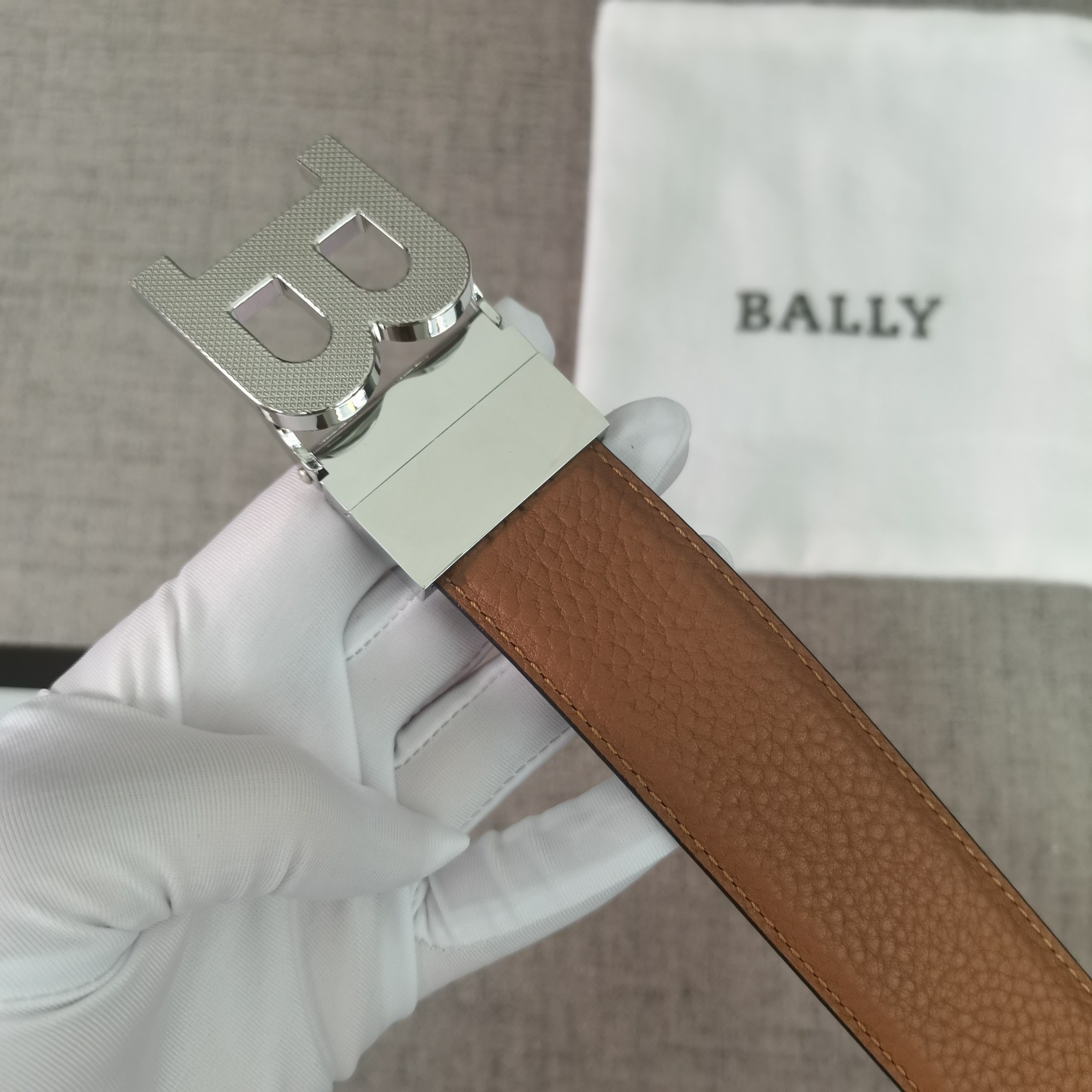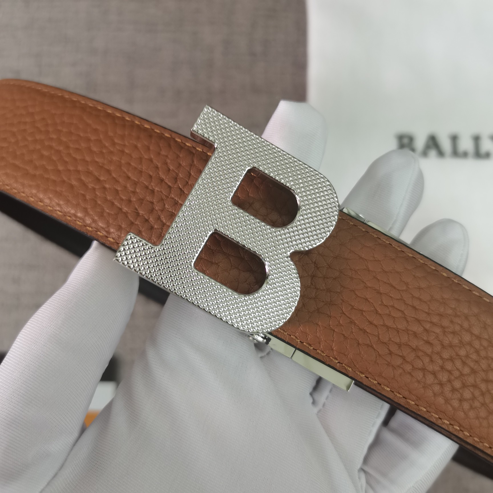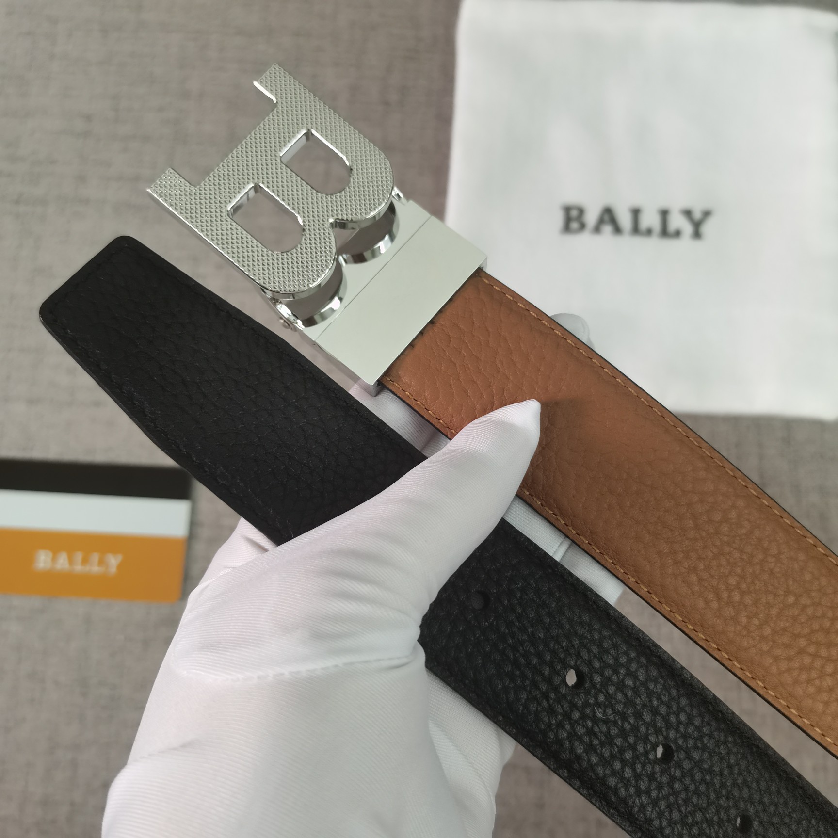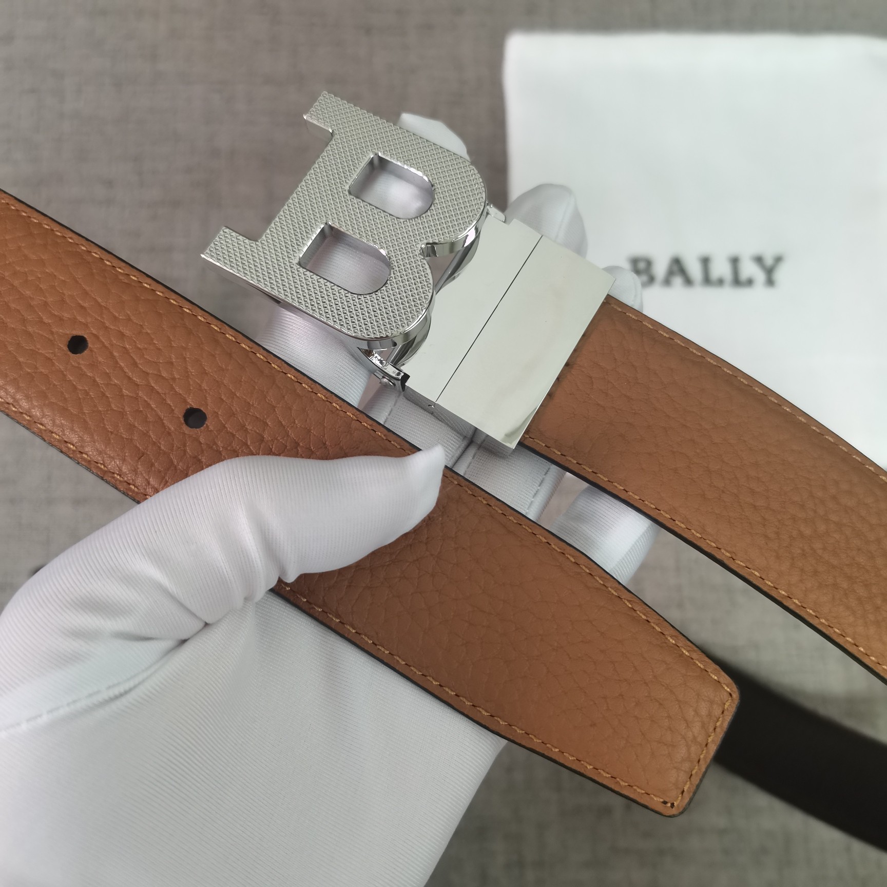 这款皮带是AAAAA 1:1 质量 (非常棒). 使用了和原版一模一样的材料. 商标部分也保持了和BALLY巴利/BALLY一样. 图片拍摄是实物皮带拍摄, 您所收到的实物保证和我们图片一模一样.