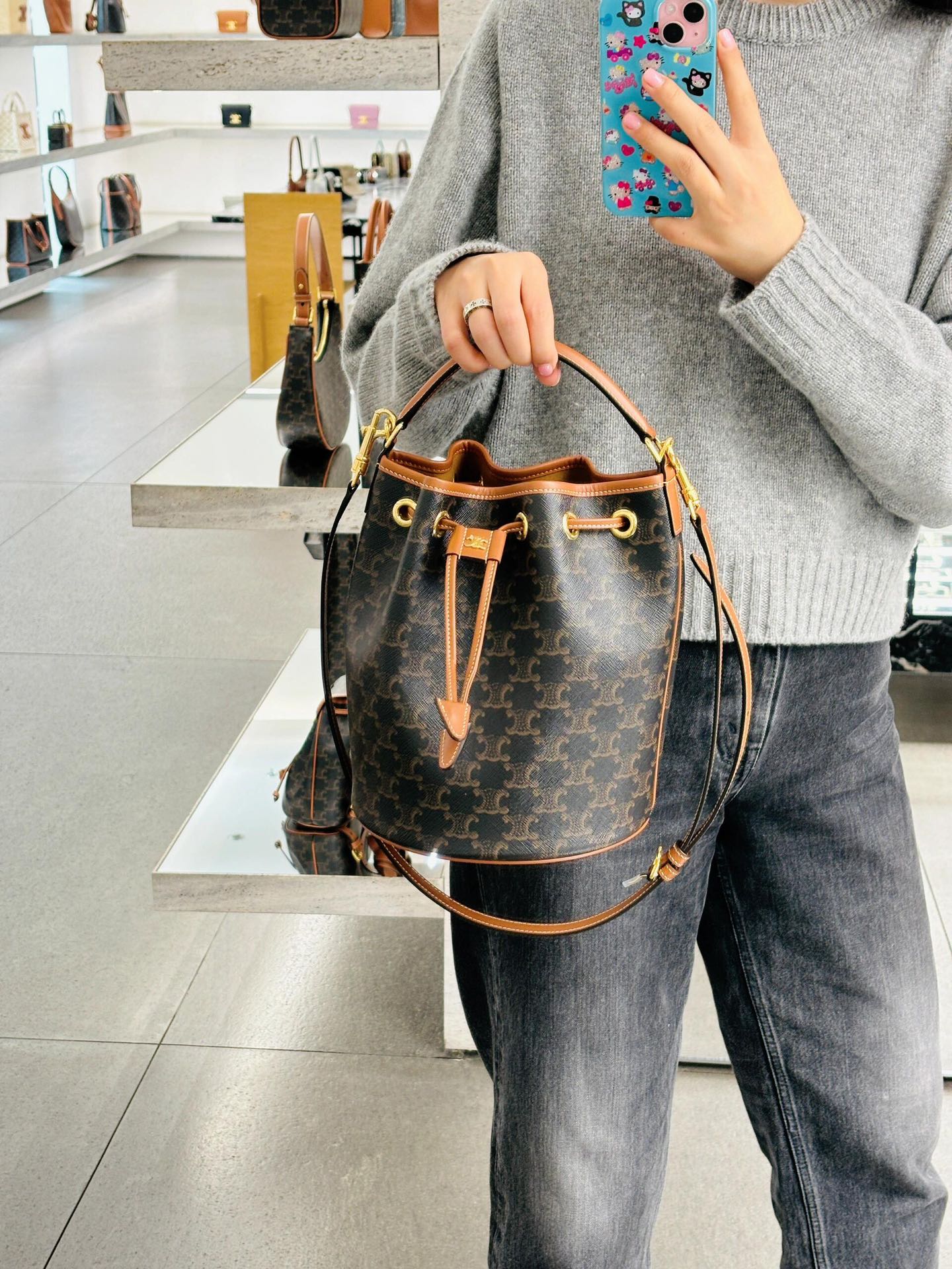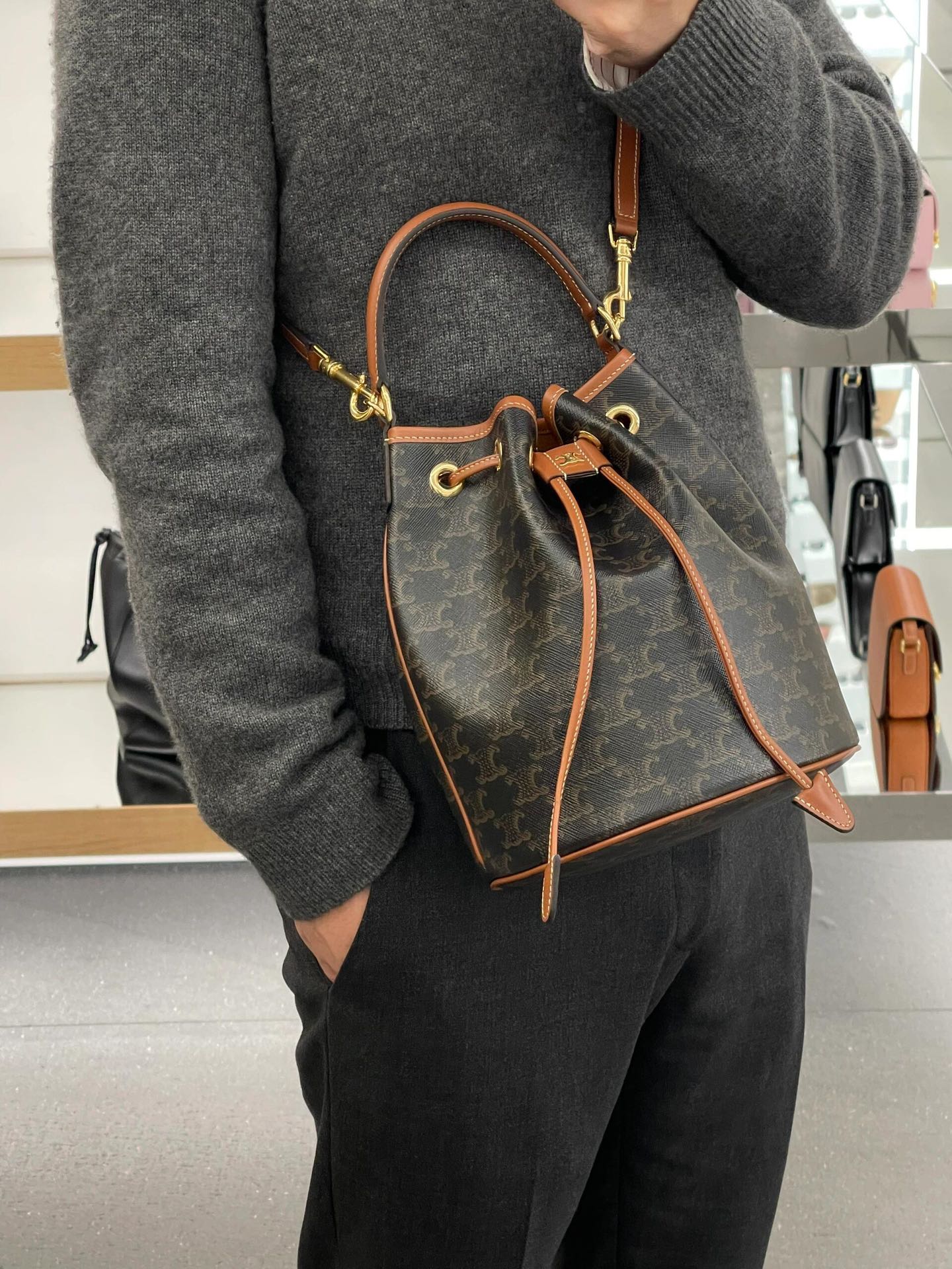 这款包包是AAAAA 1:1 质量 (非常棒). 使用了和原版一模一样的材料. 商标部分也保持了和思琳/Celine一样. 图片拍摄是实物包包拍摄, 您所收到的实物保证和我们图片一模一样.