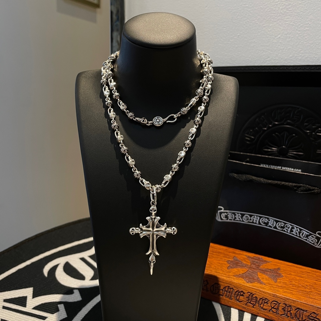 这款首饰是AAAAA 1:1 质量 (非常棒). 使用了和原版一模一样的材料. 商标部分也保持了和克罗心/Chrome Hearts一样. 图片拍摄是实物首饰拍摄, 您所收到的实物保证和我们图片一模一样.