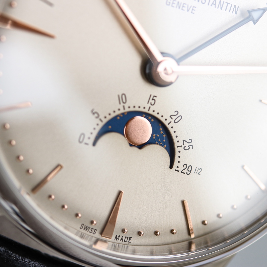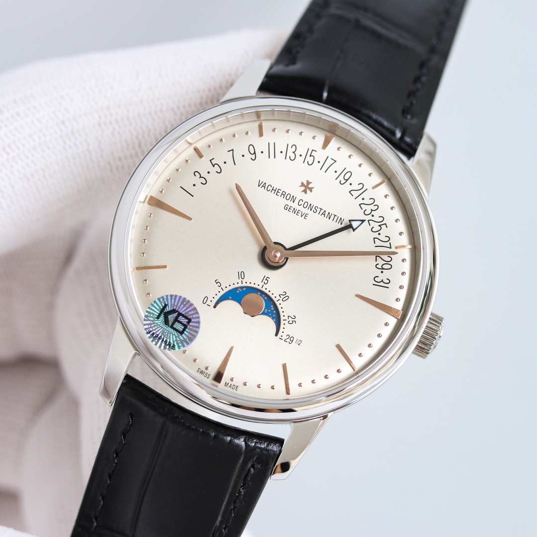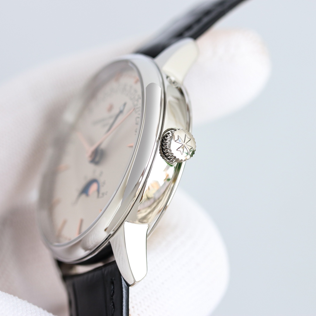 这款手表是AAAAA 1:1 质量 (非常棒). 使用了和原版一模一样的材料. 商标部分也保持了和江诗丹顿/Vacheron Constantin一样. 图片拍摄是实物手表拍摄, 您所收到的实物保证和我们图片一模一样.