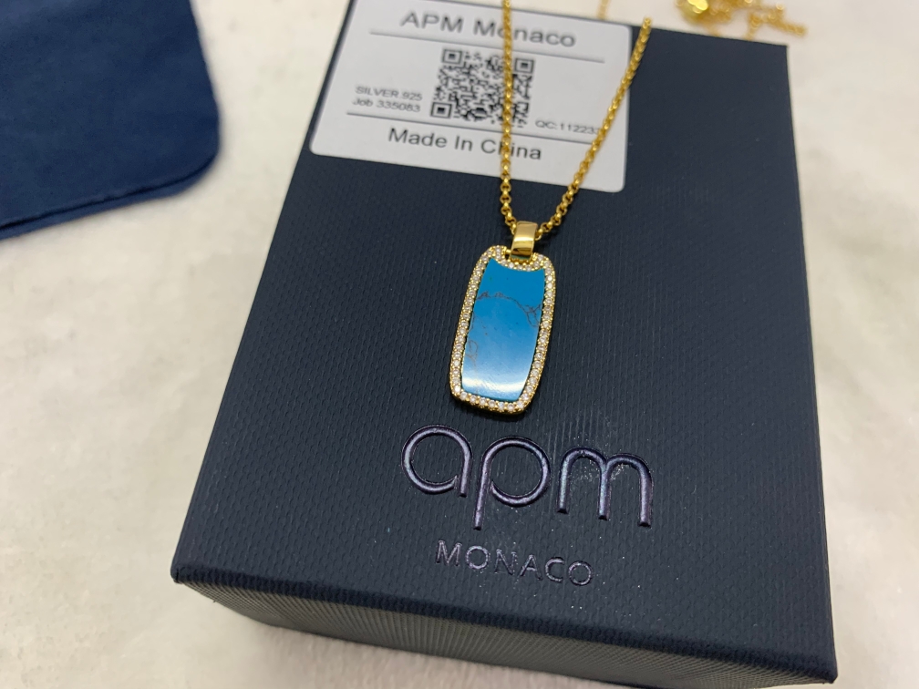 这款首饰是AAAAA 1:1 质量 (非常棒). 使用了和原版一模一样的材料. 商标部分也保持了和APM Monaco一样. 图片拍摄是实物首饰拍摄, 您所收到的实物保证和我们图片一模一样.