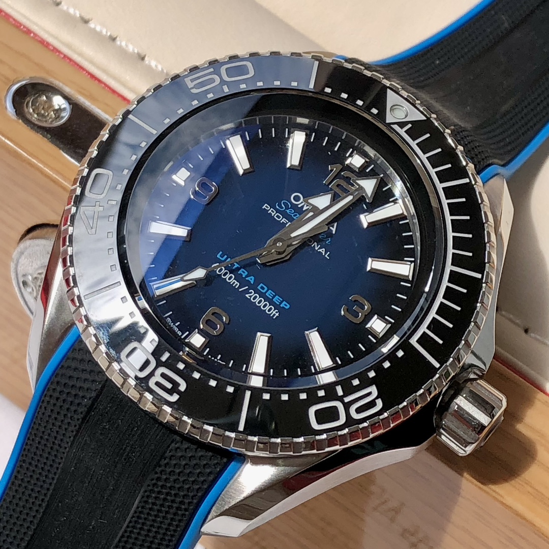 这款手表是AAAAA 1:1 质量 (非常棒). 使用了和原版一模一样的材料. 商标部分也保持了和欧米茄/Omega一样. 图片拍摄是实物手表拍摄, 您所收到的实物保证和我们图片一模一样.