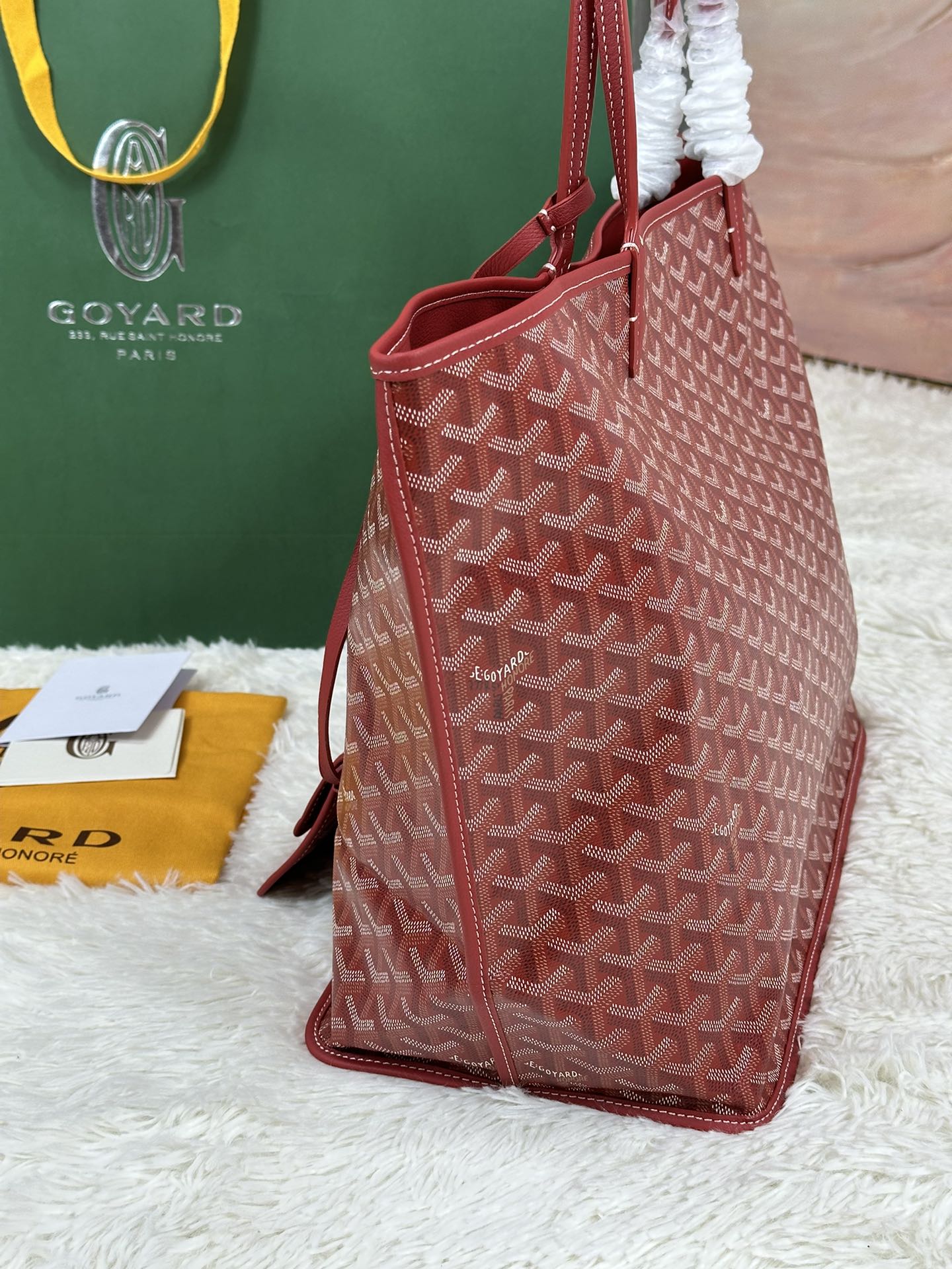 这款包包是AAAAA 1:1 质量 (非常棒). 使用了和原版一模一样的材料. 商标部分也保持了和Goyard一样. 图片拍摄是实物包包拍摄, 您所收到的实物保证和我们图片一模一样.