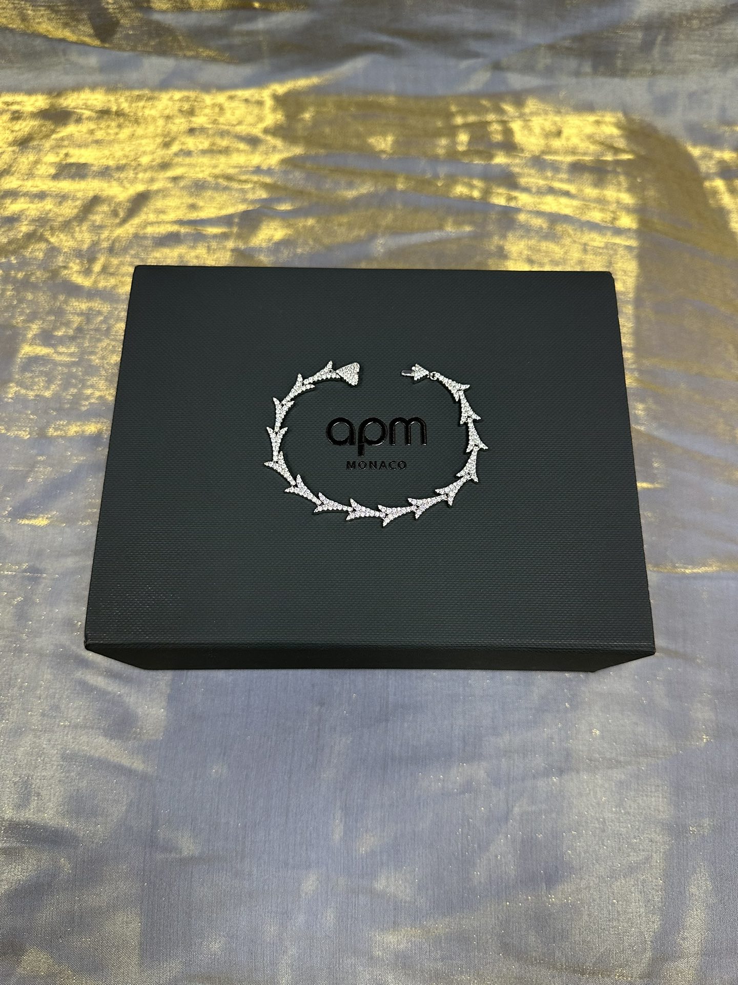 这款首饰是AAAAA 1:1 质量 (非常棒). 使用了和原版一模一样的材料. 商标部分也保持了和APM Monaco一样. 图片拍摄是实物首饰拍摄, 您所收到的实物保证和我们图片一模一样.