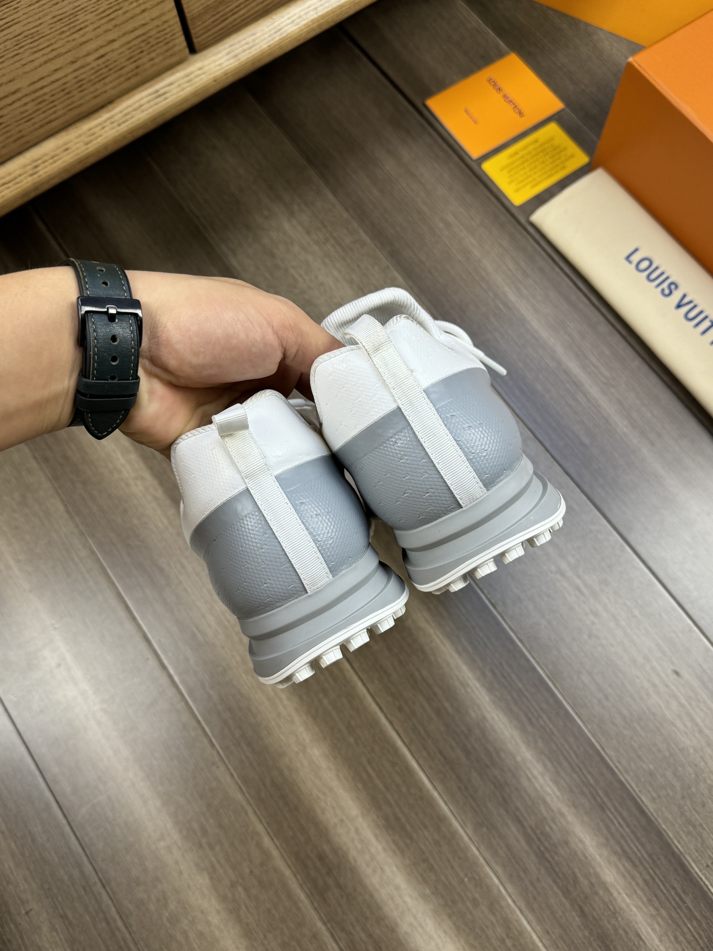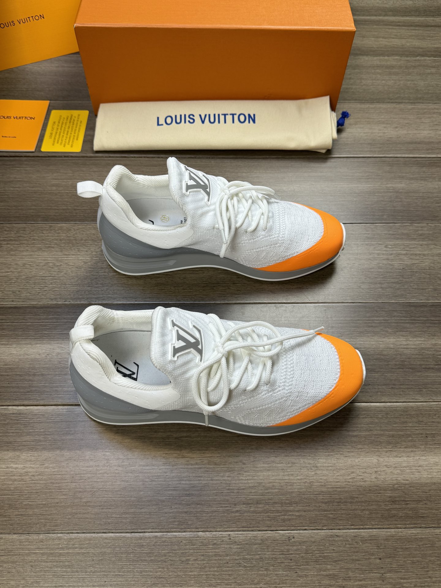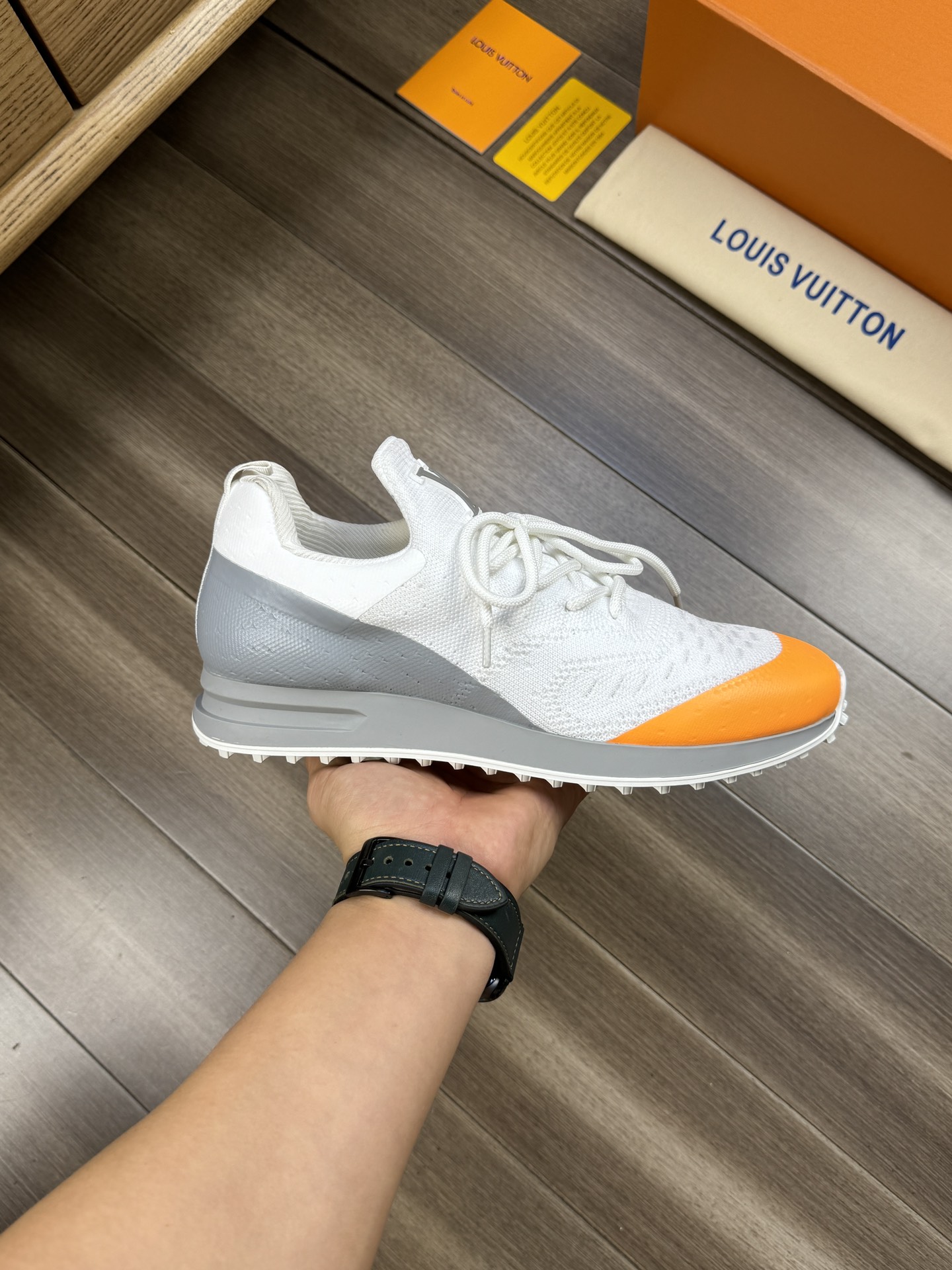 这款鞋子是AAAAA 1:1 质量 (非常棒). 使用了和原版一模一样的材料. 商标部分也保持了和路易威登/Louis Vuitton一样. 图片拍摄是实物鞋子拍摄, 您所收到的实物保证和我们图片一模一样.