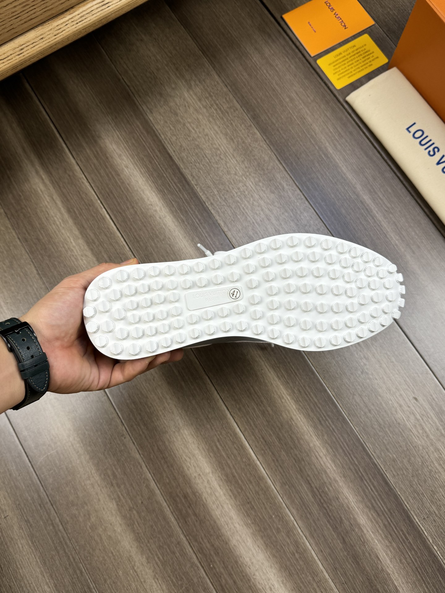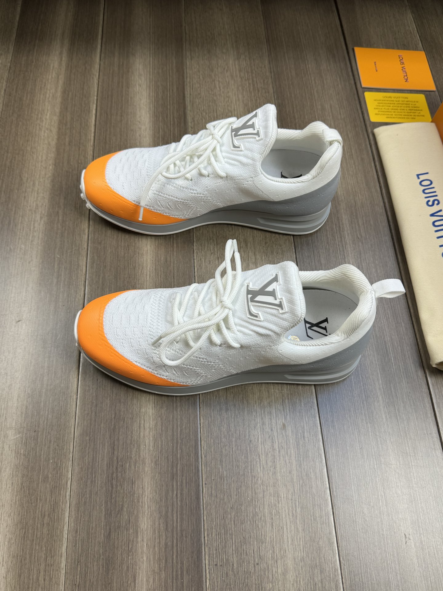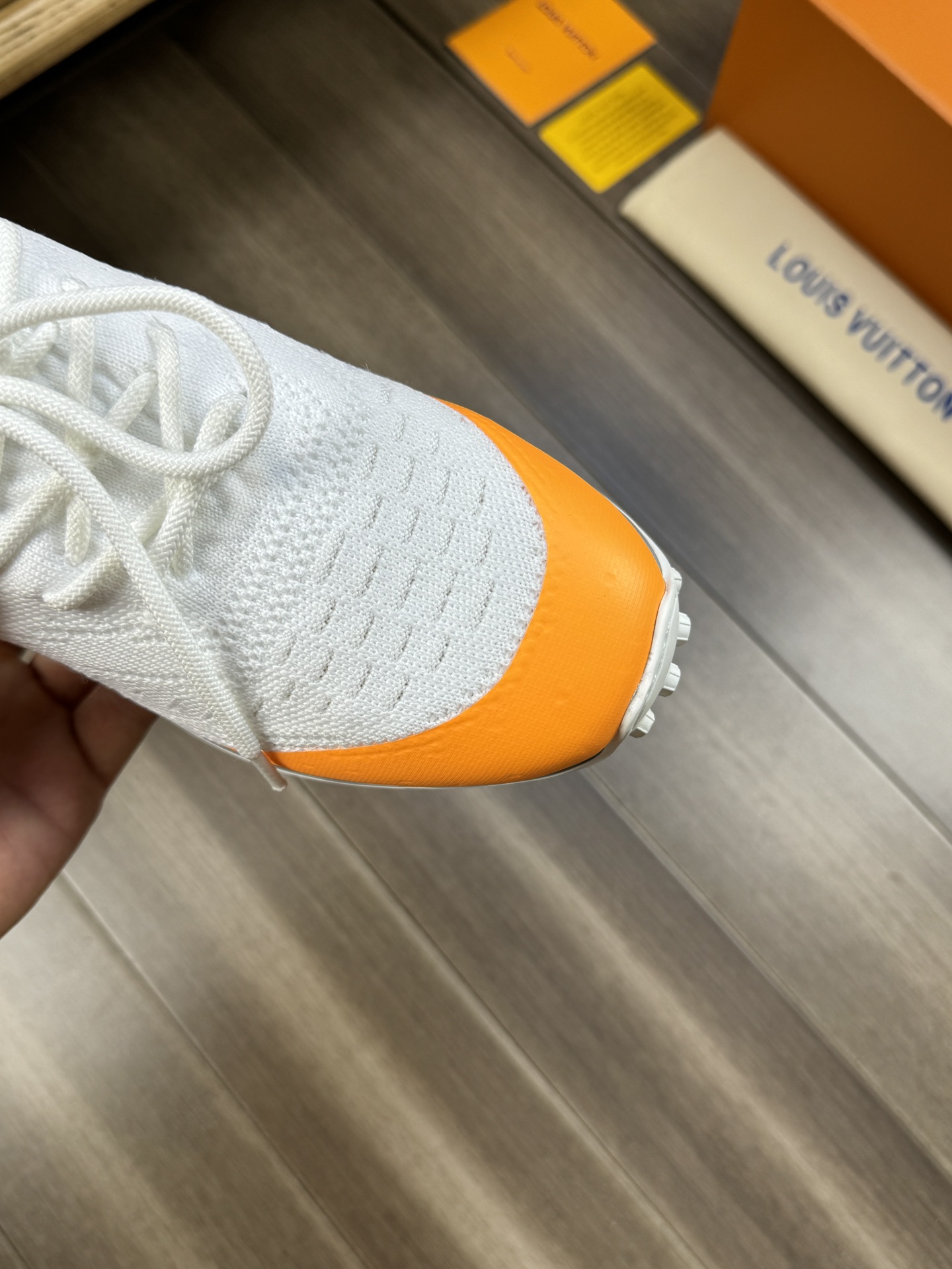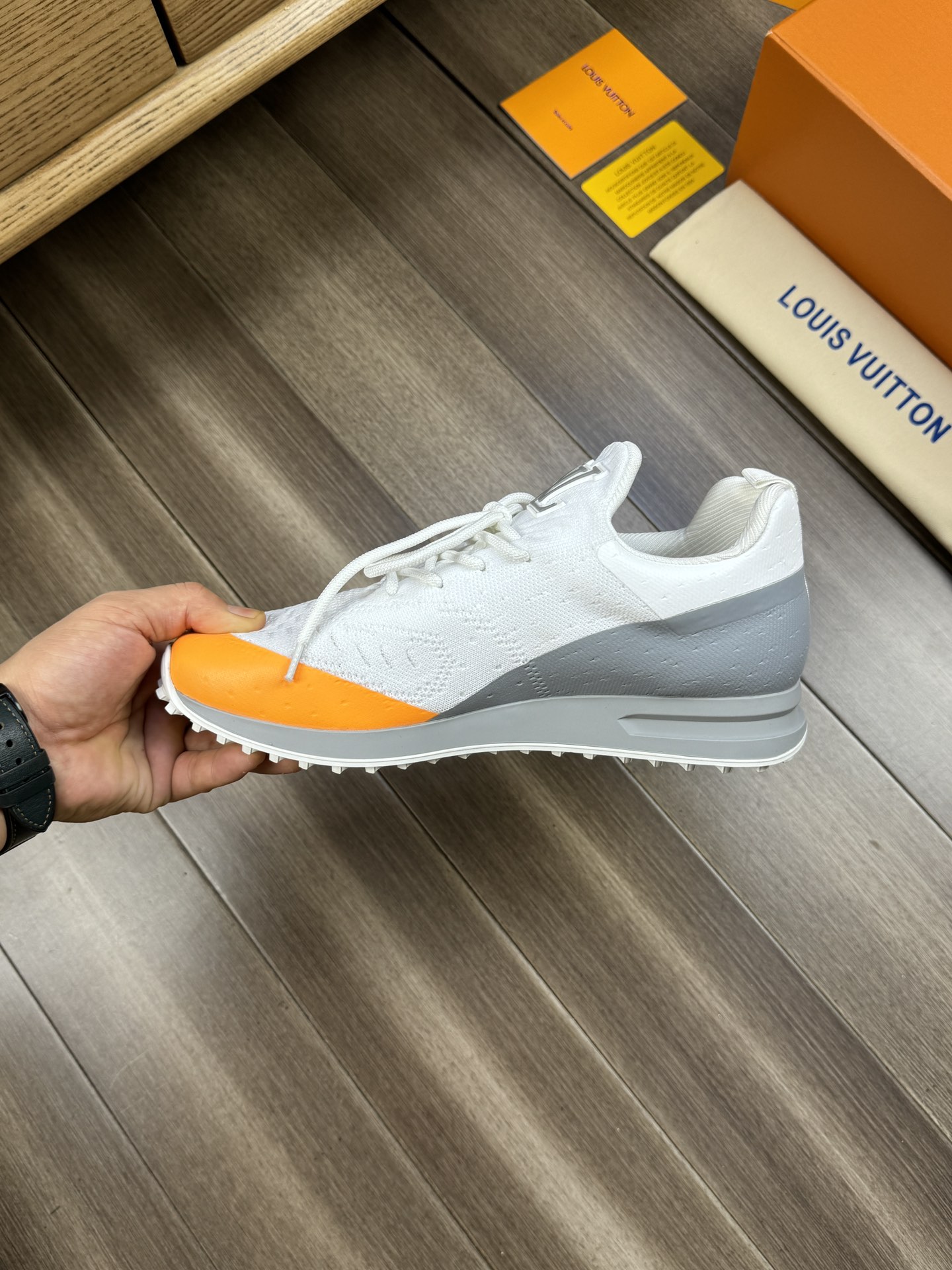 这款鞋子是AAAAA 1:1 质量 (非常棒). 使用了和原版一模一样的材料. 商标部分也保持了和路易威登/Louis Vuitton一样. 图片拍摄是实物鞋子拍摄, 您所收到的实物保证和我们图片一模一样.