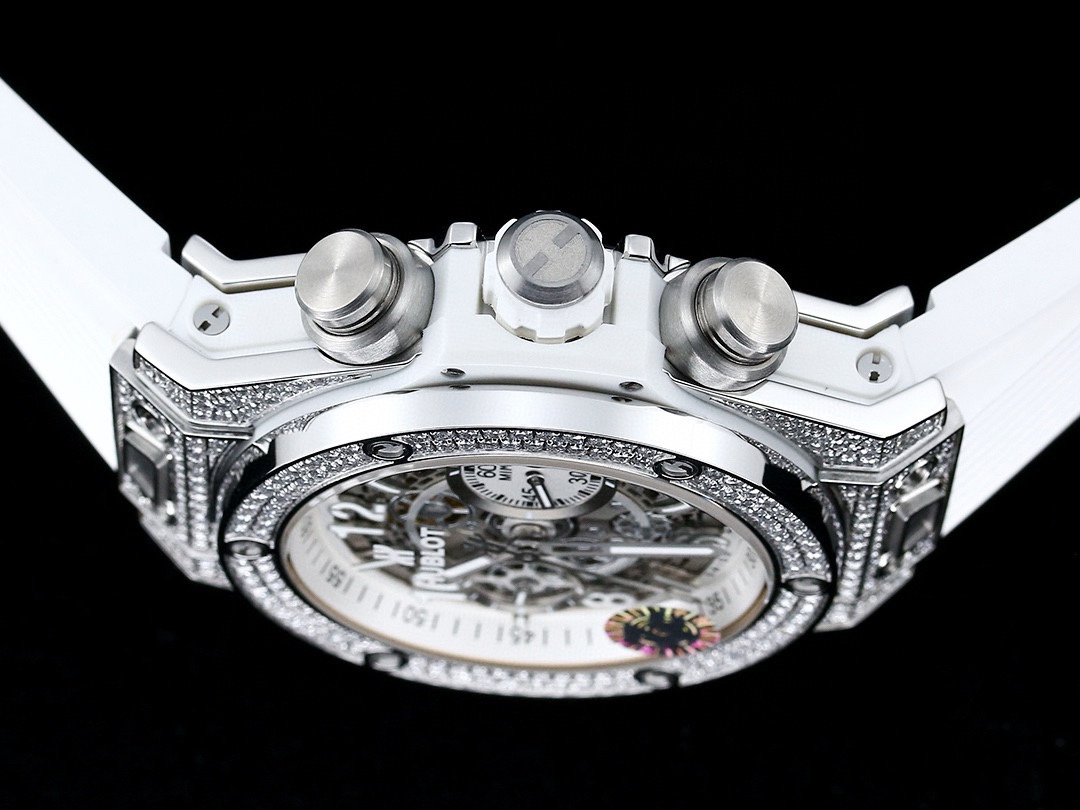这款手表是AAAAA 1:1 质量 (非常棒). 使用了和原版一模一样的材料. 商标部分也保持了和Hublot一样. 图片拍摄是实物手表拍摄, 您所收到的实物保证和我们图片一模一样.