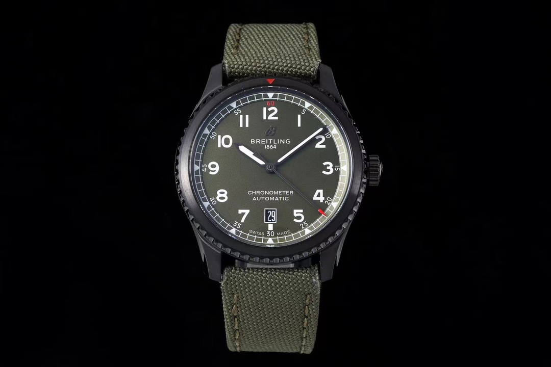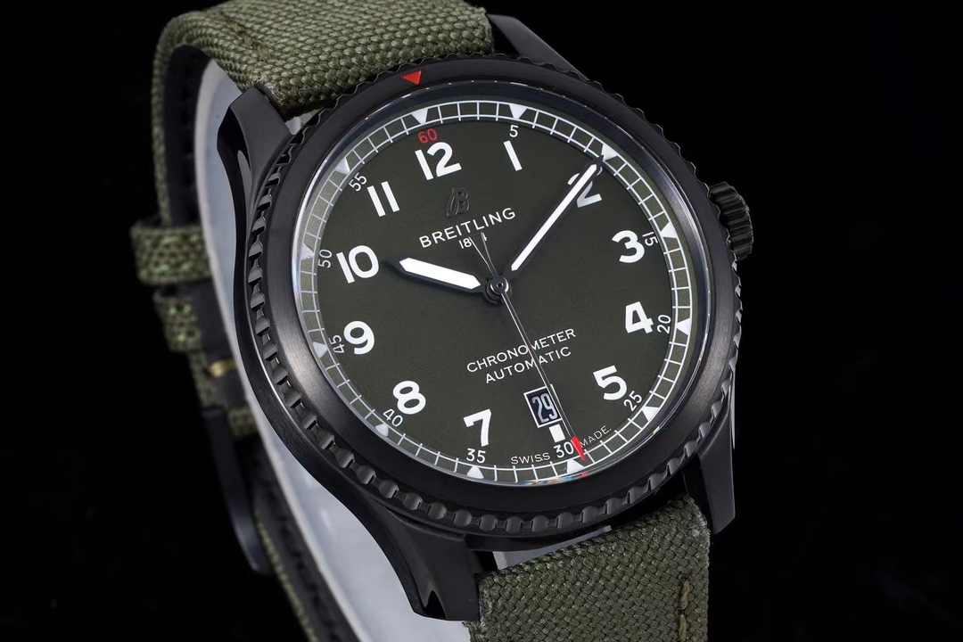 这款手表是AAAAA 1:1 质量 (非常棒). 使用了和原版一模一样的材料. 商标部分也保持了和Breitling一样. 图片拍摄是实物手表拍摄, 您所收到的实物保证和我们图片一模一样.
