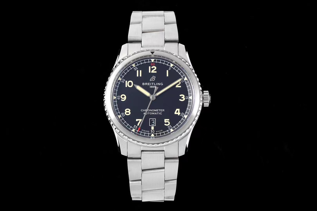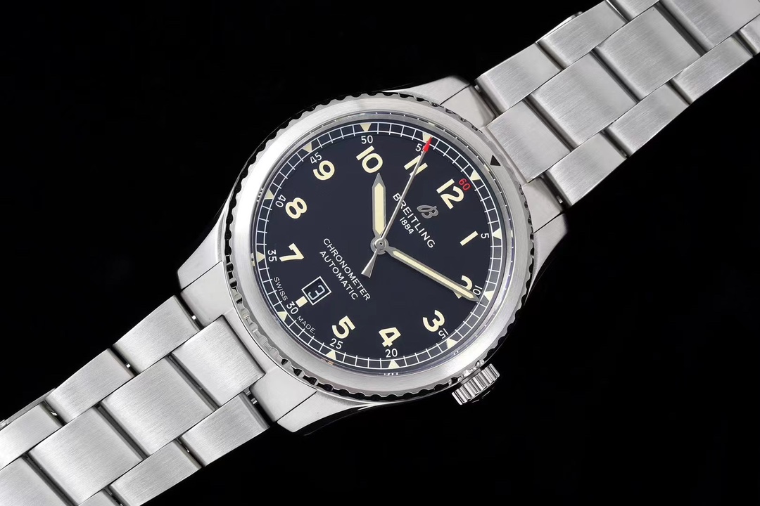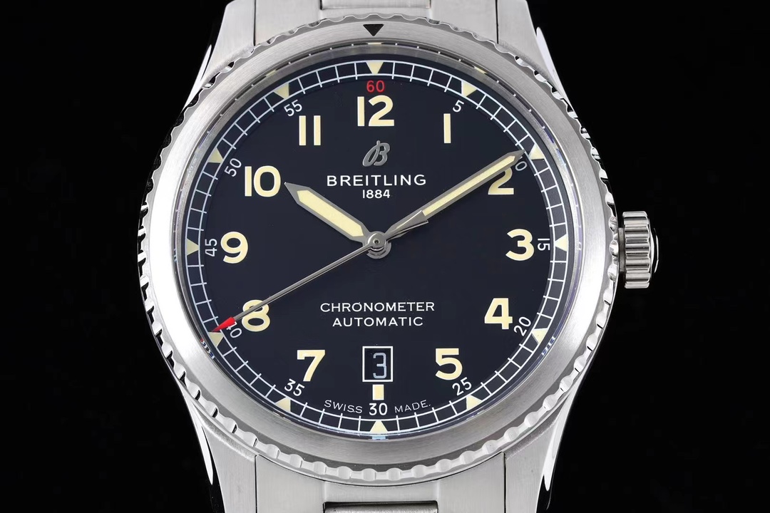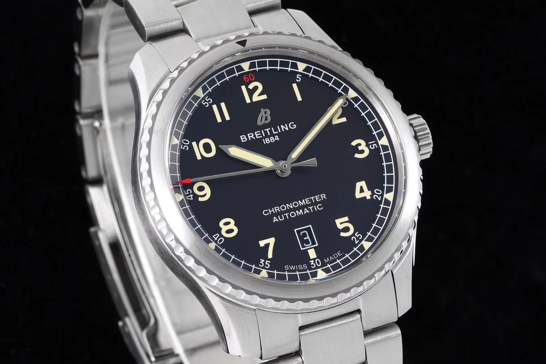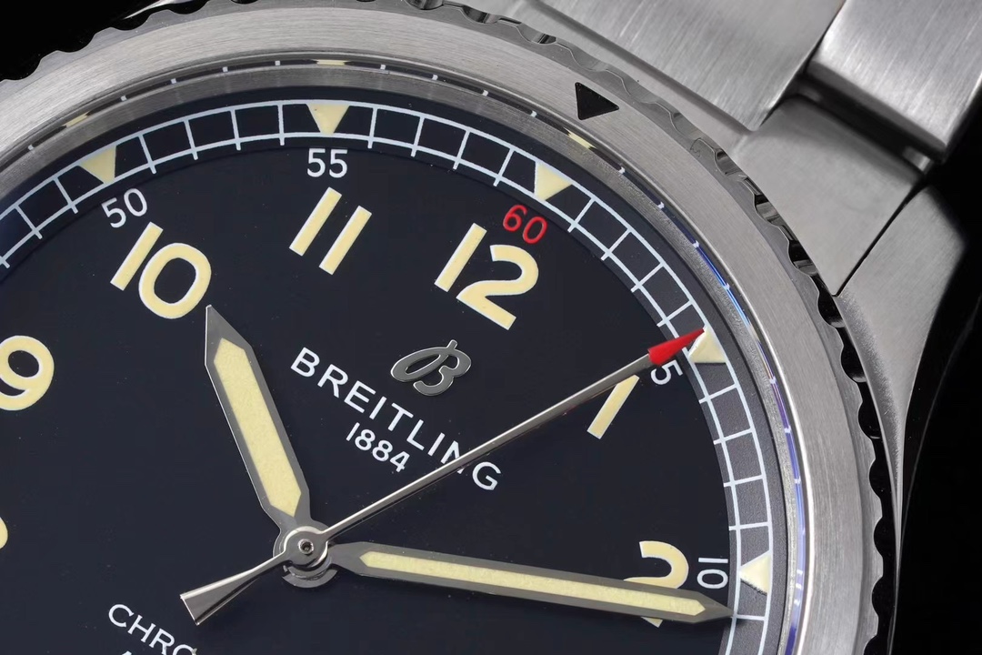 这款手表是AAAAA 1:1 质量 (非常棒). 使用了和原版一模一样的材料. 商标部分也保持了和Breitling一样. 图片拍摄是实物手表拍摄, 您所收到的实物保证和我们图片一模一样.