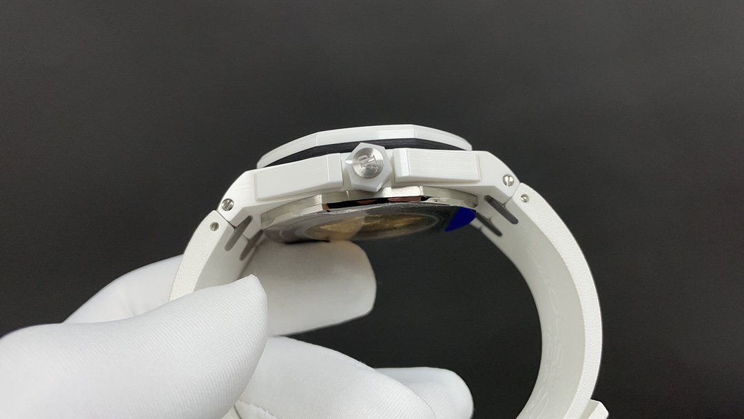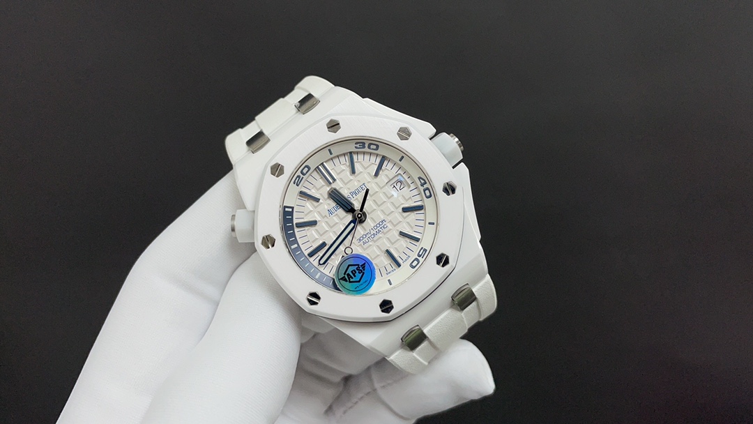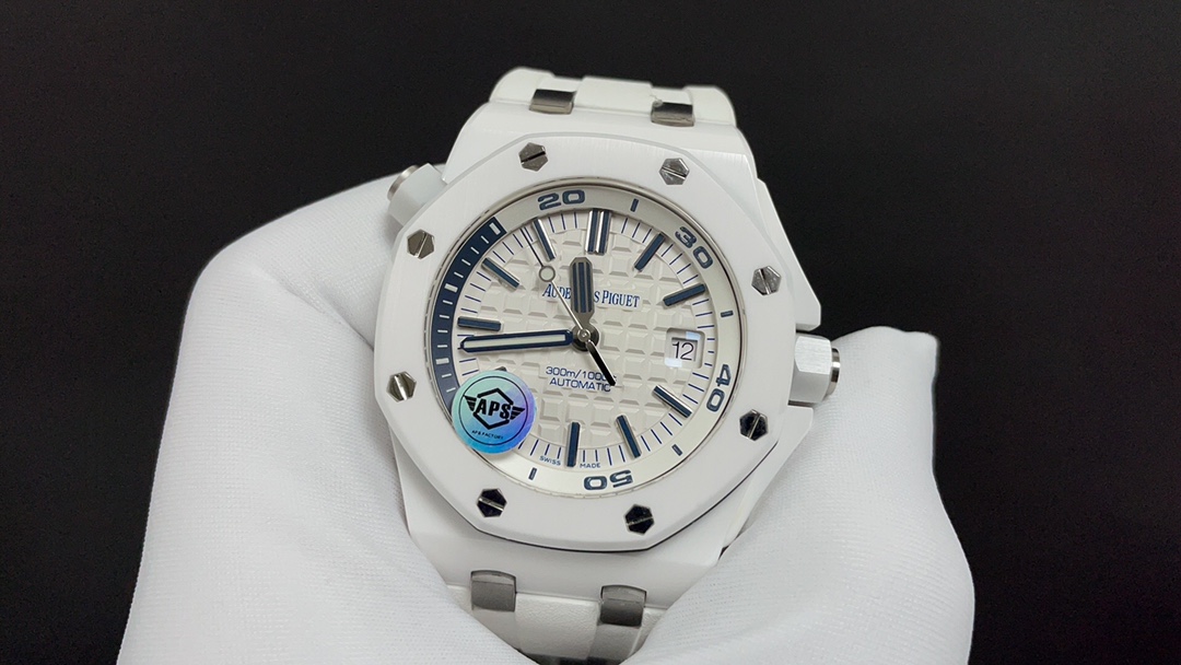 这款手表是AAAAA 1:1 质量 (非常棒). 使用了和原版一模一样的材料. 商标部分也保持了和爱彼/Audemars Piguet一样. 图片拍摄是实物手表拍摄, 您所收到的实物保证和我们图片一模一样.