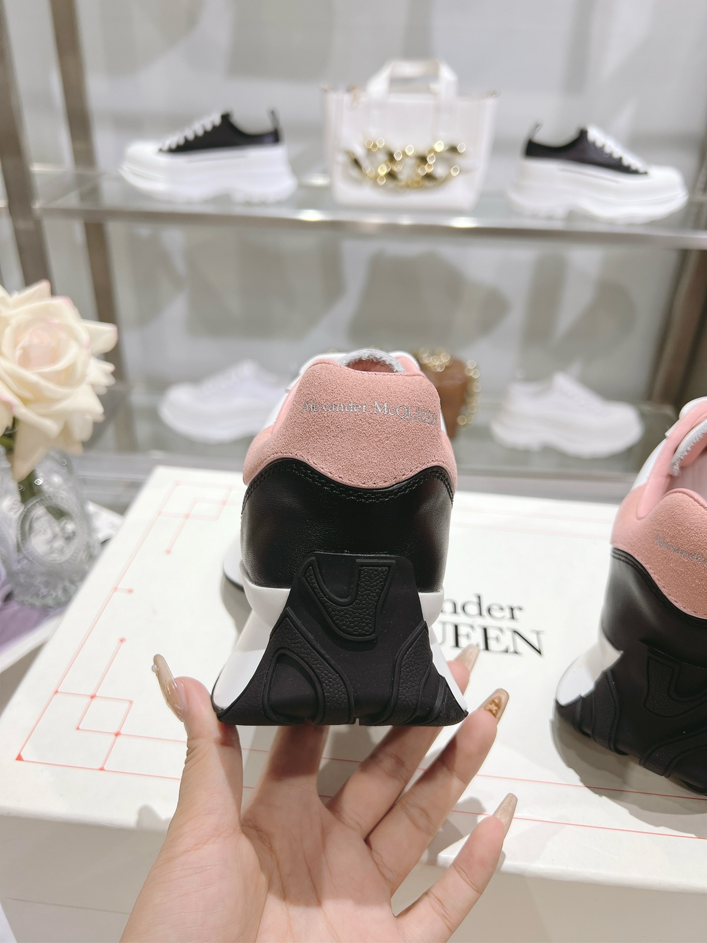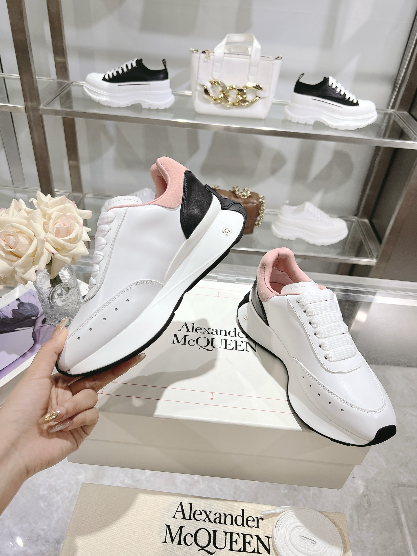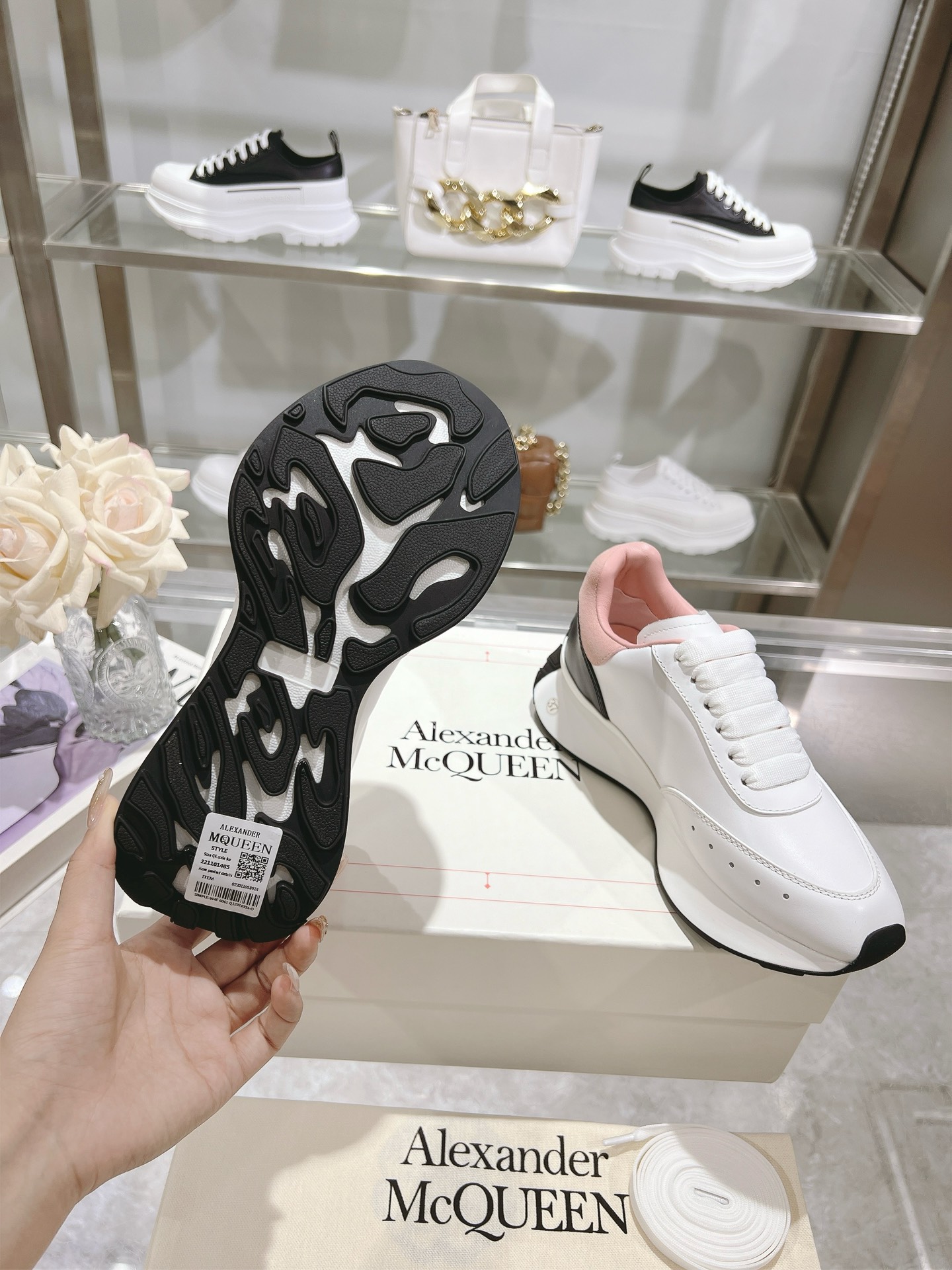这款鞋子是AAAAA 1:1 质量 (非常棒). 使用了和原版一模一样的材料. 商标部分也保持了和亚历山大·麦昆/McQueen一样. 图片拍摄是实物鞋子拍摄, 您所收到的实物保证和我们图片一模一样.