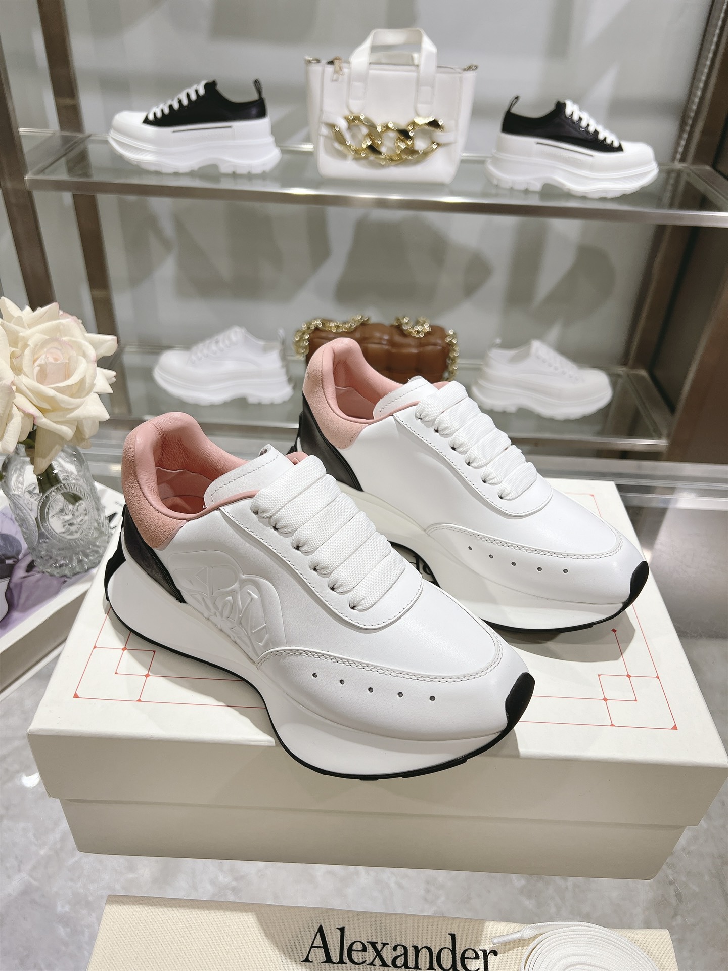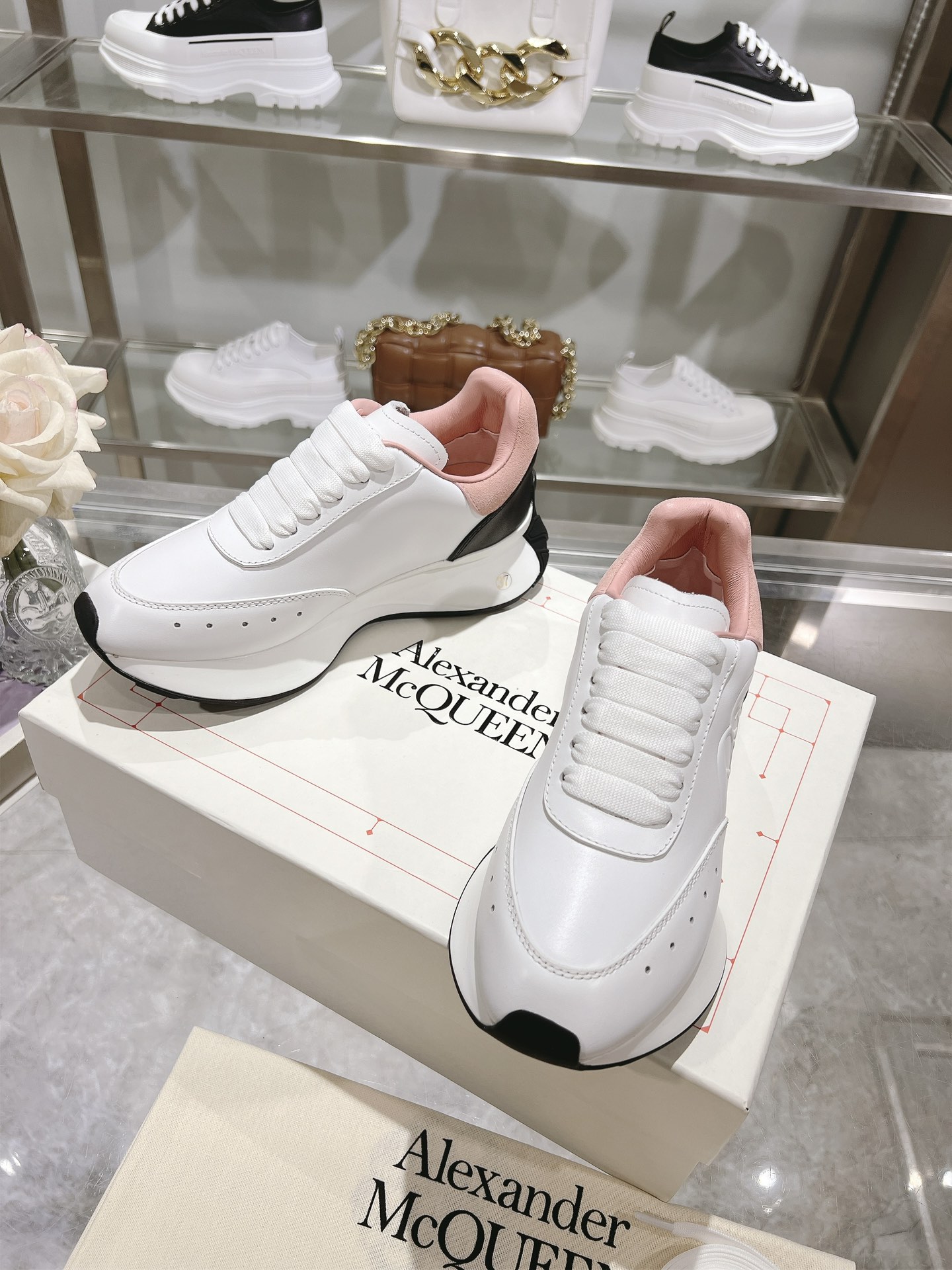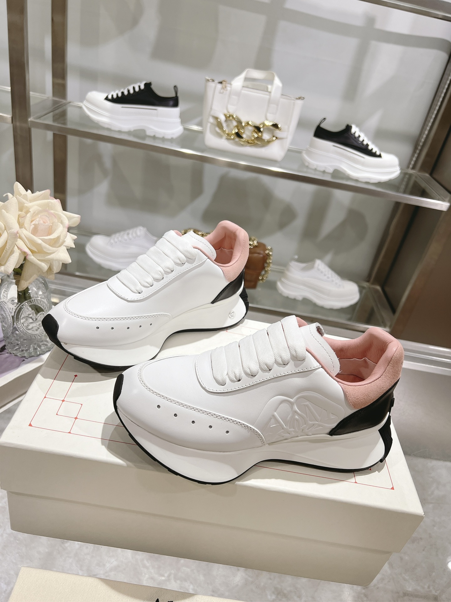 这款鞋子是AAAAA 1:1 质量 (非常棒). 使用了和原版一模一样的材料. 商标部分也保持了和亚历山大·麦昆/McQueen一样. 图片拍摄是实物鞋子拍摄, 您所收到的实物保证和我们图片一模一样.