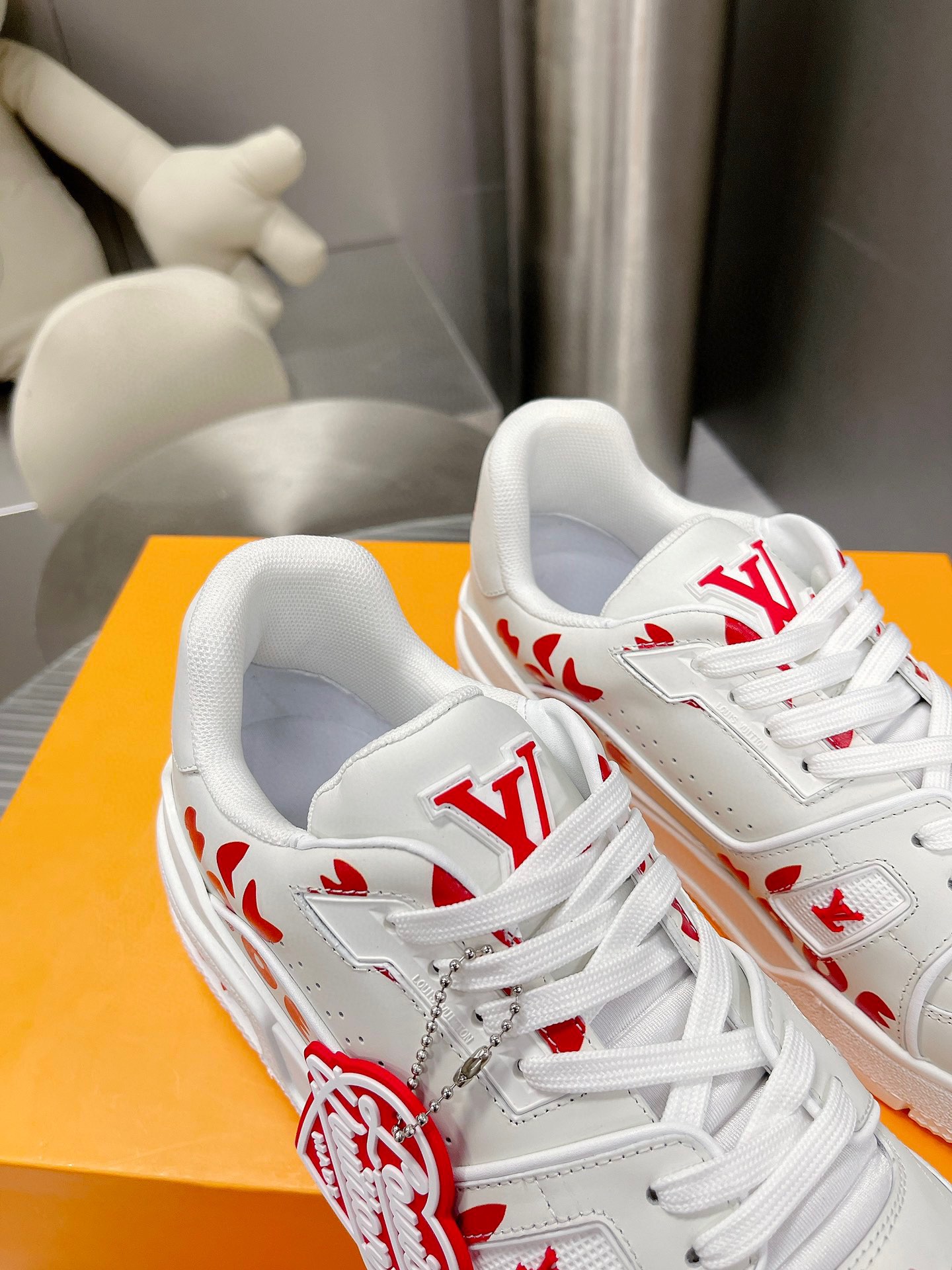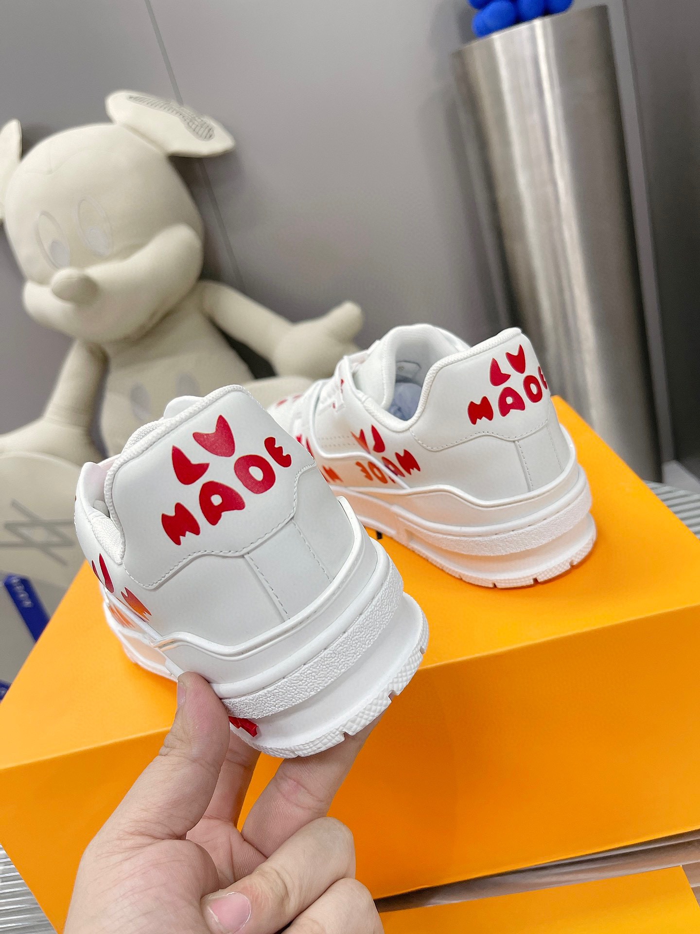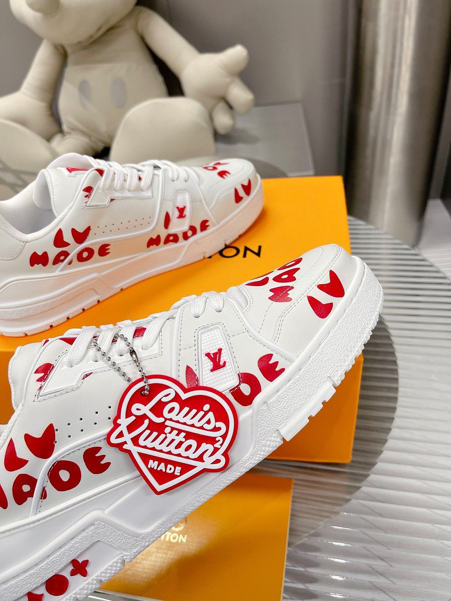 这款鞋子是AAAAA 1:1 质量 (非常棒). 使用了和原版一模一样的材料. 商标部分也保持了和路易威登/Louis Vuitton一样. 图片拍摄是实物鞋子拍摄, 您所收到的实物保证和我们图片一模一样.