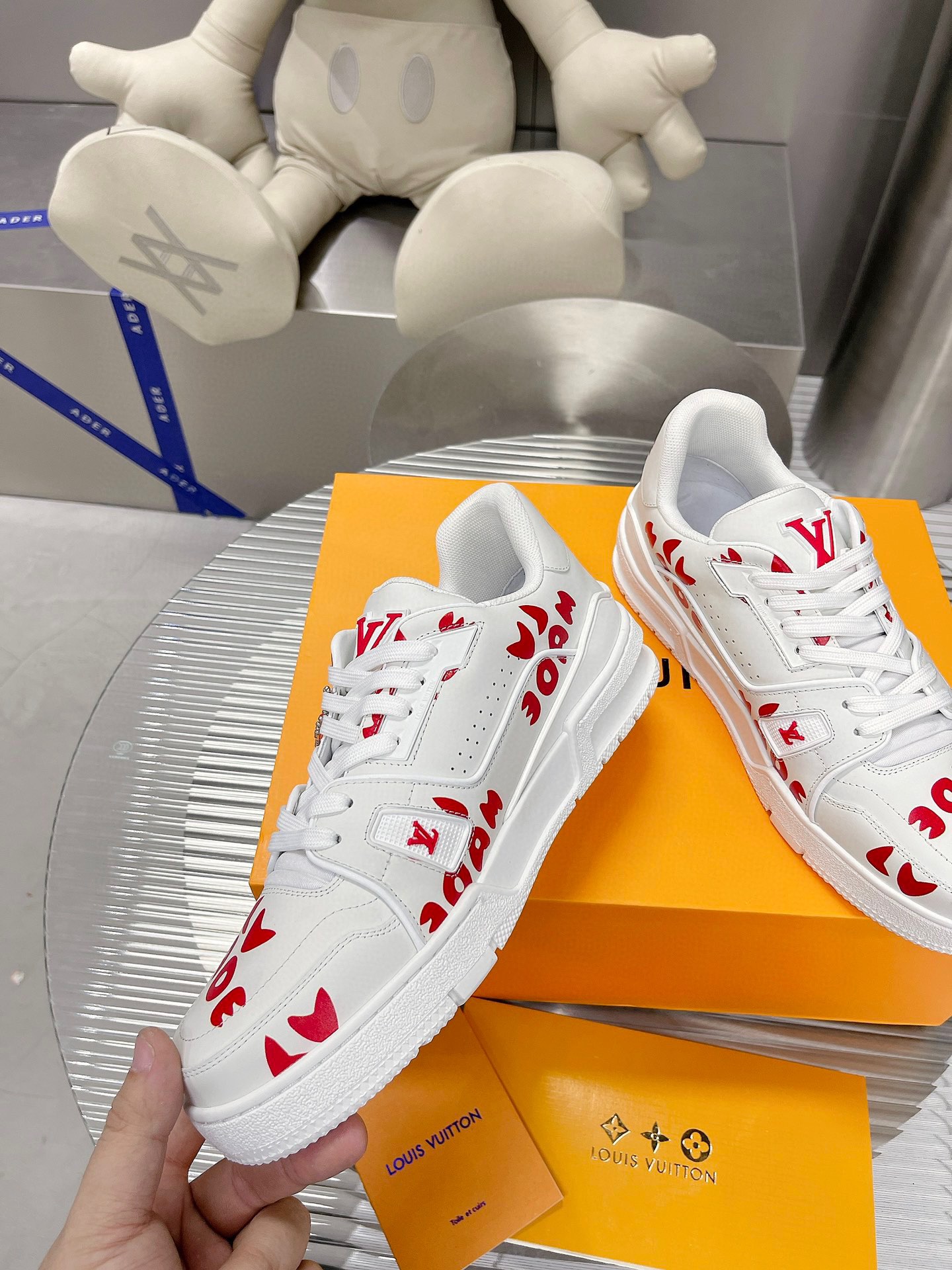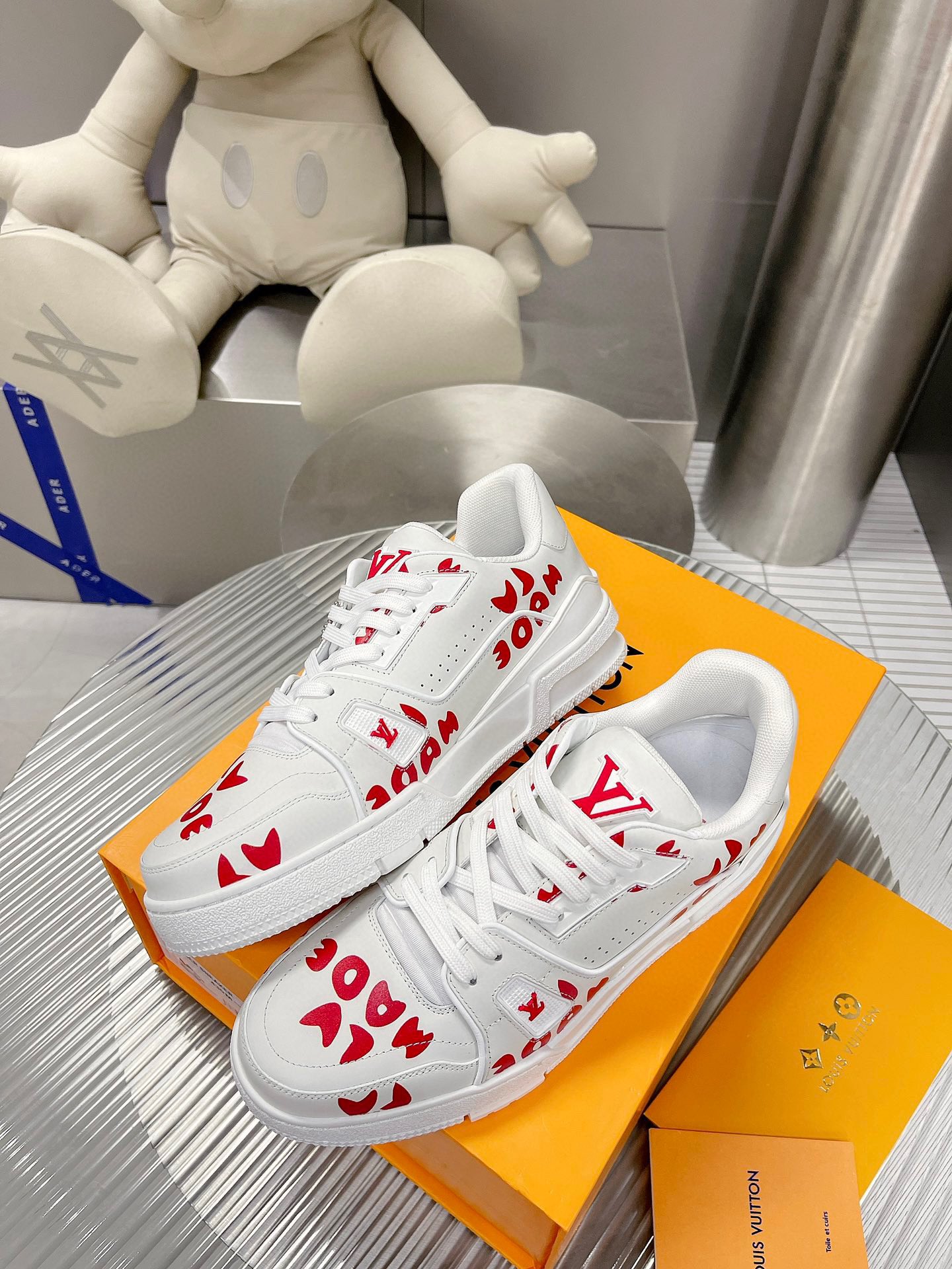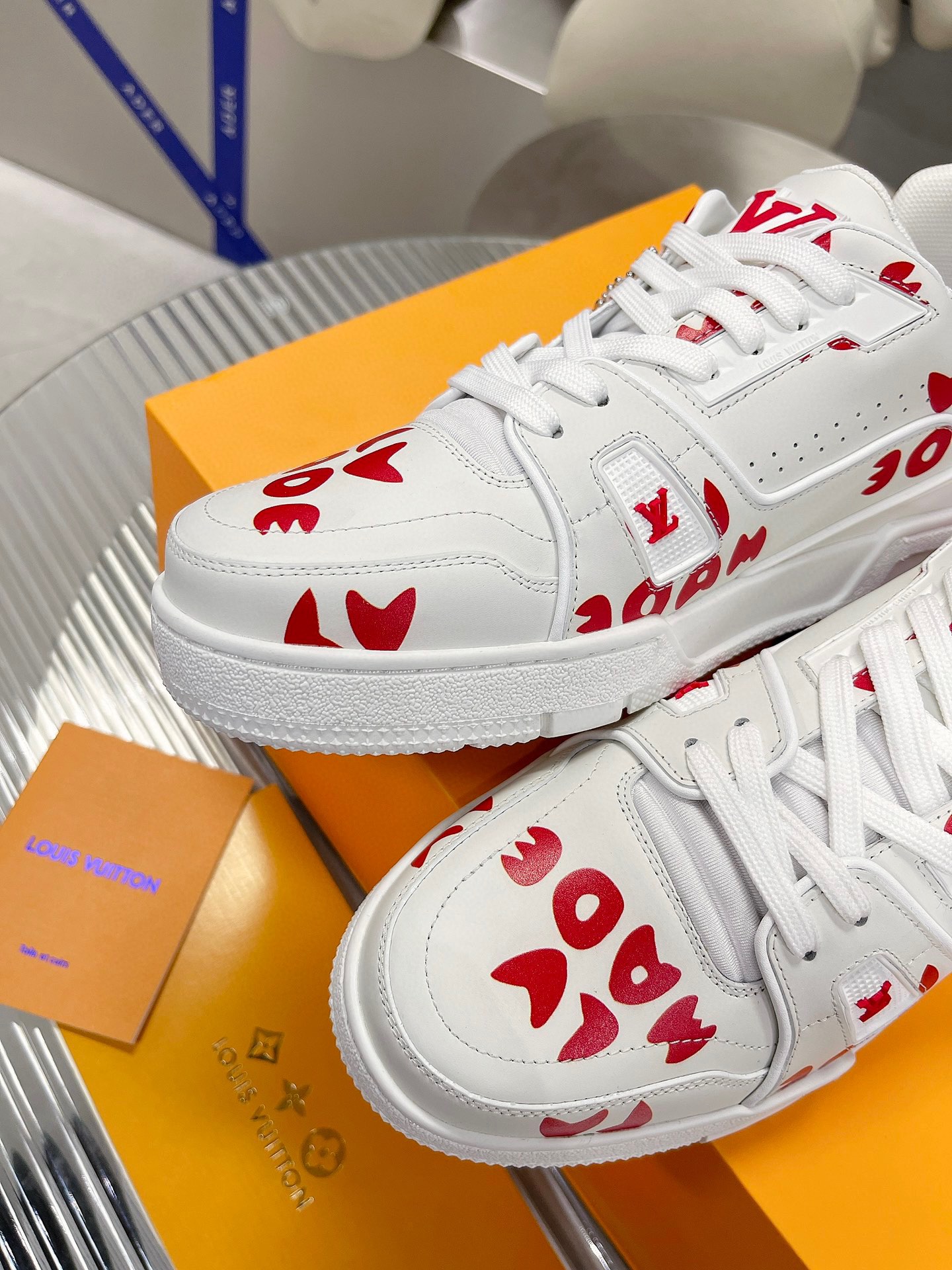 这款鞋子是AAAAA 1:1 质量 (非常棒). 使用了和原版一模一样的材料. 商标部分也保持了和路易威登/Louis Vuitton一样. 图片拍摄是实物鞋子拍摄, 您所收到的实物保证和我们图片一模一样.