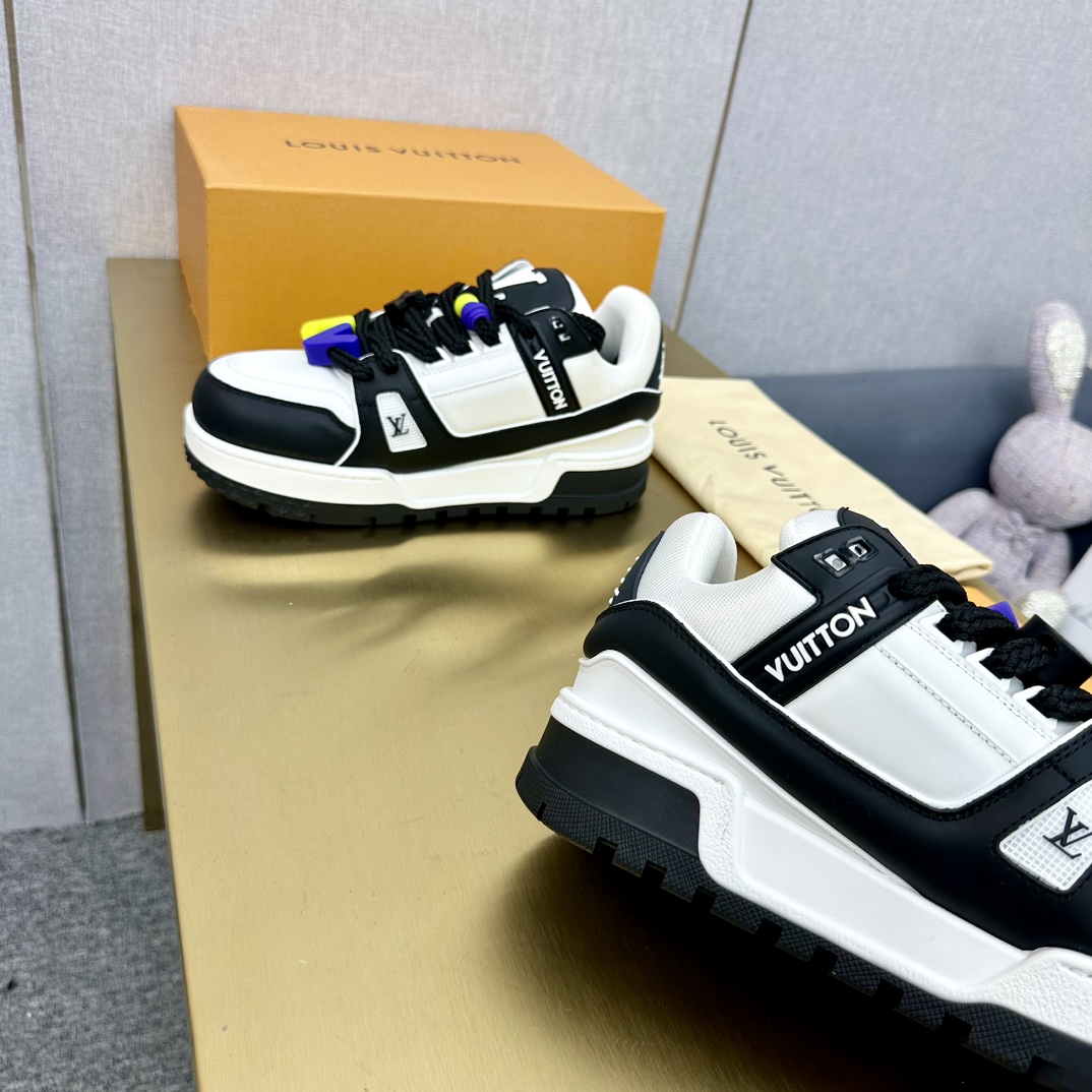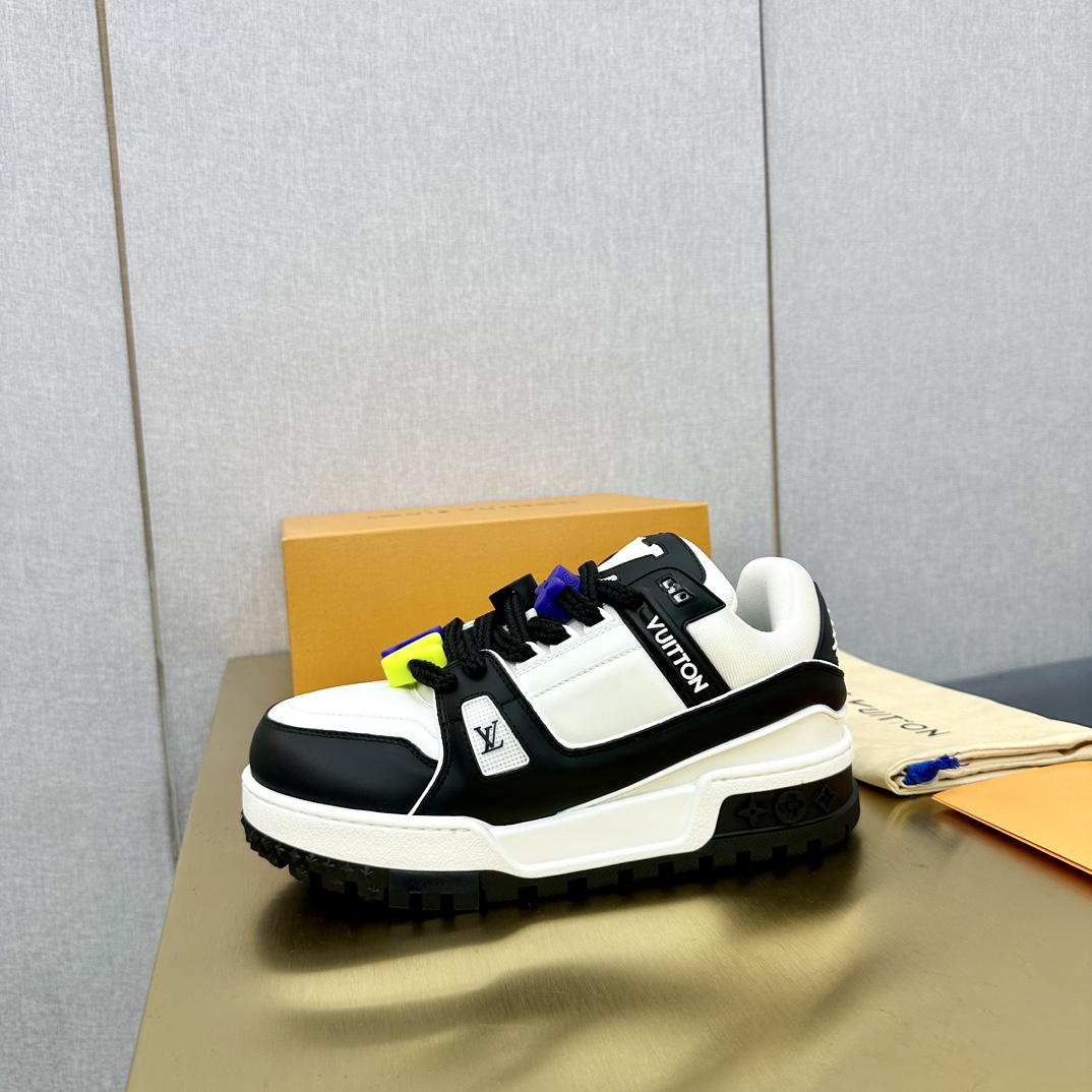 这款鞋子是AAAAA 1:1 质量 (非常棒). 使用了和原版一模一样的材料. 商标部分也保持了和路易威登/Louis Vuitton一样. 图片拍摄是实物鞋子拍摄, 您所收到的实物保证和我们图片一模一样.