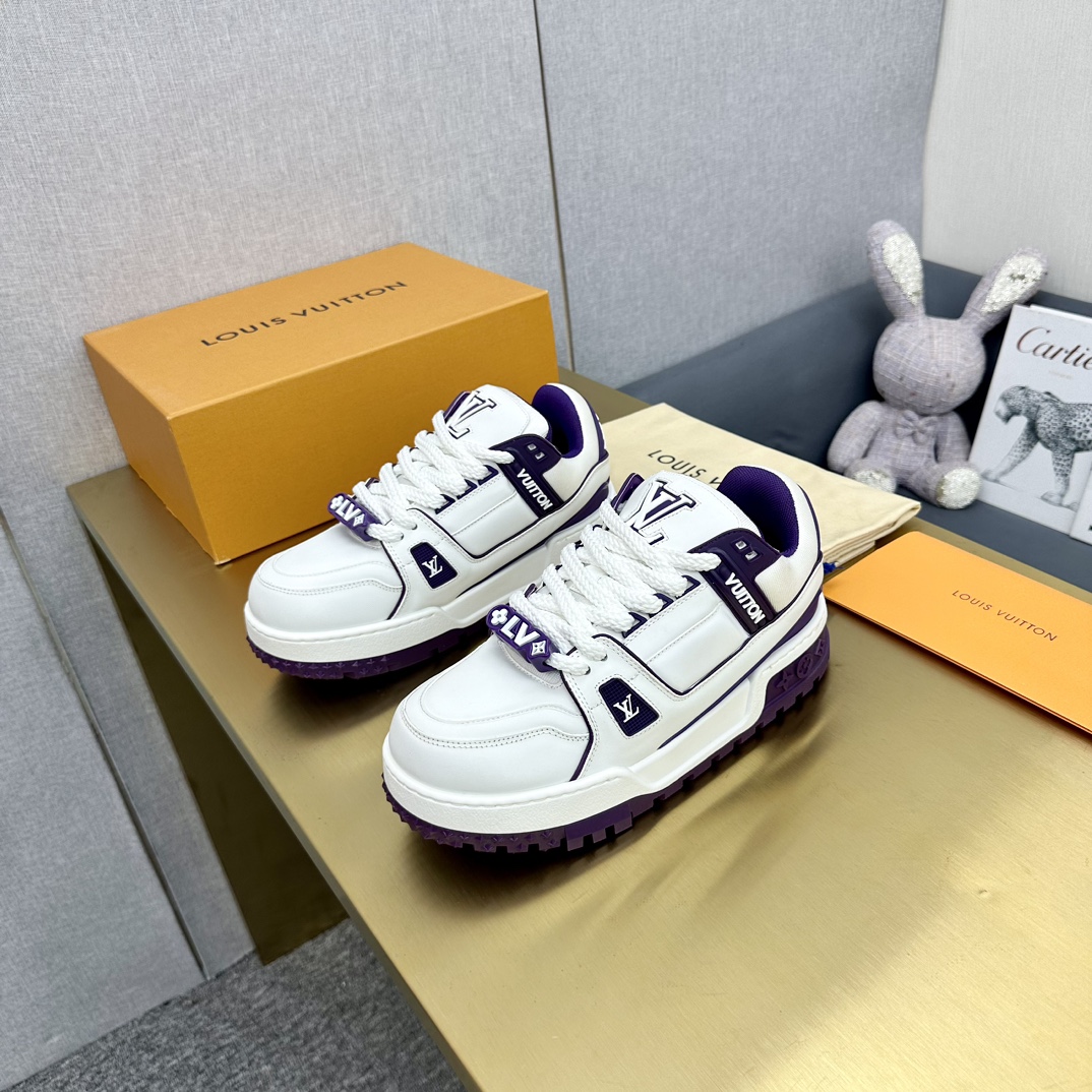 这款鞋子是AAAAA 1:1 质量 (非常棒). 使用了和原版一模一样的材料. 商标部分也保持了和路易威登/Louis Vuitton一样. 图片拍摄是实物鞋子拍摄, 您所收到的实物保证和我们图片一模一样.